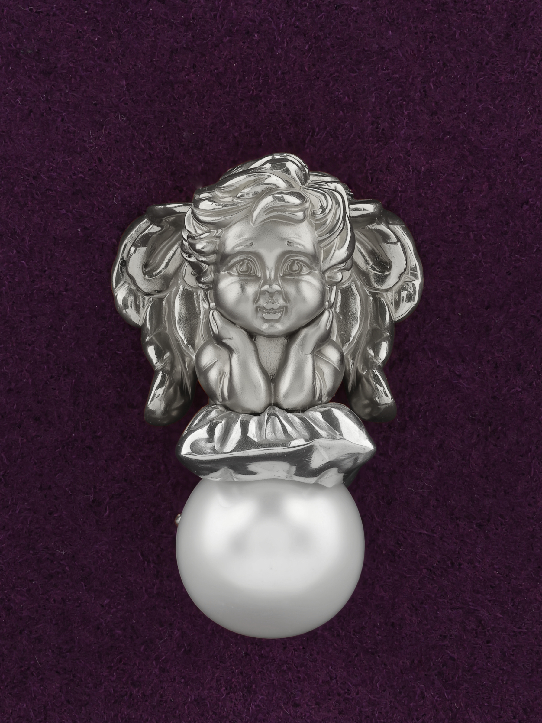 Изящная подвеска из белого золота 585 пробы из коллекции De Luxe — Купидоны станет утонченным дополнением вашего образа. Ювелирное изделие выполнено в оригинальном дизайне: центральным элементом является детально проработанная фигурка купидона, чья невинность и грация подчеркивают глубину художественного замысла. Холодный блеск белого золота идеально сочетается с нежностью единственной вставки — жемчуга белого цвета. Круглая форма жемчужины придает украшению завершенность и классическую элегантность.
