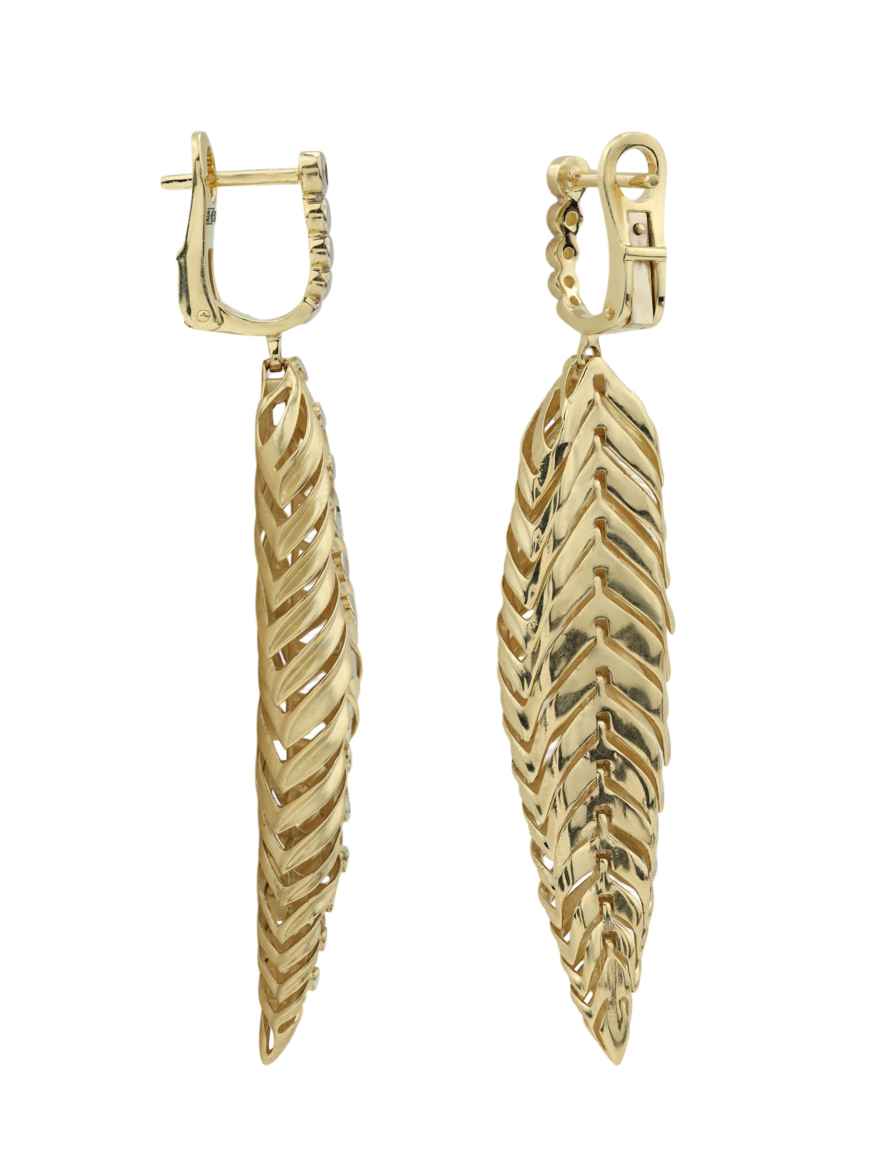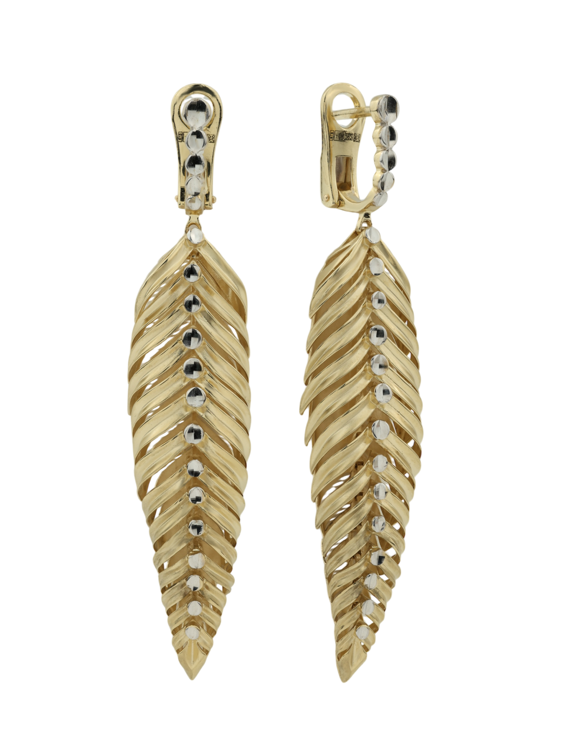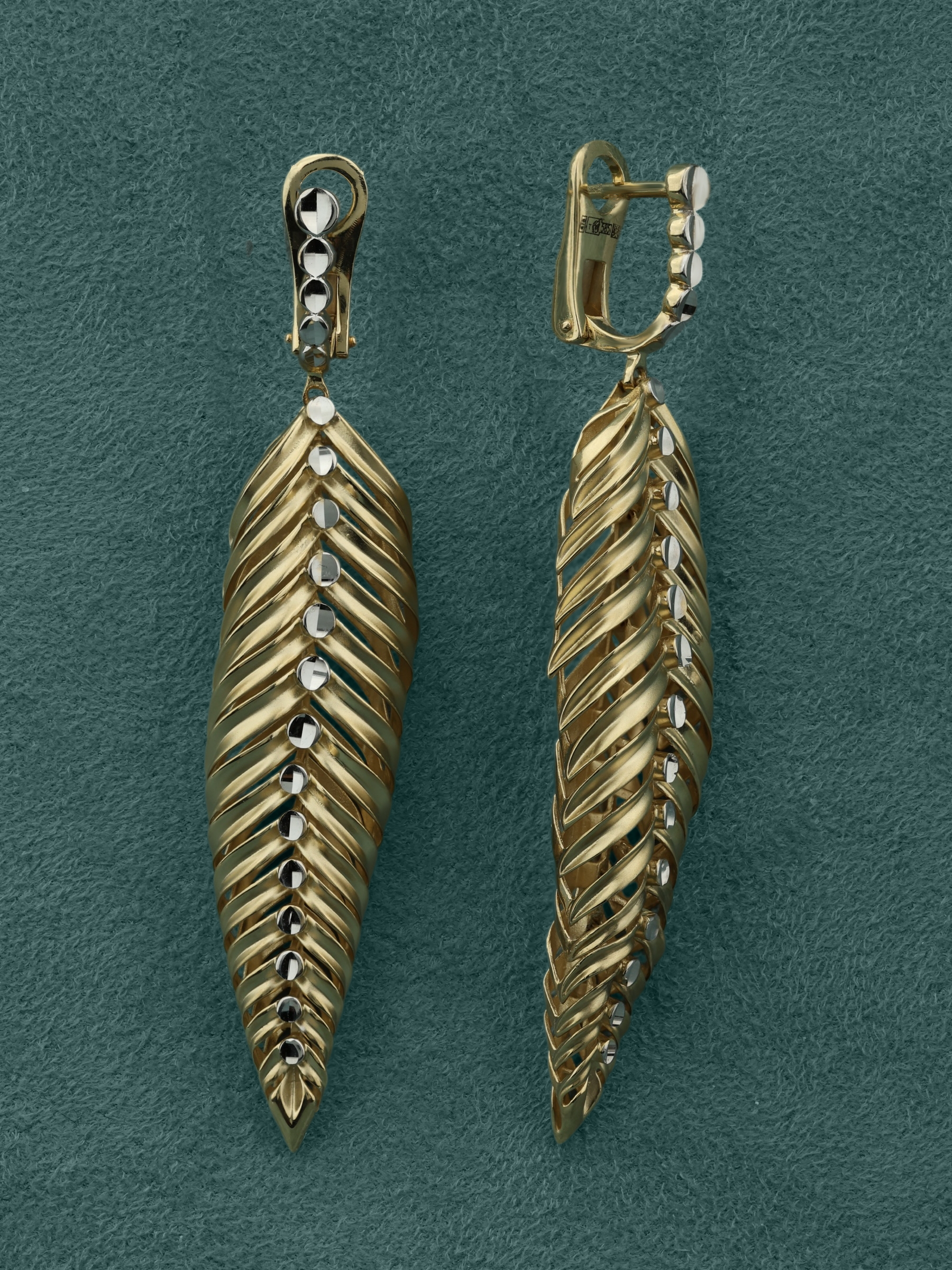 Откройте для себя воплощение природной эстетики и ювелирного мастерства в серьгах из коллекции Vioretty — Palm Branch. Это украшение создано для тех, кто ценит выразительные детали и безупречный стиль. Серьги выполнены из лимонного золота 585 пробы, которое придает изделию благородное и мягкое свечение. Дизайн модели вдохновлен изяществом растительных мотивов: мастерски проработанная форма листьев притягивает взгляд своей детализацией и объемной фактурой.