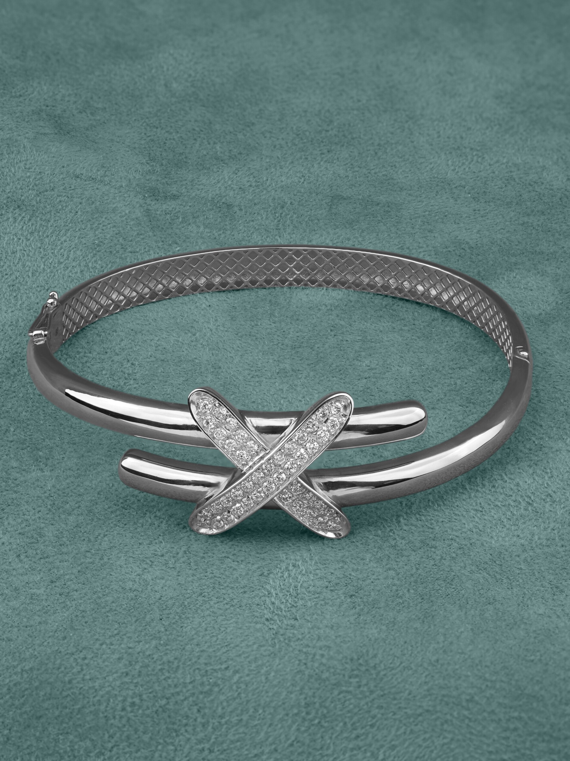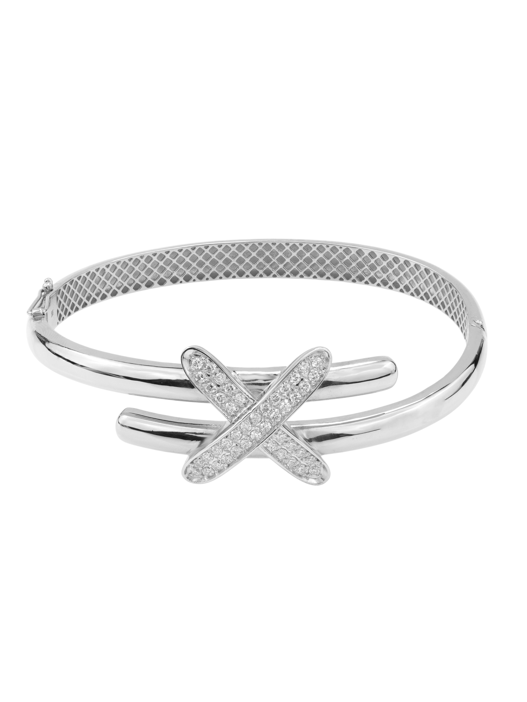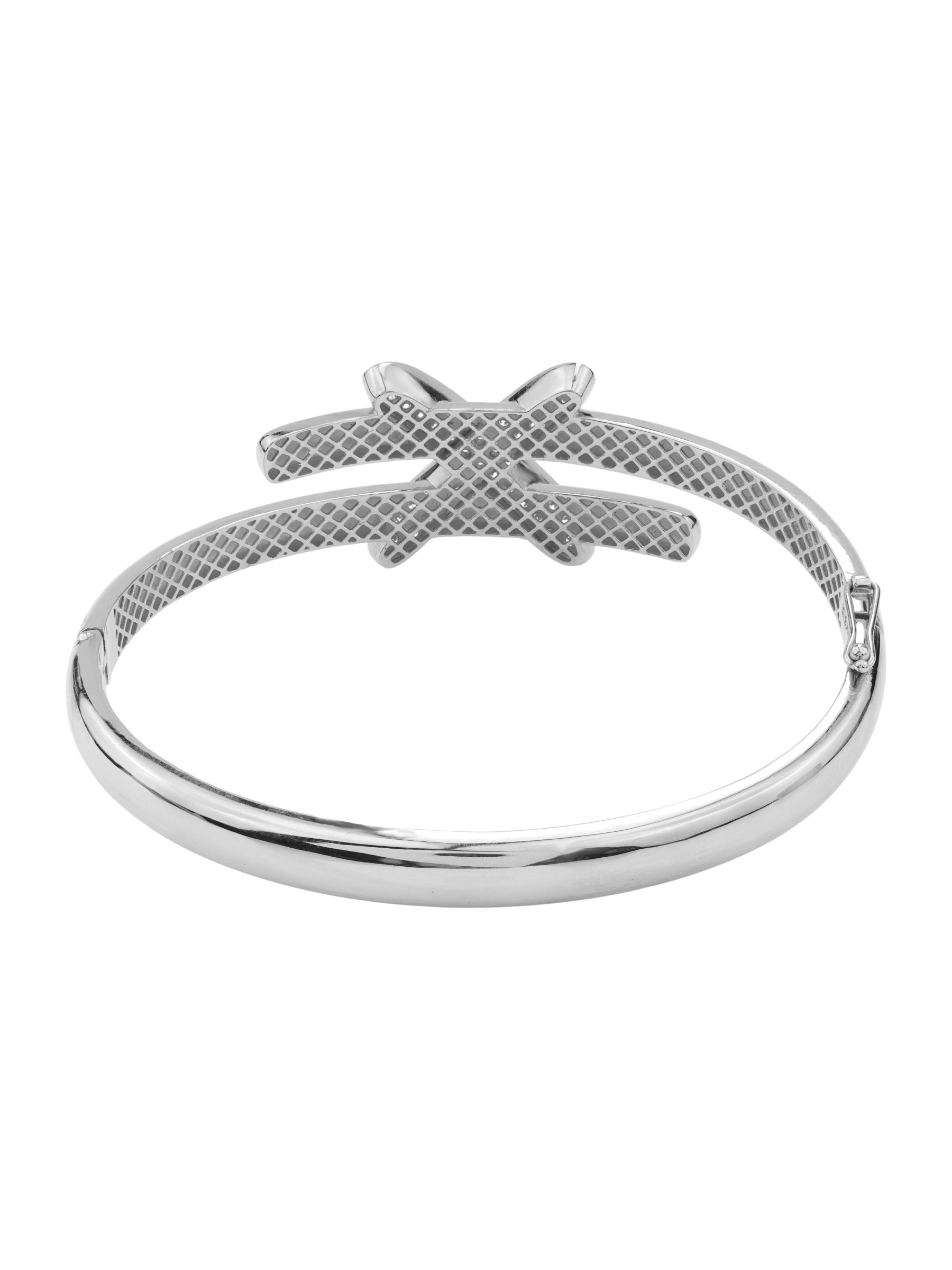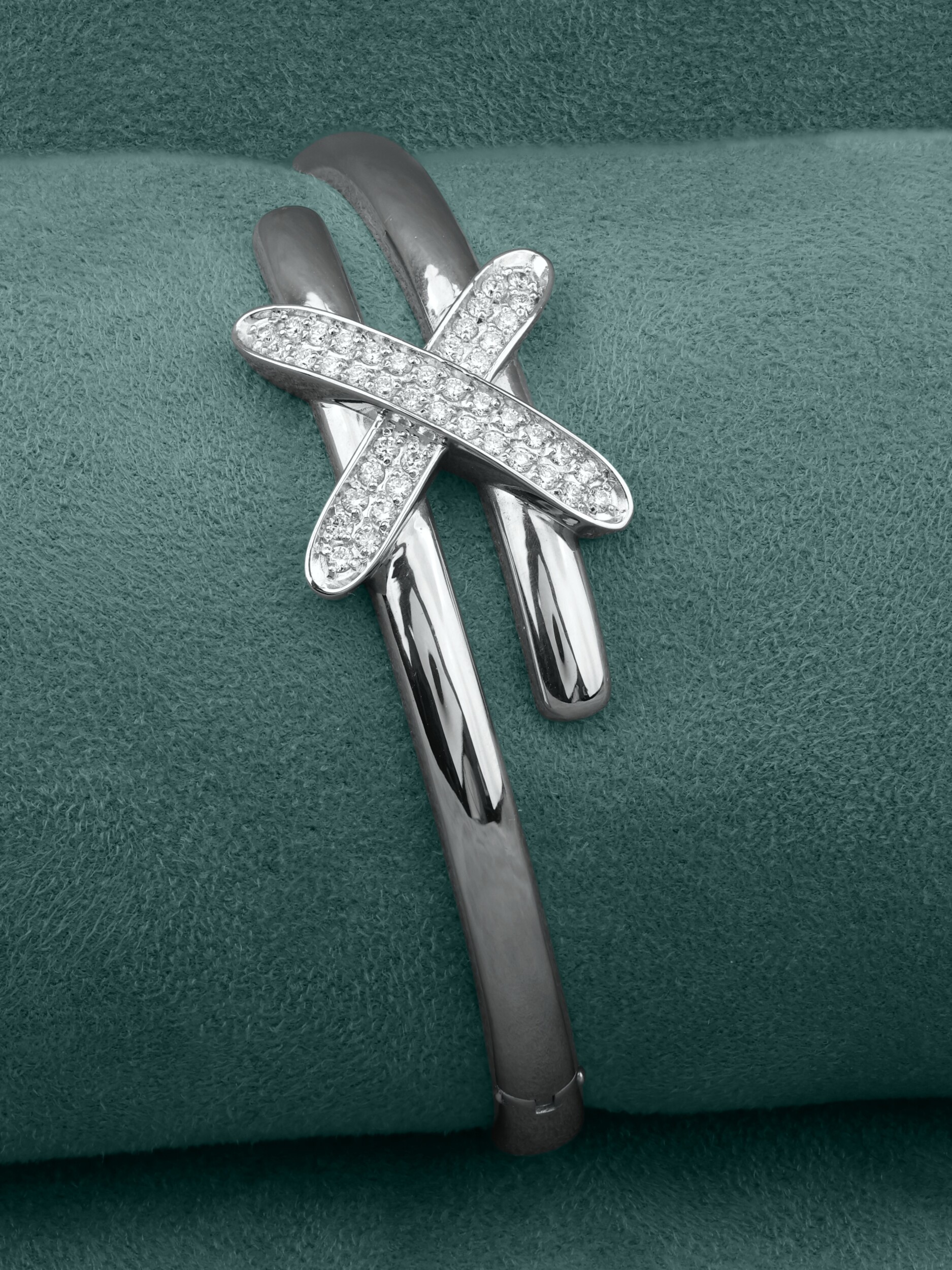 Декор украшения дополняют 44 бриллианта круглой огранки с безупречными белыми характеристиками. Камни расположены таким образом, что создают эффект непрерывного мерцания при каждом движении руки. Этот браслет — универсальный аксессуар, который подойдет как для женщин, так и для мужчин, предпочитающих статусные и выразительные ювелирные решения. Его современная форма и классическое сочетание белого золота с прозрачными бриллиантами позволяют легко комбинировать модель с другими украшениями.