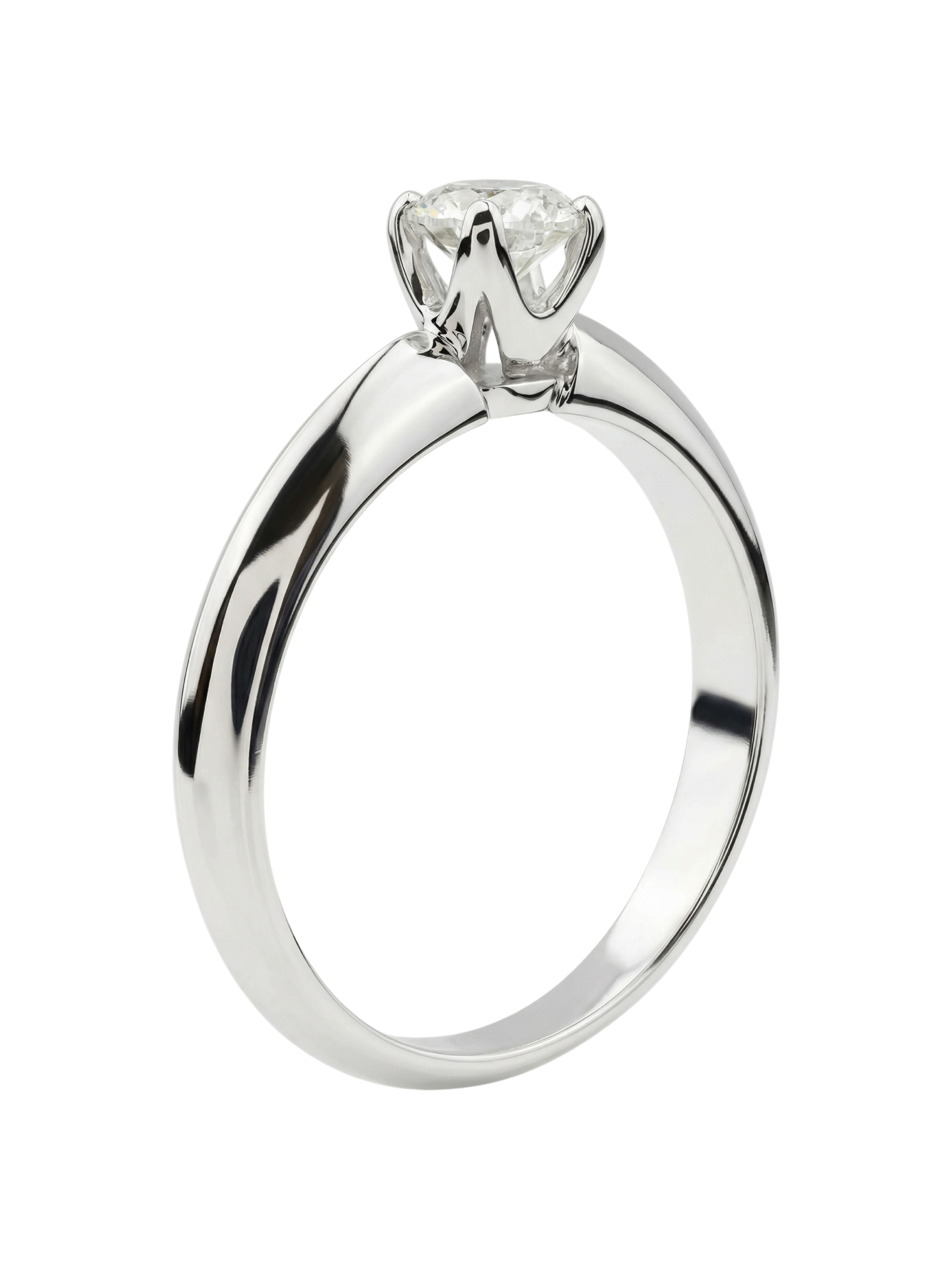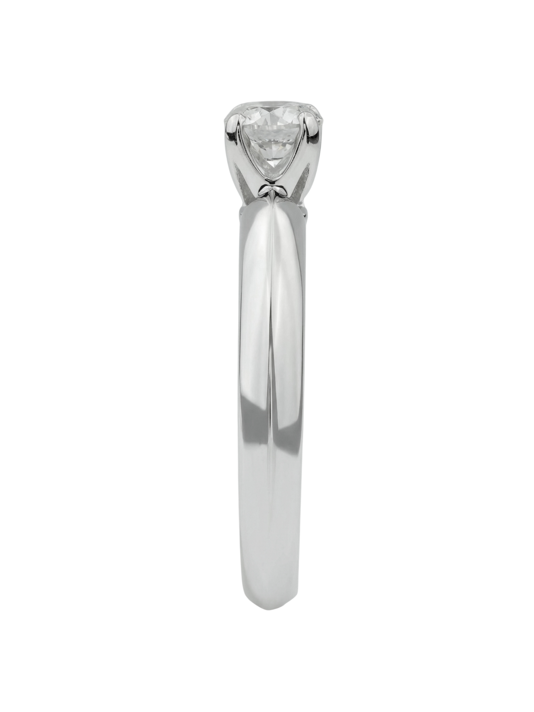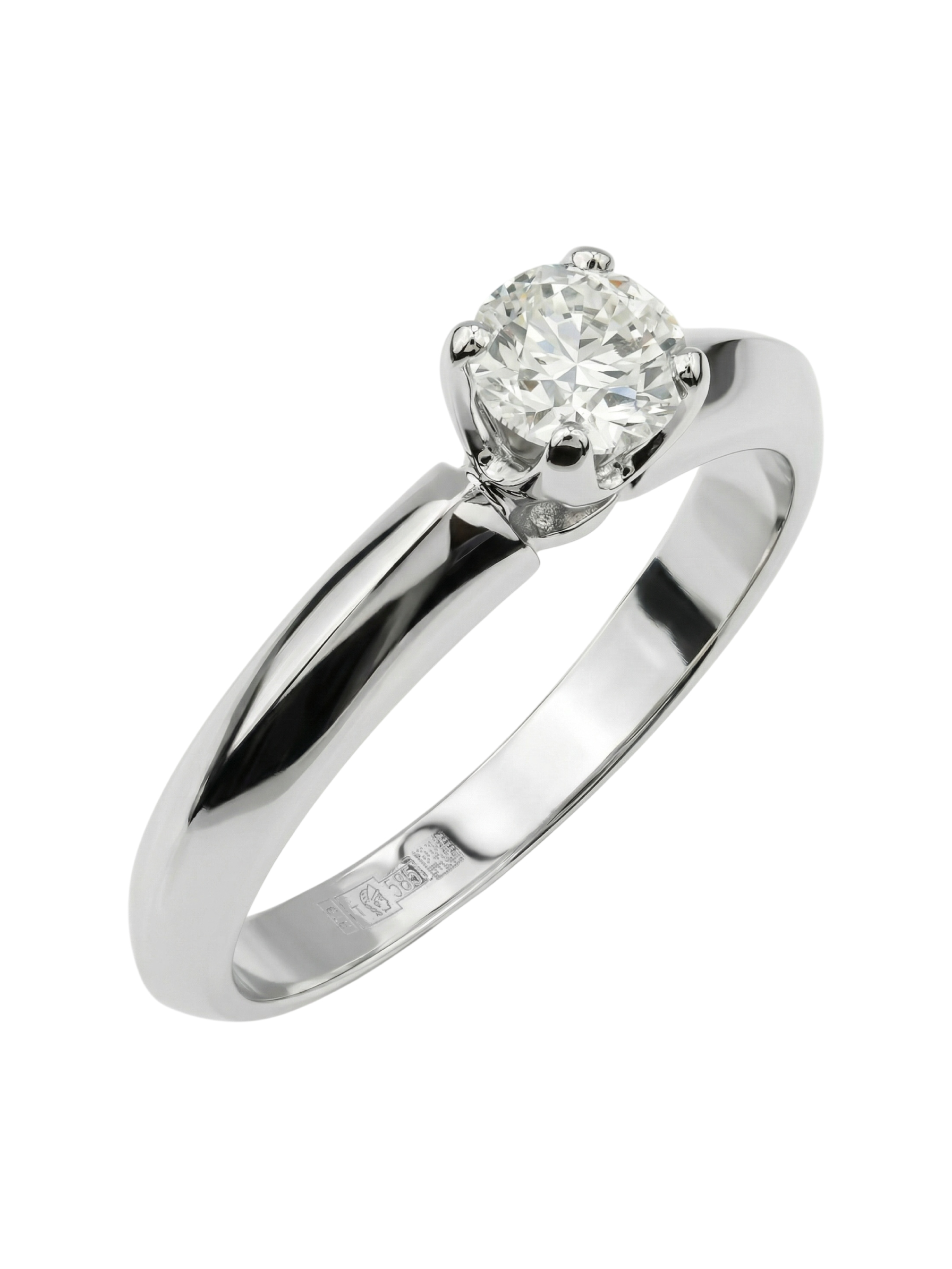 В центре композиции расположен один великолепный бриллиант круглой формы. Белый цвет камня гармонично сочетается с холодным оттенком металла, создавая цельный и притягательный образ. Классический дизайн позволяет носить это кольцо как самостоятельный аксессуар, так и в сочетании с другими украшениями. Данная модель универсальна и подходит как для женщин, так и для мужчин, что делает её прекрасным выбором для памятного подарка или помолвочного кольца.