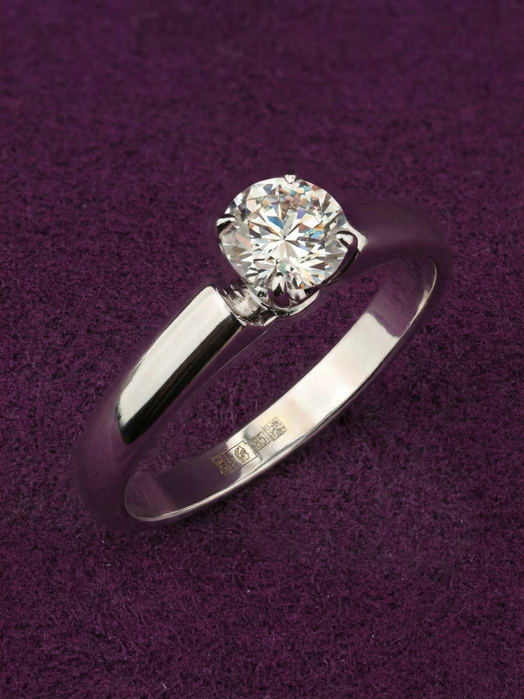 Центральный элемент композиции — один крупный бриллиант круглой формы огранки. Белый цвет вставки гармонично дополняет сияние металла, создавая цельный и притягательный образ. Благодаря универсальному дизайну, это кольцо подходит как для женщин, так и для мужчин, являясь символом верности или значимым подарком для особого случая. Гладкая шинка подчеркивает чистоту линий, а надежная закрепка камня обеспечивает безопасность и комфорт при повседневном ношении.