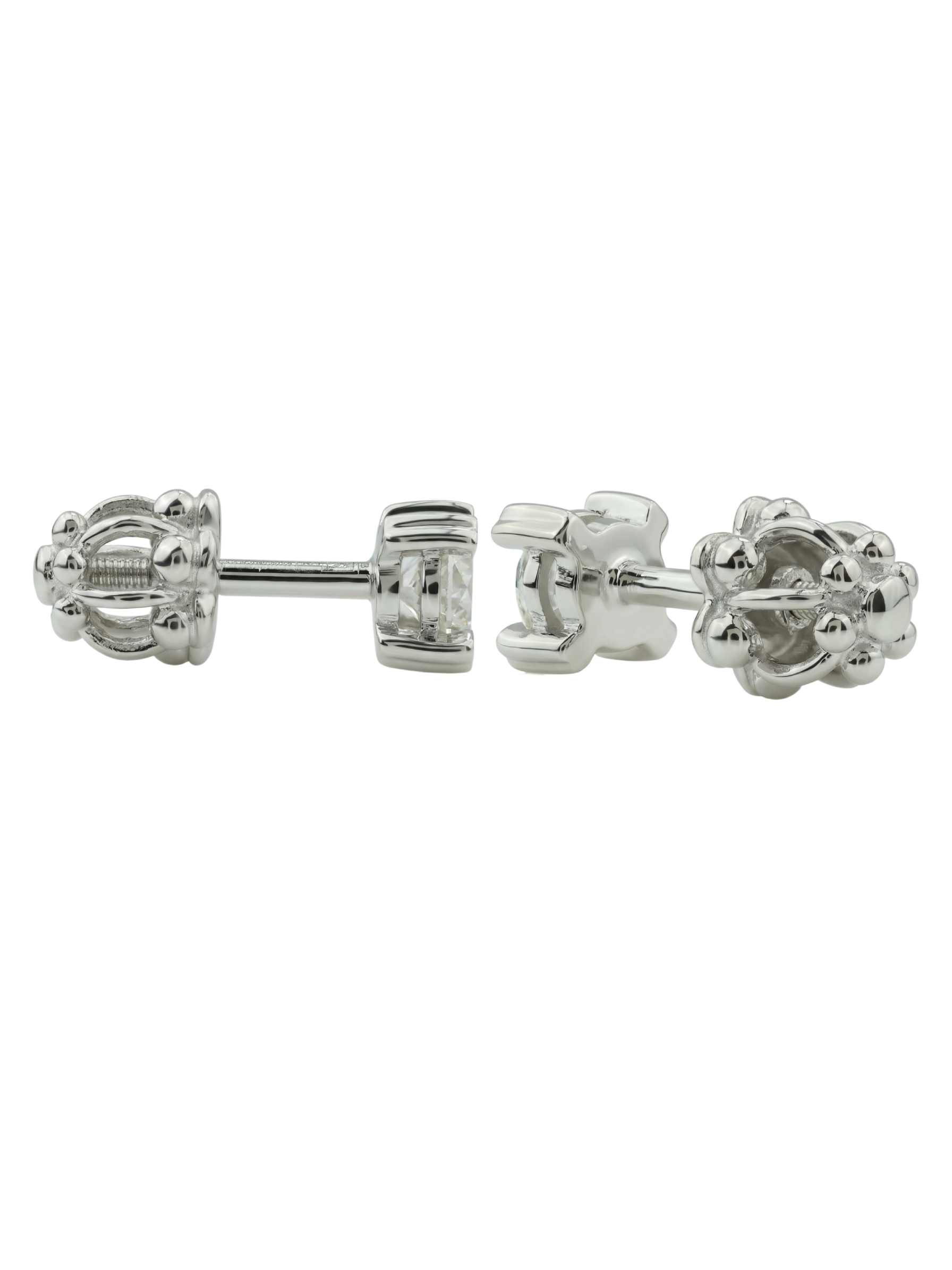 Центральным элементом композиции являются два безупречных бриллианта круглой формы. Белый цвет вставок гармонично сочетается с материалом оправы, создавая единый сияющий ансамбль. Удобная форма пусетов делает эти серьги универсальными: они подходят как для женщин, так и для мужчин, добавляя образу статусности и утонченного акцента. Лаконичный крепеж надежно фиксирует драгоценные камни, позволяя свету максимально играть в их гранях.