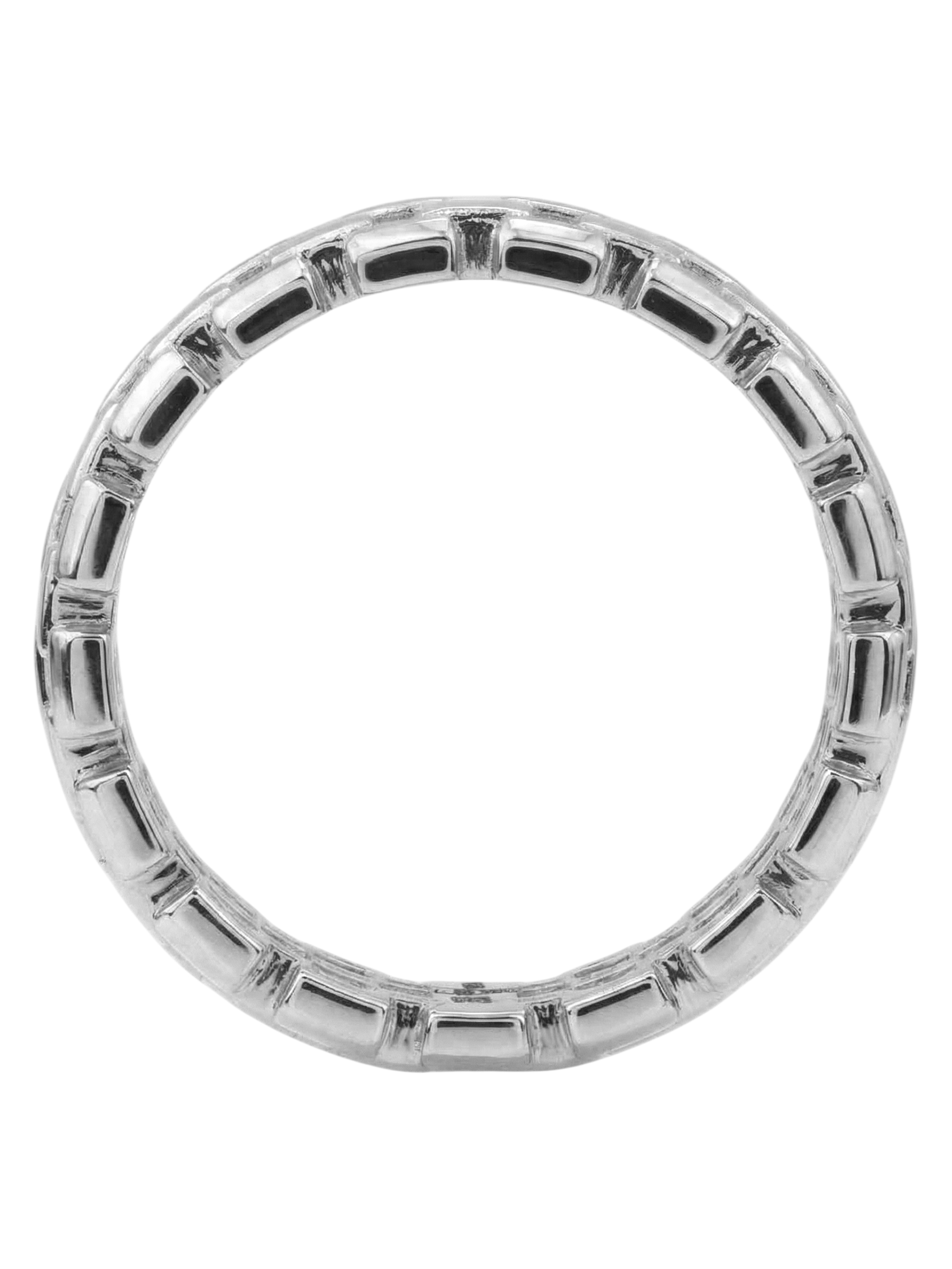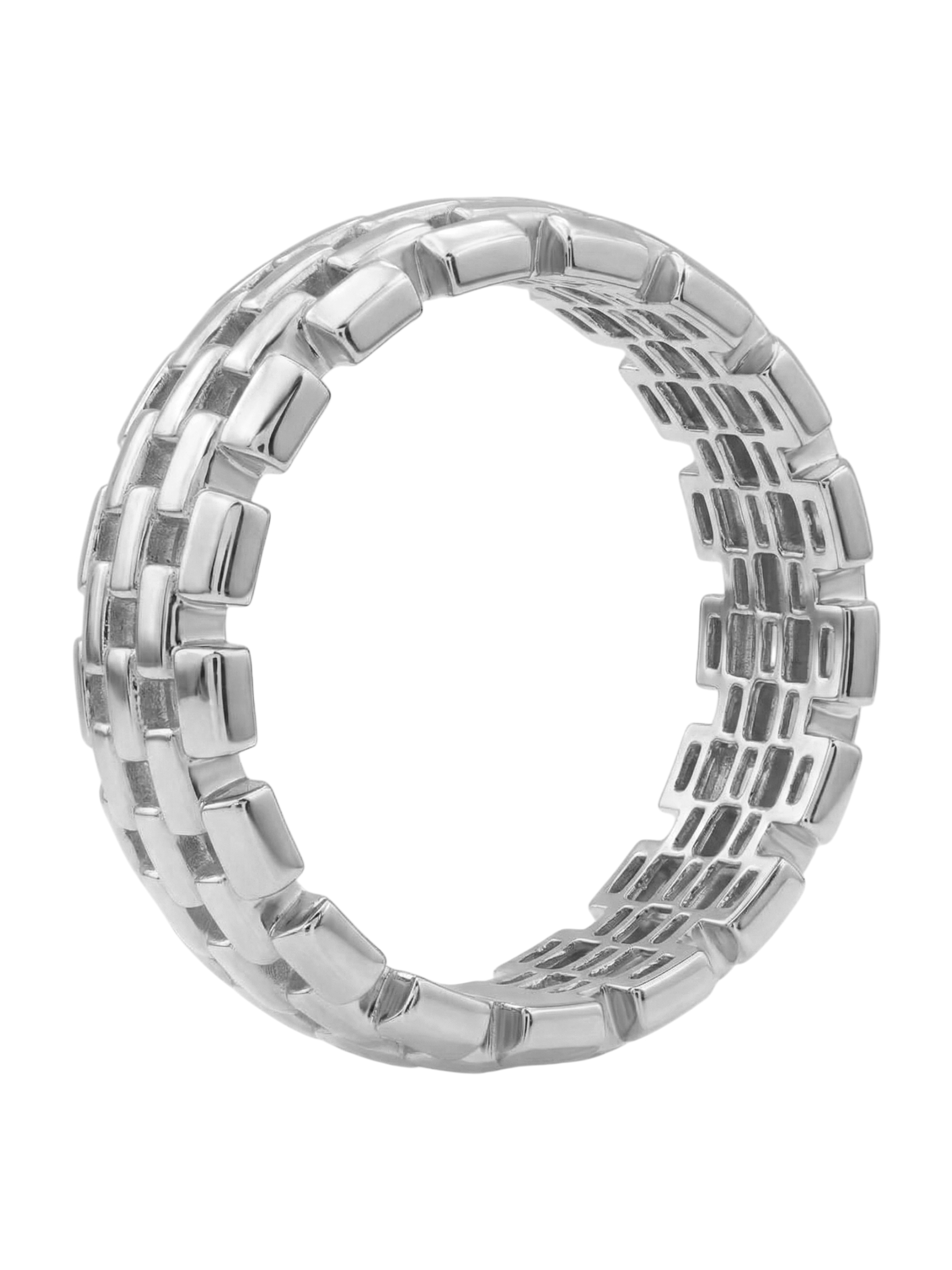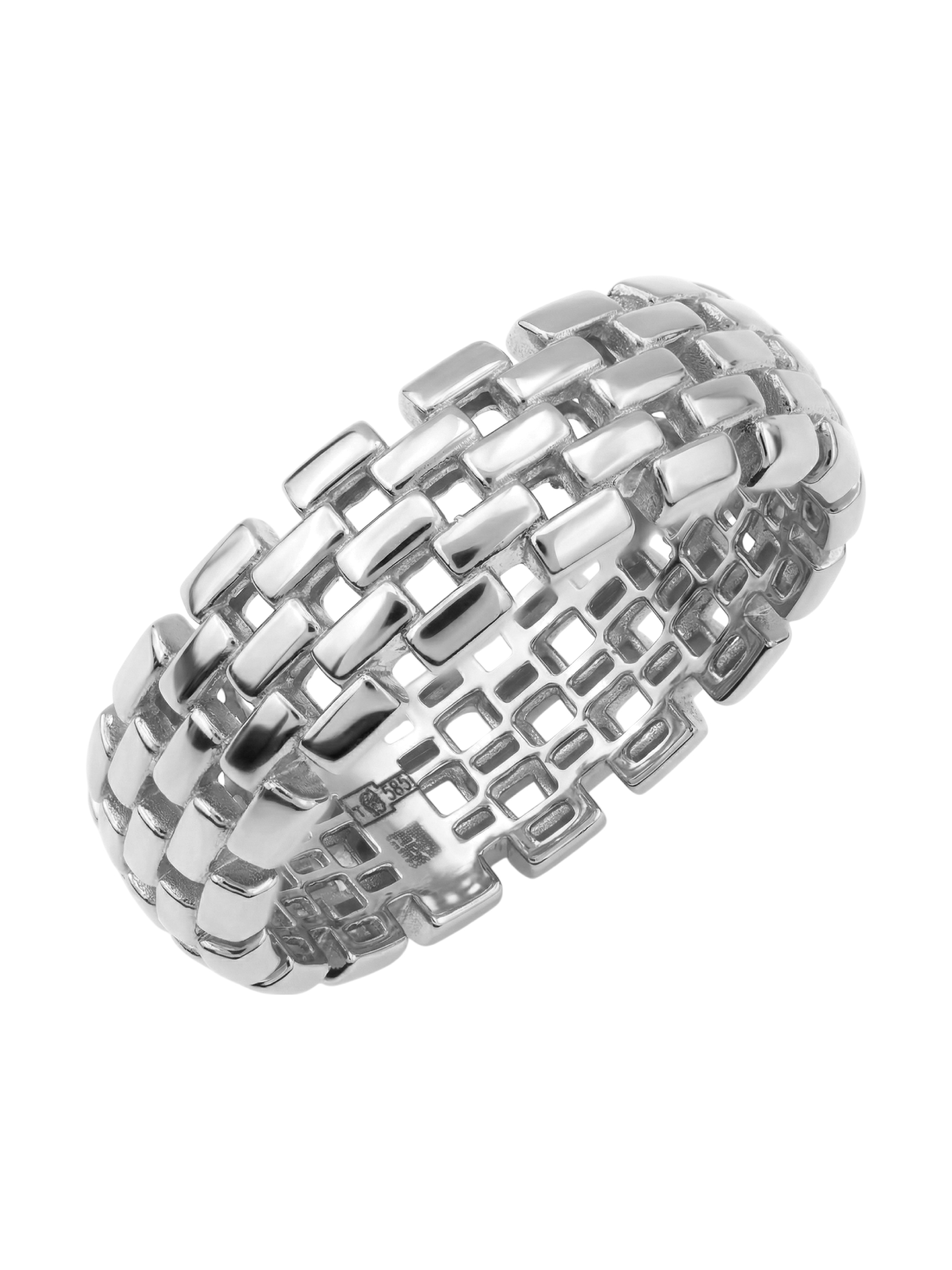 Кольцо из белого золота — это воплощение изысканности и современного ювелирного искусства. Изделие, представленное в коллекции Vioretty — Обручальные кольца Vioretty, создано для тех, кто ценит лаконичность и благородство драгоценных металлов. Выполненное в утонченном итальянском стиле, это кольцо сразу привлекает внимание своей необычной текстурой, напоминающей кирпичную кладку, которая создает объемный и динамичный визуальный эффект. Игра света на полированных гранях белого золота 585 пробы делает украшение выразительным и статусным акцентом в любом образе.