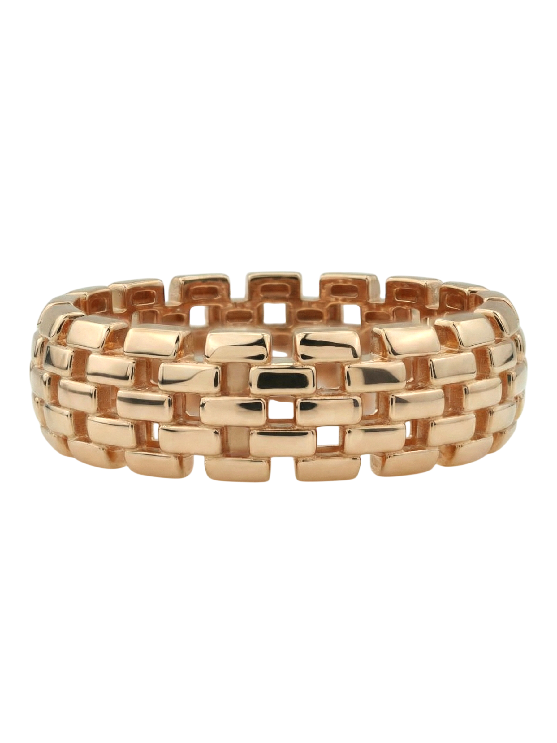 Изысканное кольцо из красного золота 585 пробы станет воплощением утонченного вкуса и стиля. Изделие, представленное в рамках коллекции Vioretty — Обручальные кольца Vioretty, выполнено в эффектном итальянском дизайне, который притягивает взгляд своей необычной, сетчатой фактурой. Ювелиры добились сочетания благородного блеска драгоценного металла и сложной геометрии, создав украшение, напоминающее по своей текстуре тонкое плетение.