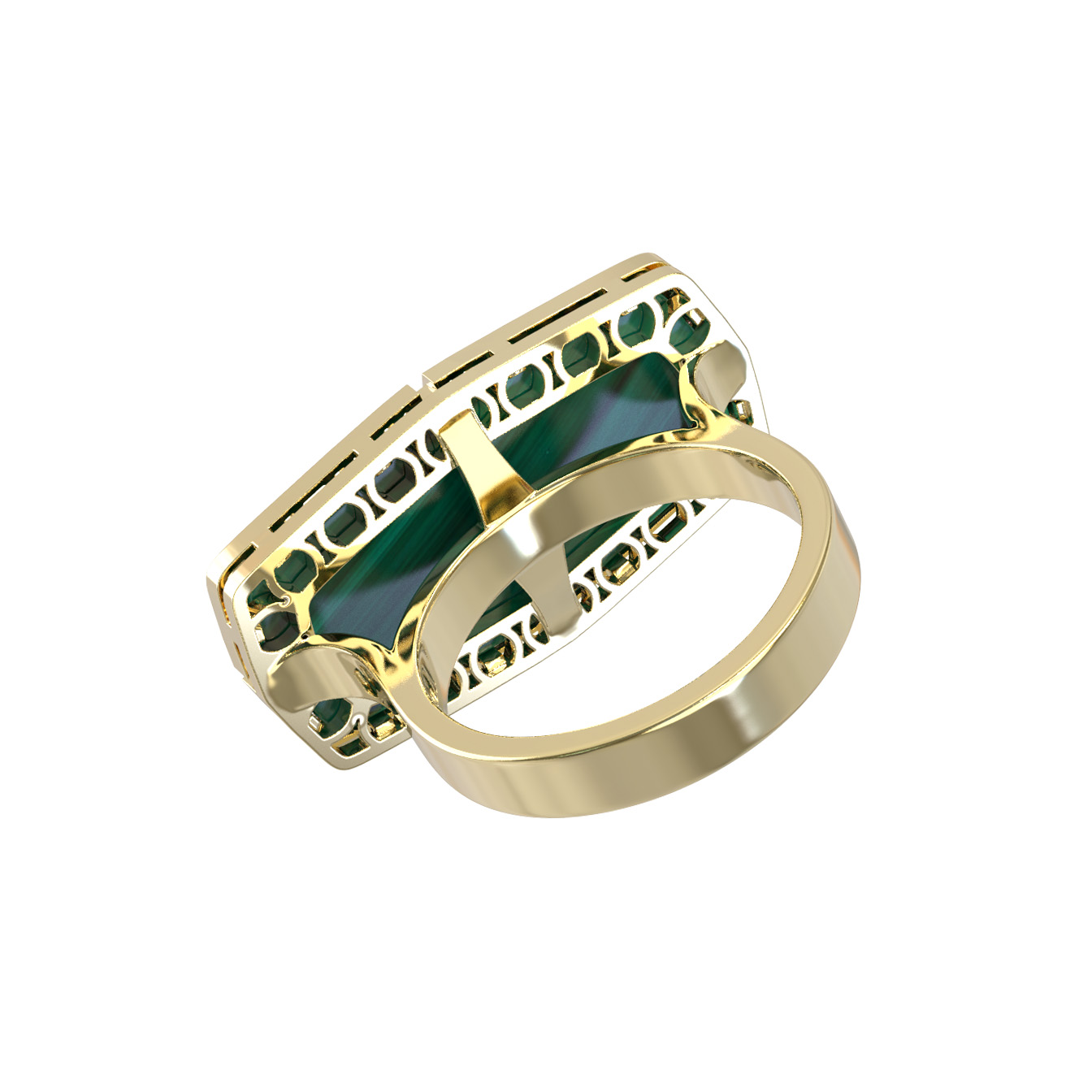 Кольцо из лимонного золота c бриллиантами, рубином и малахитом