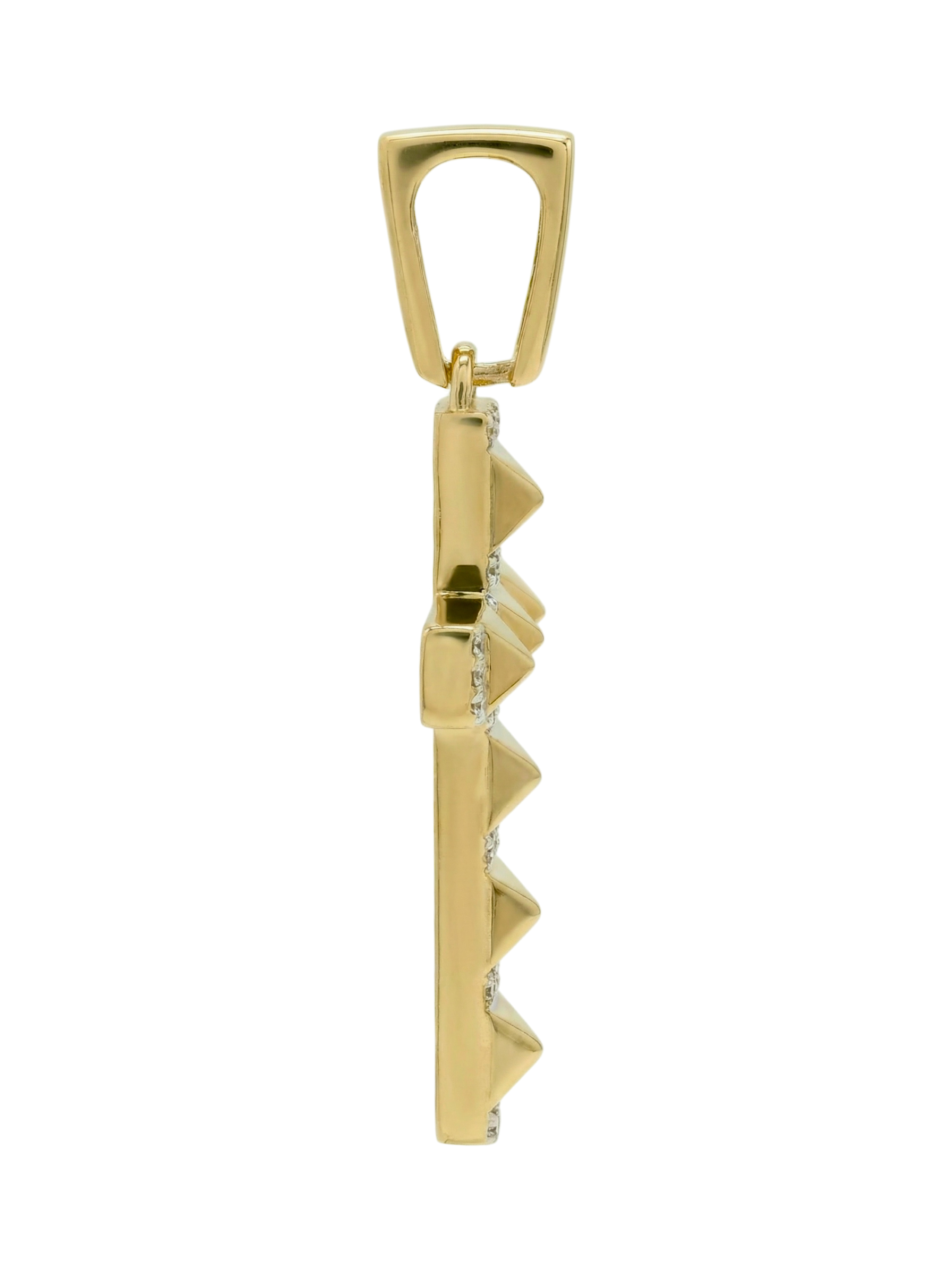 Этот изысканный крест из лимонного золота 585 пробы станет центральным элементом вашей коллекции украшений. Дизайн изделия, вдохновленный эстетикой Vioretty — Piramidi, представляет собой сочетание строгой геометрии и благородного сияния. Лимонное золото, отличающееся своим характерным теплым оттенком, идеально подчеркивает контраст с ярким блеском вставок.