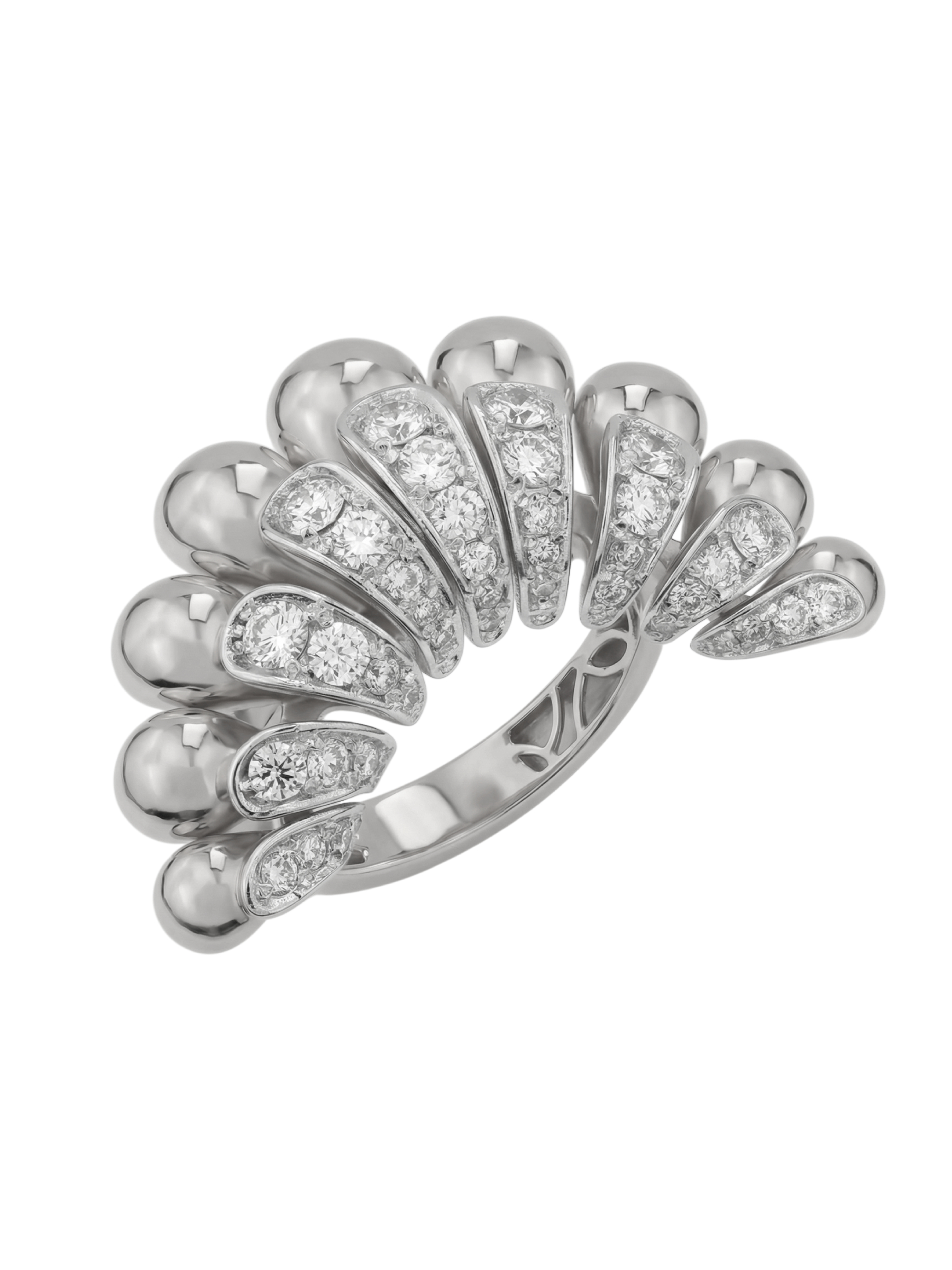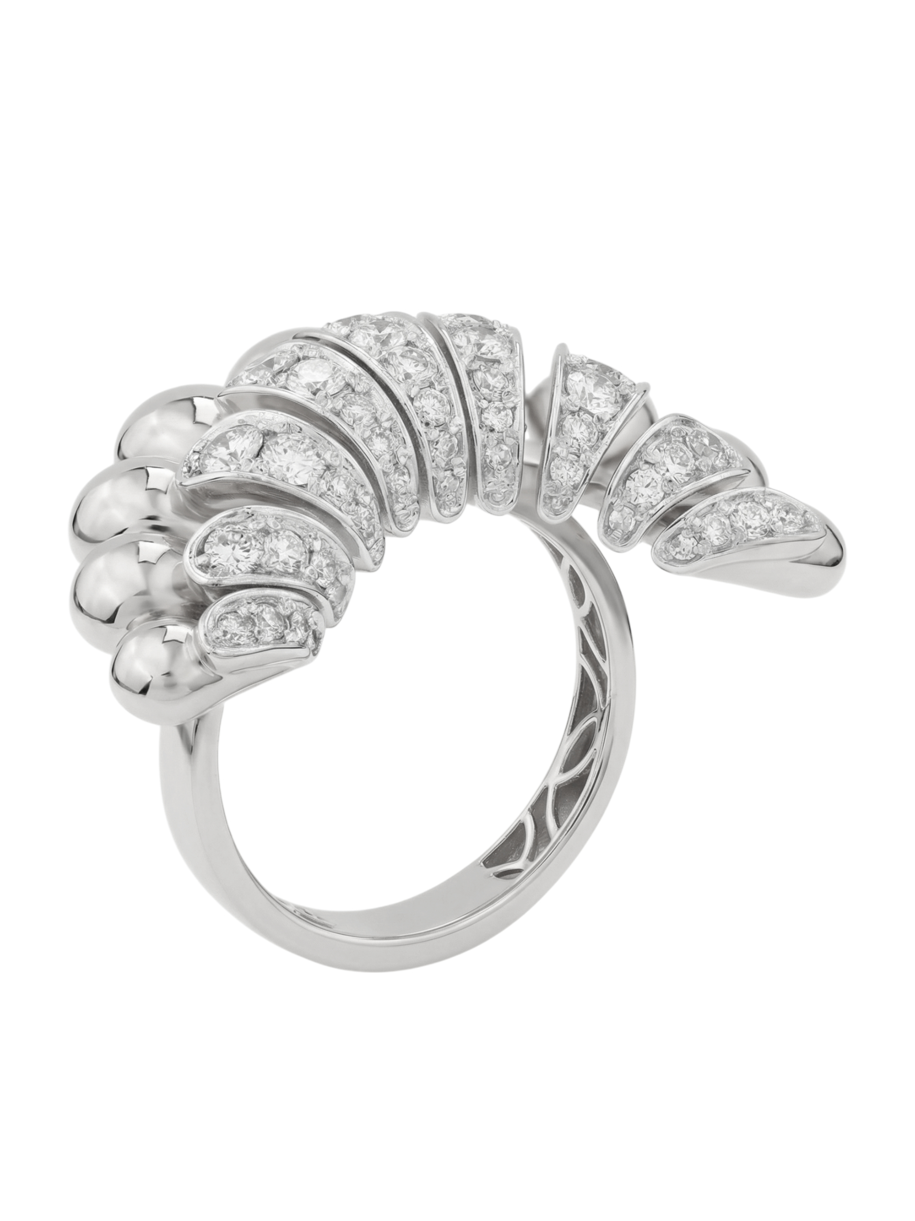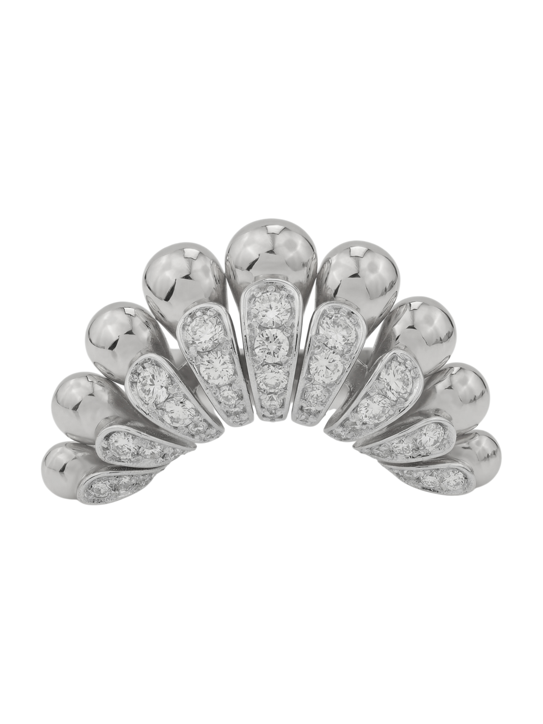 Декоративная часть изделия инкрустирована 40 бриллиантами, имеющими классическую форму огранки круг. Белый цвет вставок великолепно дополняет белое золото, обеспечивая эффектное светопреломление и завораживающую игру света при каждом движении. Тщательно проработанные детали делают это кольцо великолепным выбором как для женщин, так и для мужчин, предпочитающих премиальные ювелирные изделия.