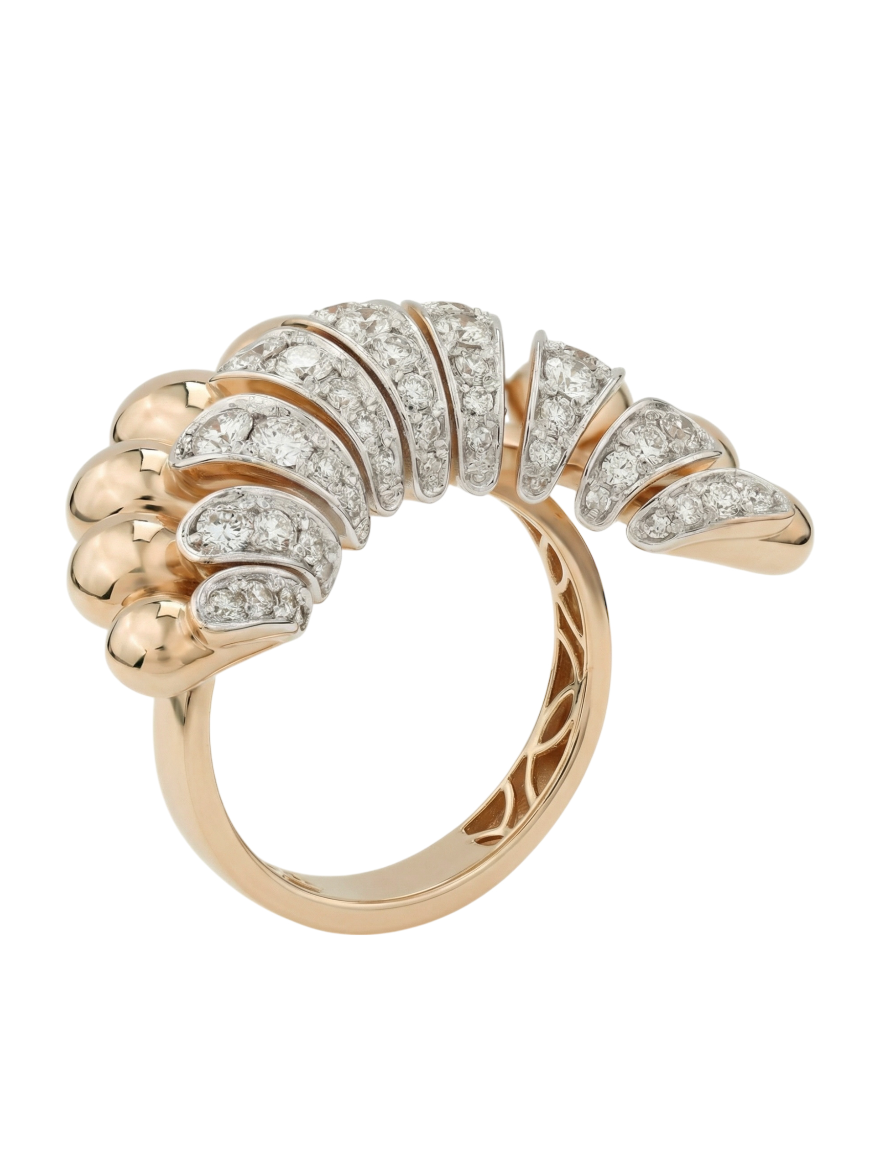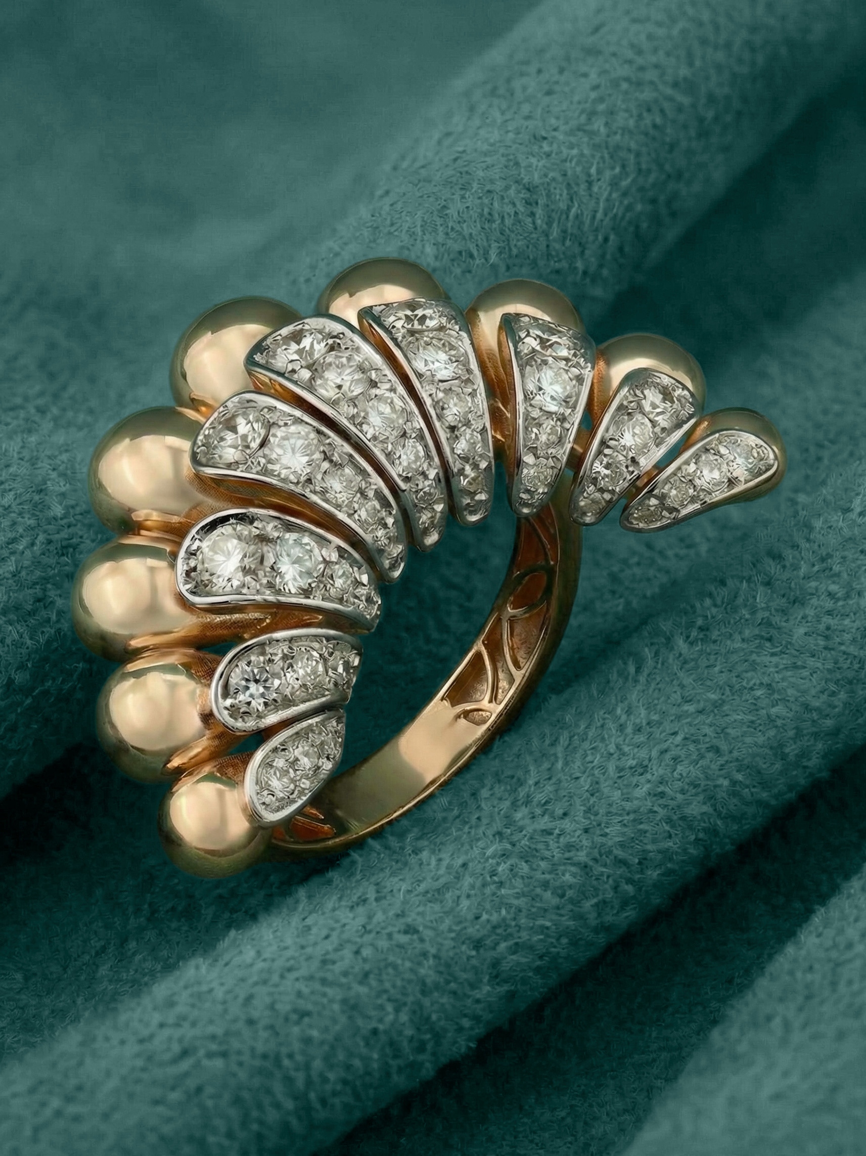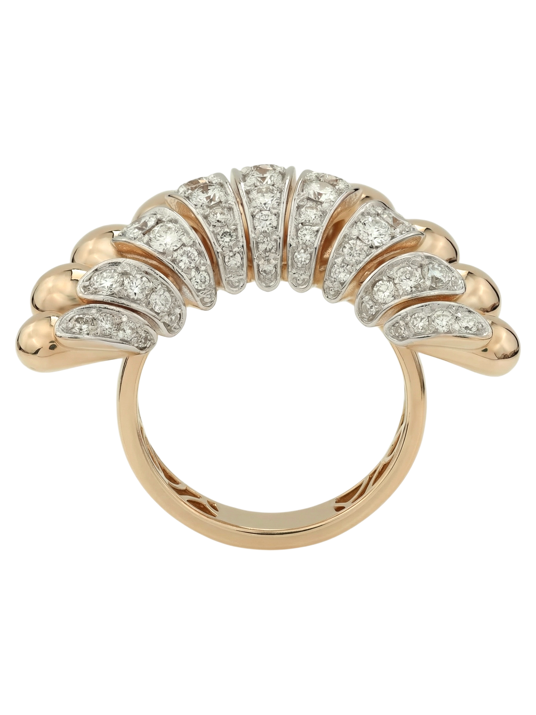 Эффектное кольцо из золота с бриллиантами — это воплощение итальянского стиля и безупречного ювелирного искусства. Модель выполнена из красного золота 585 пробы, которое подчеркивает теплоту и благородство металла. Уникальный дизайн, вдохновленный эстетикой коллекции Vioretty — Flamenco, сразу притягивает взгляд своей динамичной формой, напоминающей веер, где гладкие золотые элементы гармонично чередуются с яркими вставками.