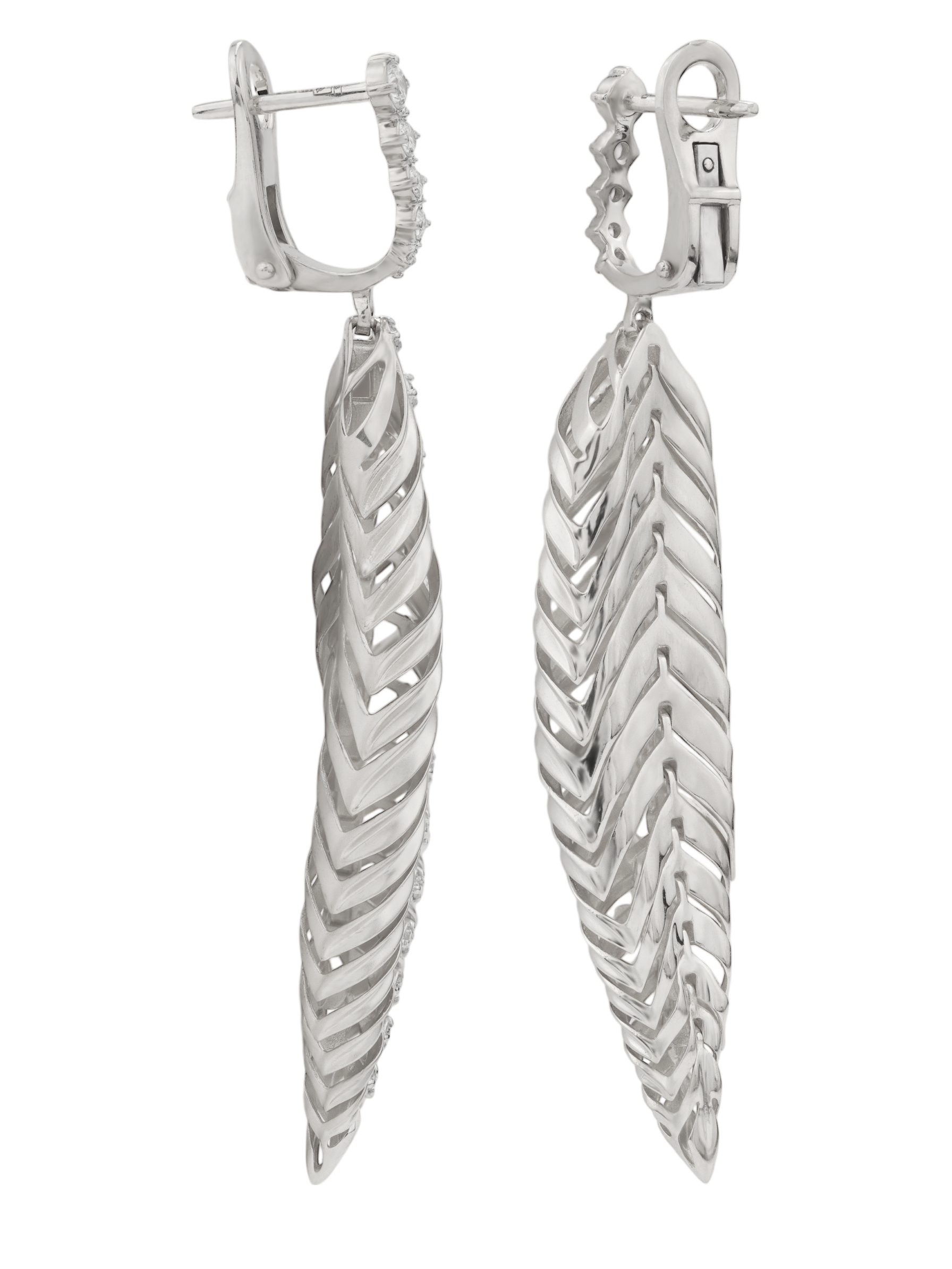 Элегантные серьги из белого золота 585 пробы из коллекции Vioretty — Palm Branch станут безупречным дополнением вашего образа. Дизайн украшения вдохновлен природной эстетикой и выполнен в форме изящных листьев, которые мягко обрамляют лицо, придавая облику благородство и утонченность. Холодный блеск белого золота идеально подчеркивает чистоту и сияние вставок.