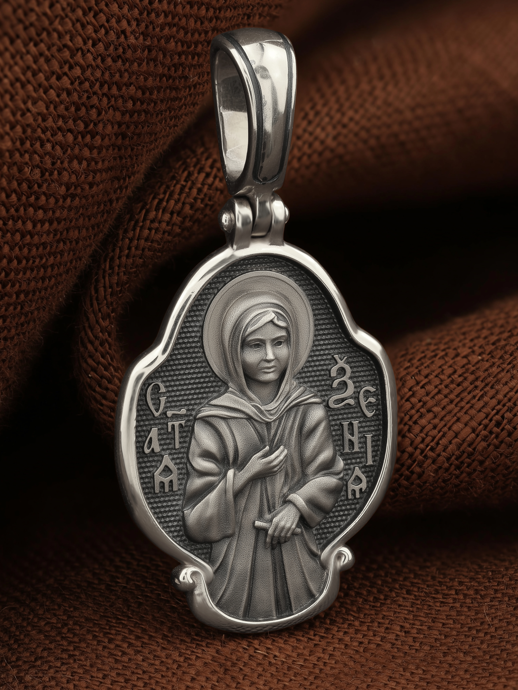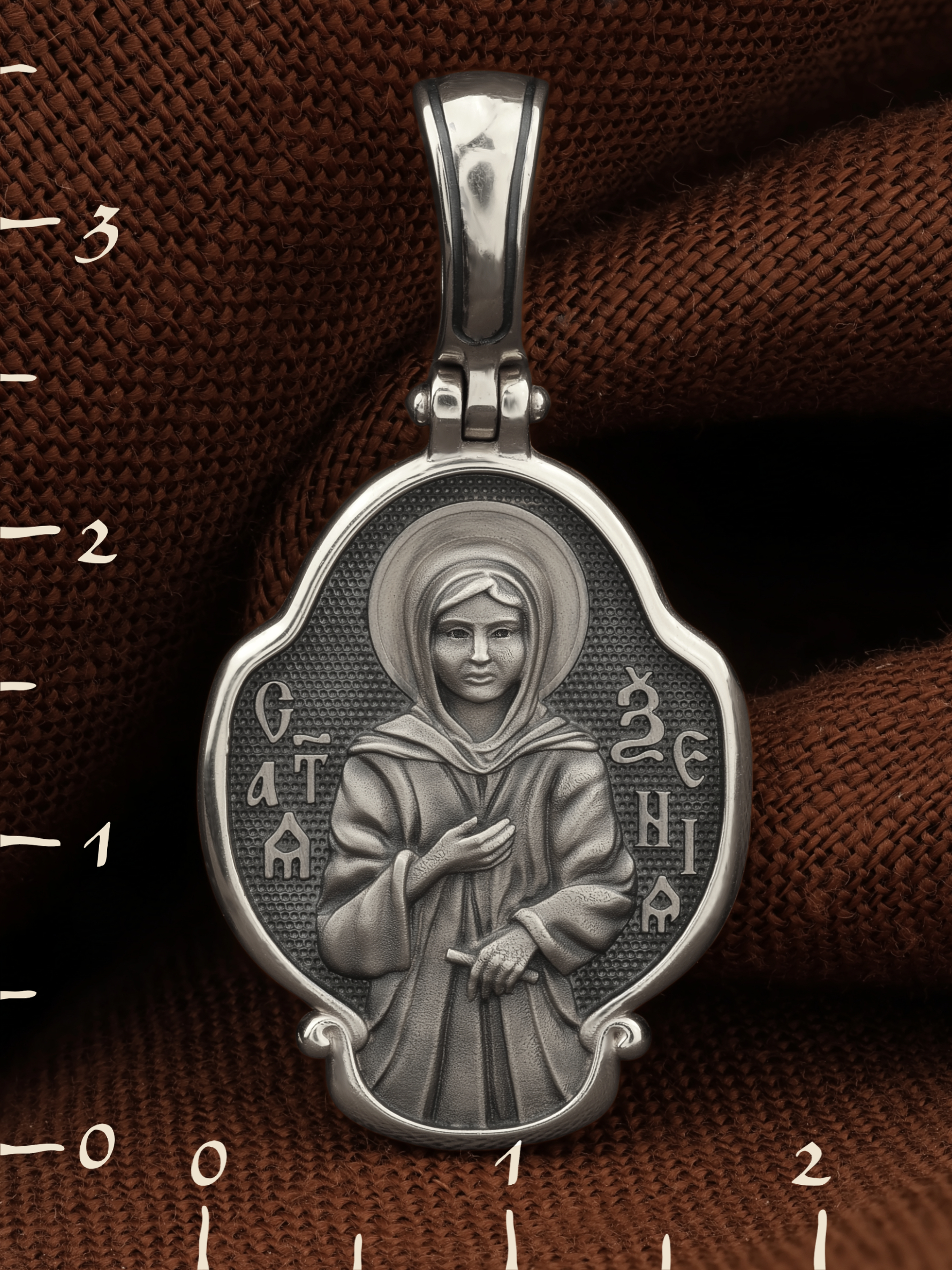 На лицевой стороне образка изображена Святая блаженная Ксения Петербургская, в миру Ксения Григорьевна Петрова.