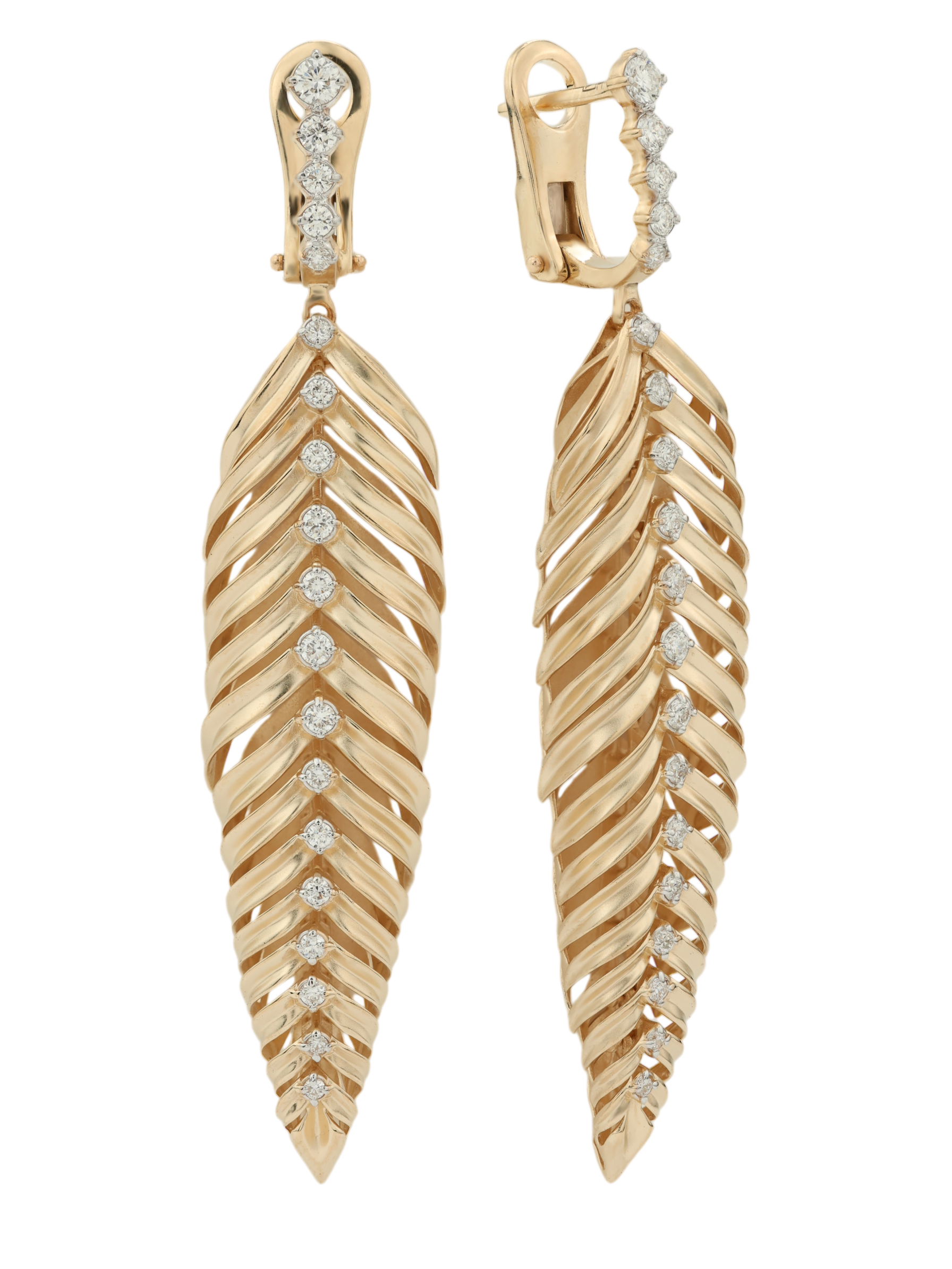 Изысканные серьги из красного золота 585 пробы из коллекции Vioretty — Palm Branch станут воплощением утонченного вкуса и высокого статуса. Ювелирный дизайн украшения вдохновлен природными мотивами: форма изделий имитирует грациозную пальмовую ветвь, подчеркивая естественную красоту и элегантность линий. Это украшение создано для тех, кто ценит сочетание классических драгоценных материалов и смелых дизайнерских решений.