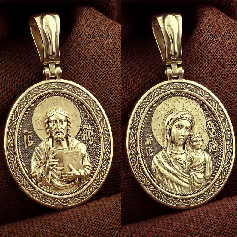 На лицевой стороне креста изображен Иисус Христос в образе Вседержителя, по-гречески «Пантократор». Это древнейший образ Спасителя, на котором Он представлен как властелин и правитель мира. Христос держит в руках Книгу, которая символизирует Книгу Бытия, то есть весь сотворенный Богом мир. В этой Книге судьбы всех людей, живущих на земле. Часто эту Книгу образно называют Книгой Жизни.