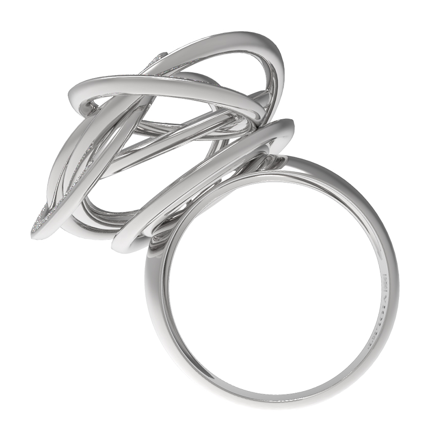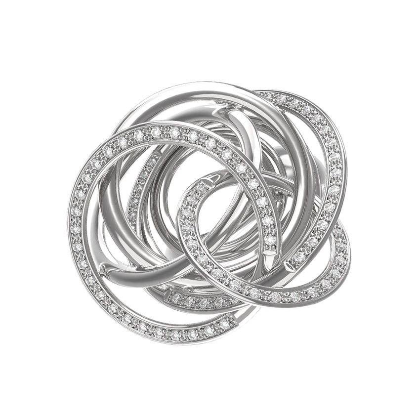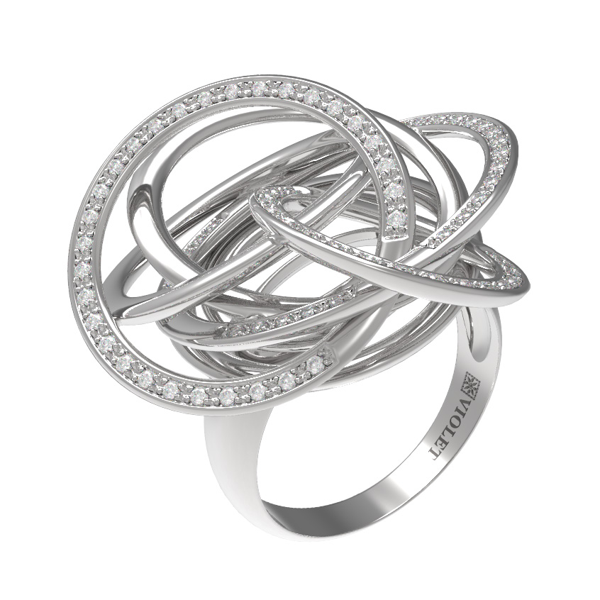Кольцо из белого золота с бриллиантами — это воплощение современного ювелирного искусства, вдохновленное эстетикой авангарда. Данное украшение из коллекции De Luxe — Геометрия притягивает взгляд своей сложной, многоуровневой конструкцией. В дизайне мастерски обыграна тема геометрии: переплетение изящных металлических колец создает динамичный и объемный образ, который выглядит эффектно под любым углом. Белое золото 585 пробы служит идеальной оправой, подчеркивая холодный блеск благородного металла.