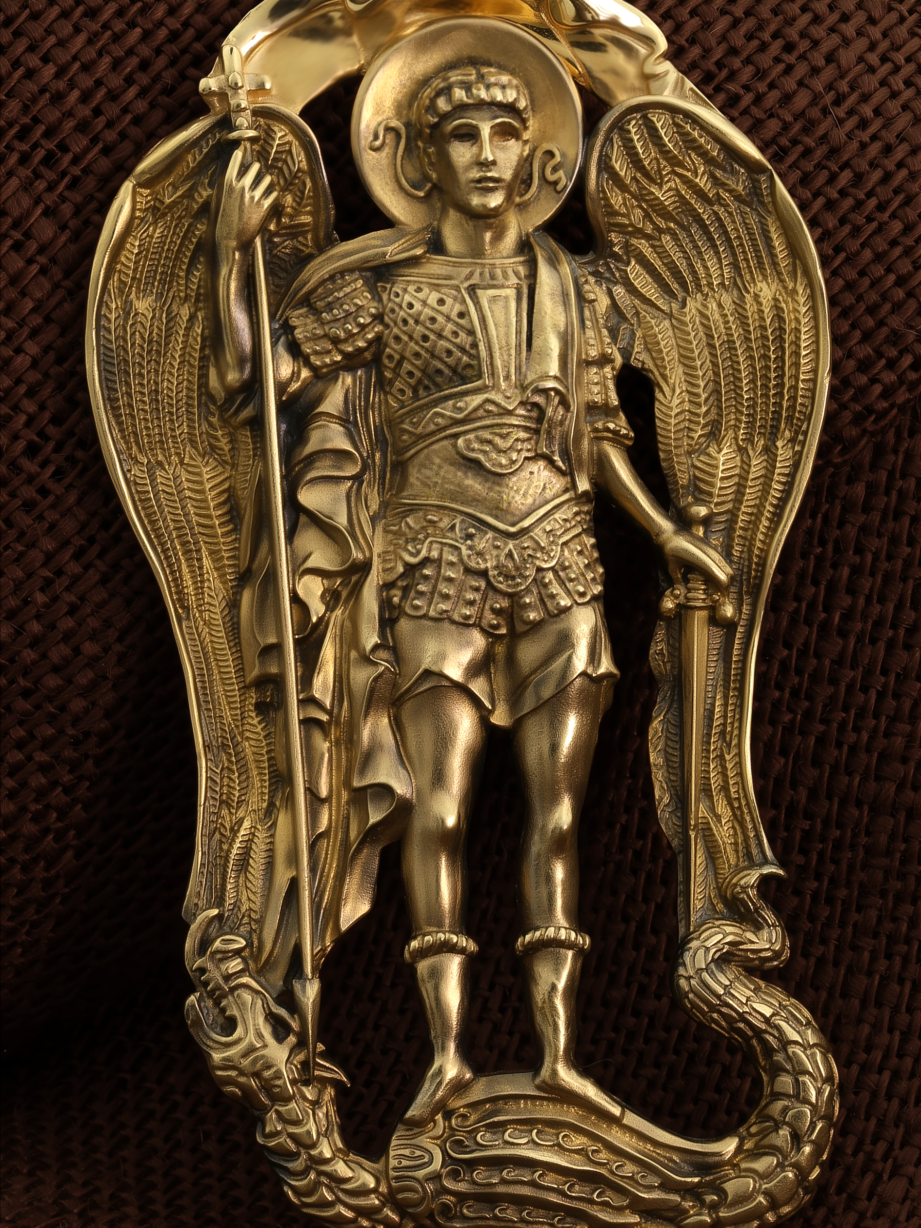 Основой композиции является изображение Архангела Михаила, верховного военачальника всего ангельского воинства. Его имя означает «Кто яко Бог?», так как он самый могучий и грозный враг зла. Архангел Михаил в Писании именуется «князем», «вождем воинства Господня» и изображается как главный борец против дьявола и всякого беззакония среди людей. Отсюда его церковное именование «архистратиг», т. е. старший воин, вождь.