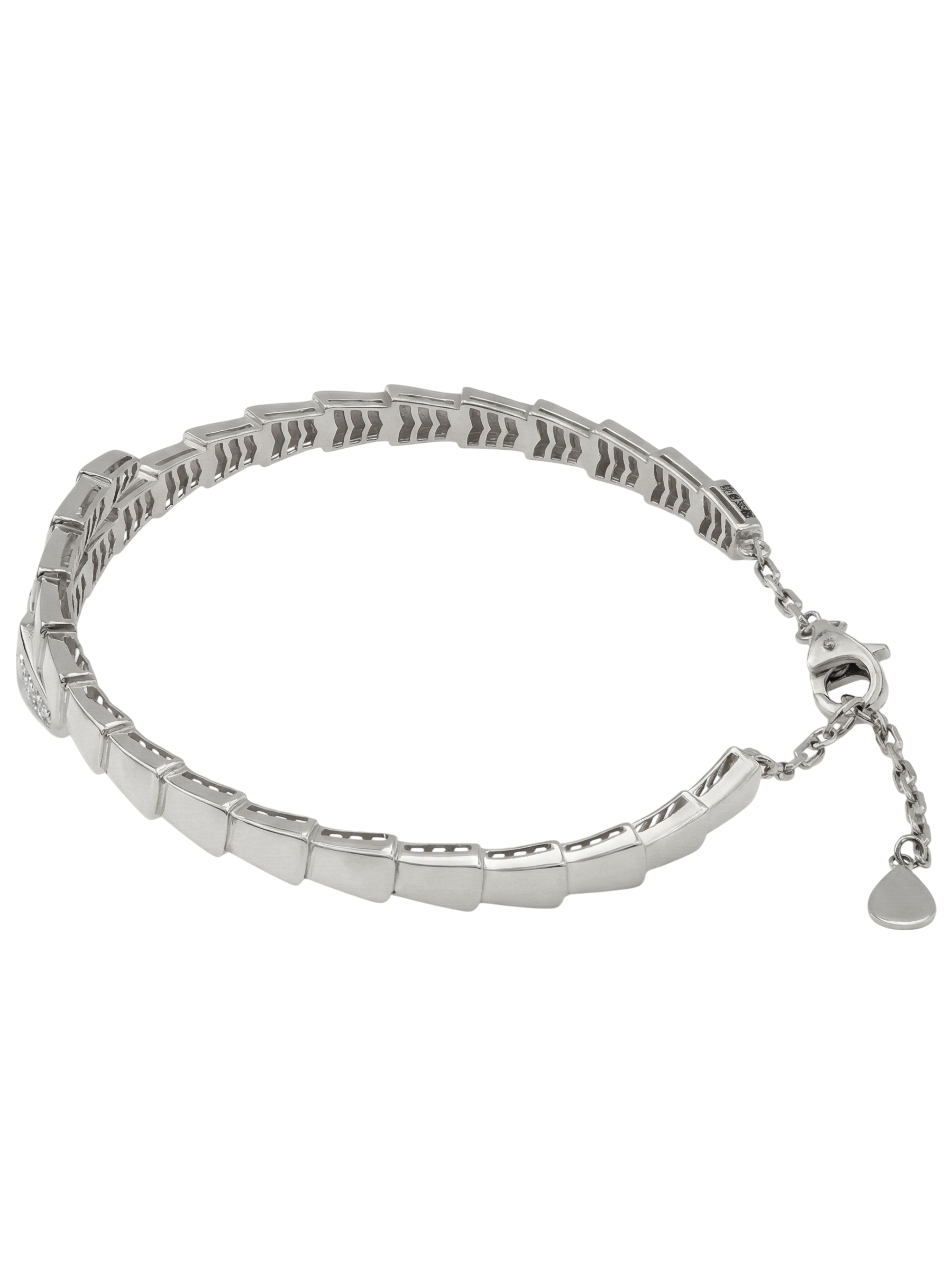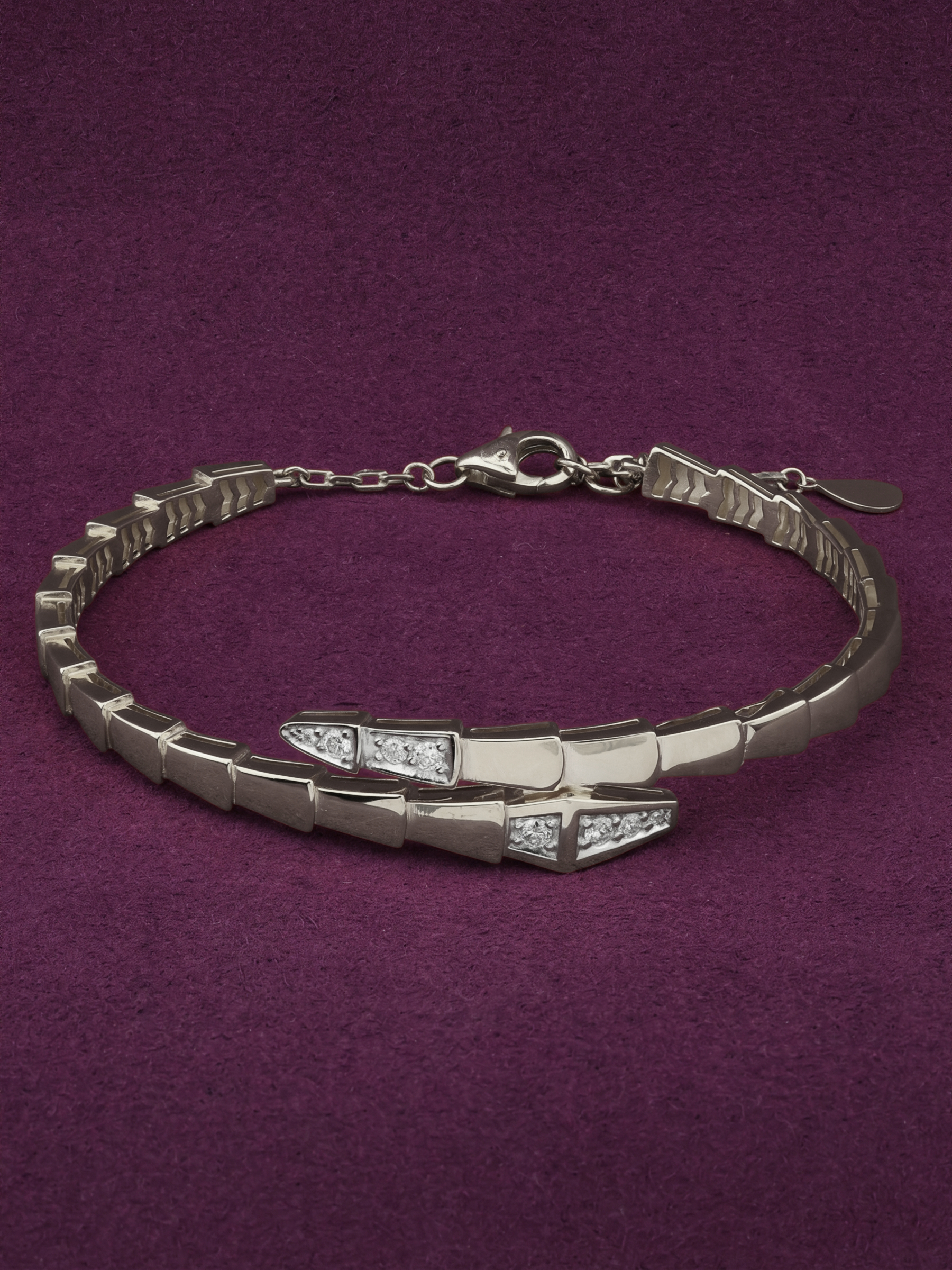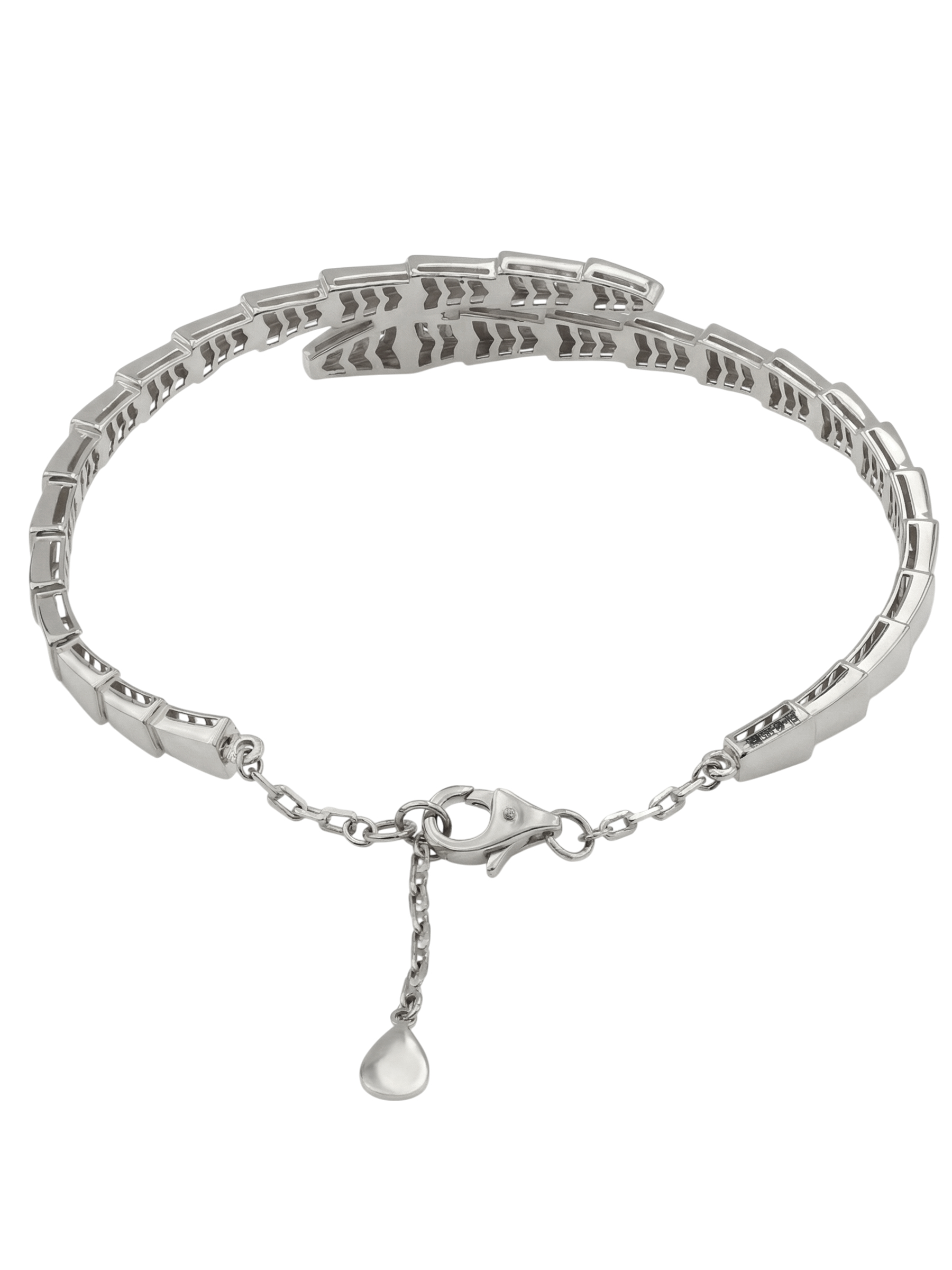 Универсальность дизайна позволяет носить браслет как женщинам, так и мужчинам, предпочитающим статусные аксессуары с характером. Изделие гармонично впишется в ваш повседневный гардероб или станет роскошным акцентом вечернего выхода. Вы можете дополнить свой образ, собрав полный комплект из серии De Luxe — Серпенти, чтобы подчеркнуть индивидуальность и чувство стиля. Это ювелирное украшение — идеальный выбор для тех, кто ценит сочетание классического белого золота и выразительной современной эстетики.