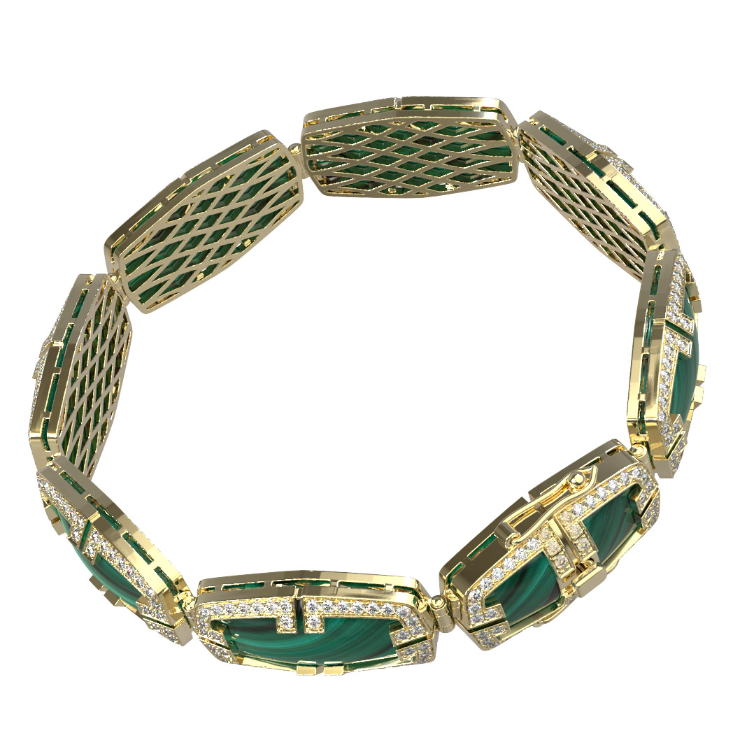 Браслет из лимонного золота c бриллиантами, рубином и малахитом