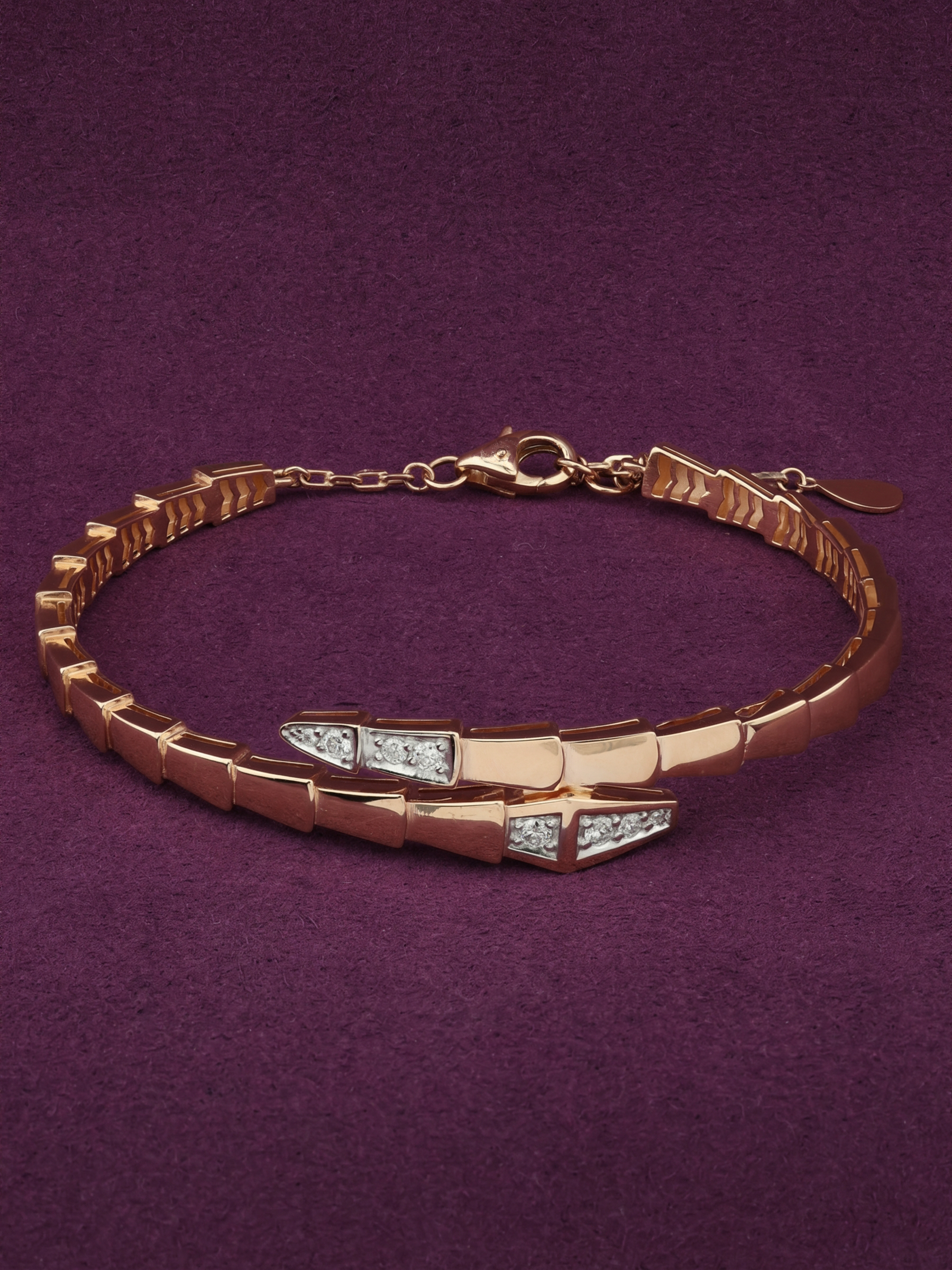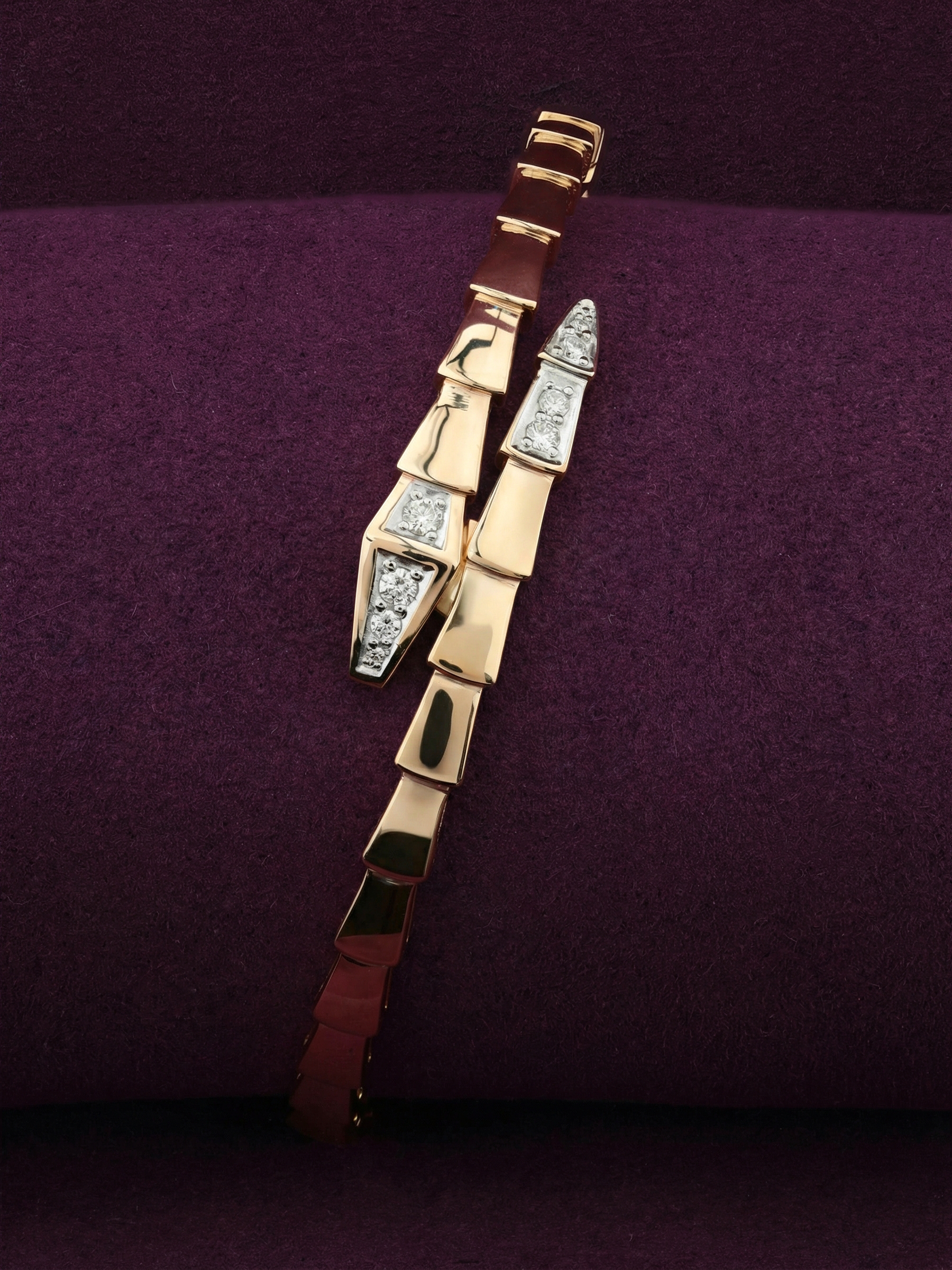 Роскошный браслет из красного золота 585 пробы станет ярким акцентом вашего образа. Это ювелирное изделие из коллекции De Luxe — Серпенти выполнено в оригинальном дизайне, напоминающем очертания скорпиона или грациозного змеиного силуэта, который плавно охватывает запястье. Гладкие линии металла создают динамичную композицию, подчеркивающую статус и безупречный вкус владельца.