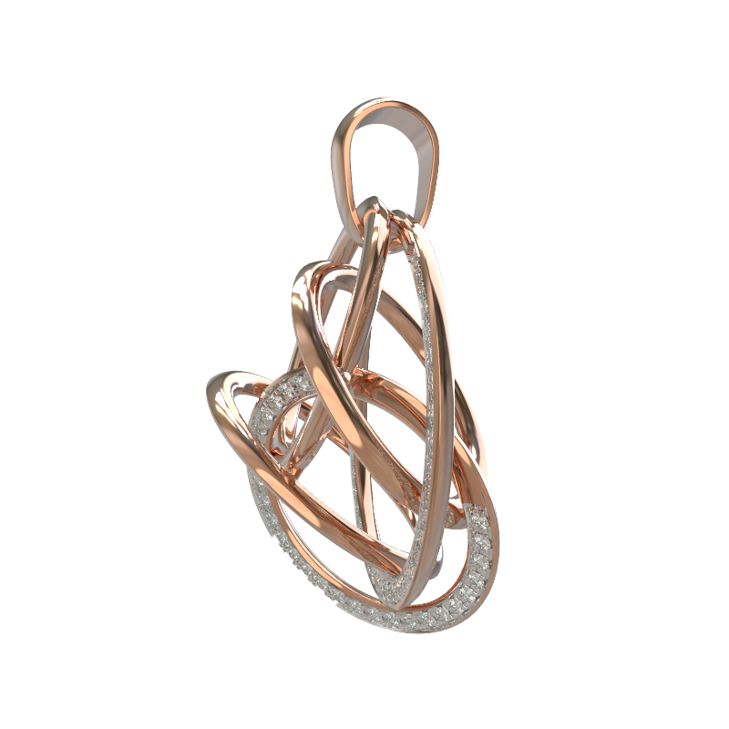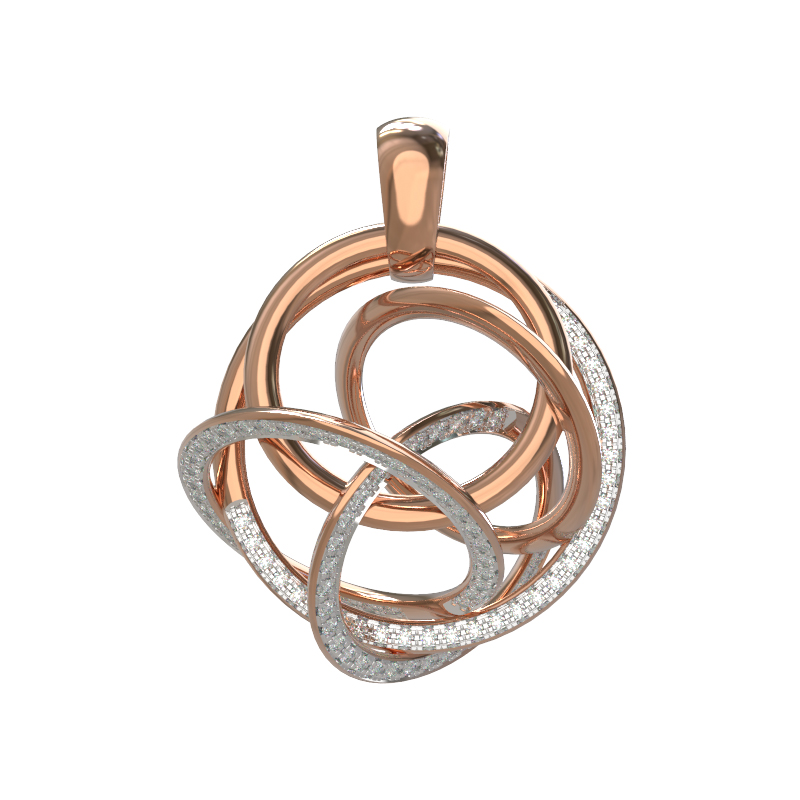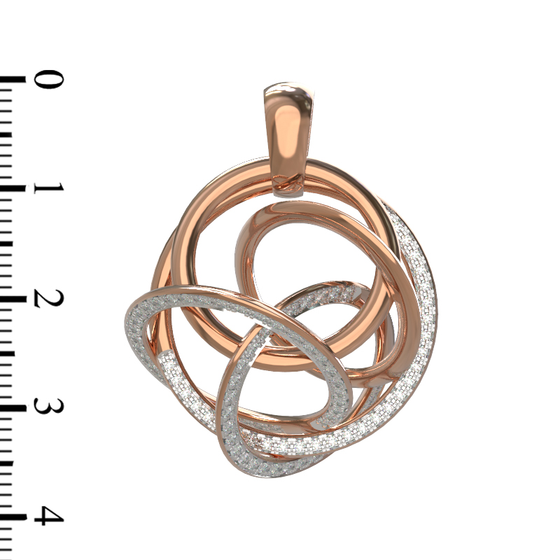 Особое сияние подвеске придают 94 бриллианта круглой огранки. Белый цвет вставок эффектно контрастирует с теплым оттенком красного золота, создавая игру света при каждом движении. Вставки расположены таким образом, чтобы подчеркнуть сложную геометрию формы, добавляя украшению роскоши и статусности. Это изделие станет великолепным выбором для тех, кто ценит лаконичность форм в сочетании с драгоценным блеском камней.