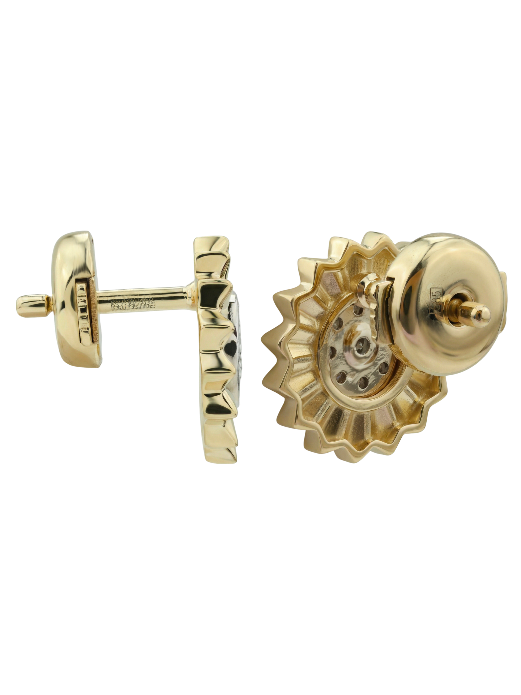 Серьги из лимонного золота 585 пробы из коллекции Vioretty — Napoli — это воплощение изысканности и утонченного стиля. Дизайн украшения выполнен в форме цветка, чьи лучистые лепестки из благородного лимонного золота создают эффект сияния, напоминающий теплое солнце. Центральная часть изделия инкрустирована 18 бриллиантами круглой формы с чистым белым цветом вставок, которые приковывают взгляд своим безупречным блеском.
