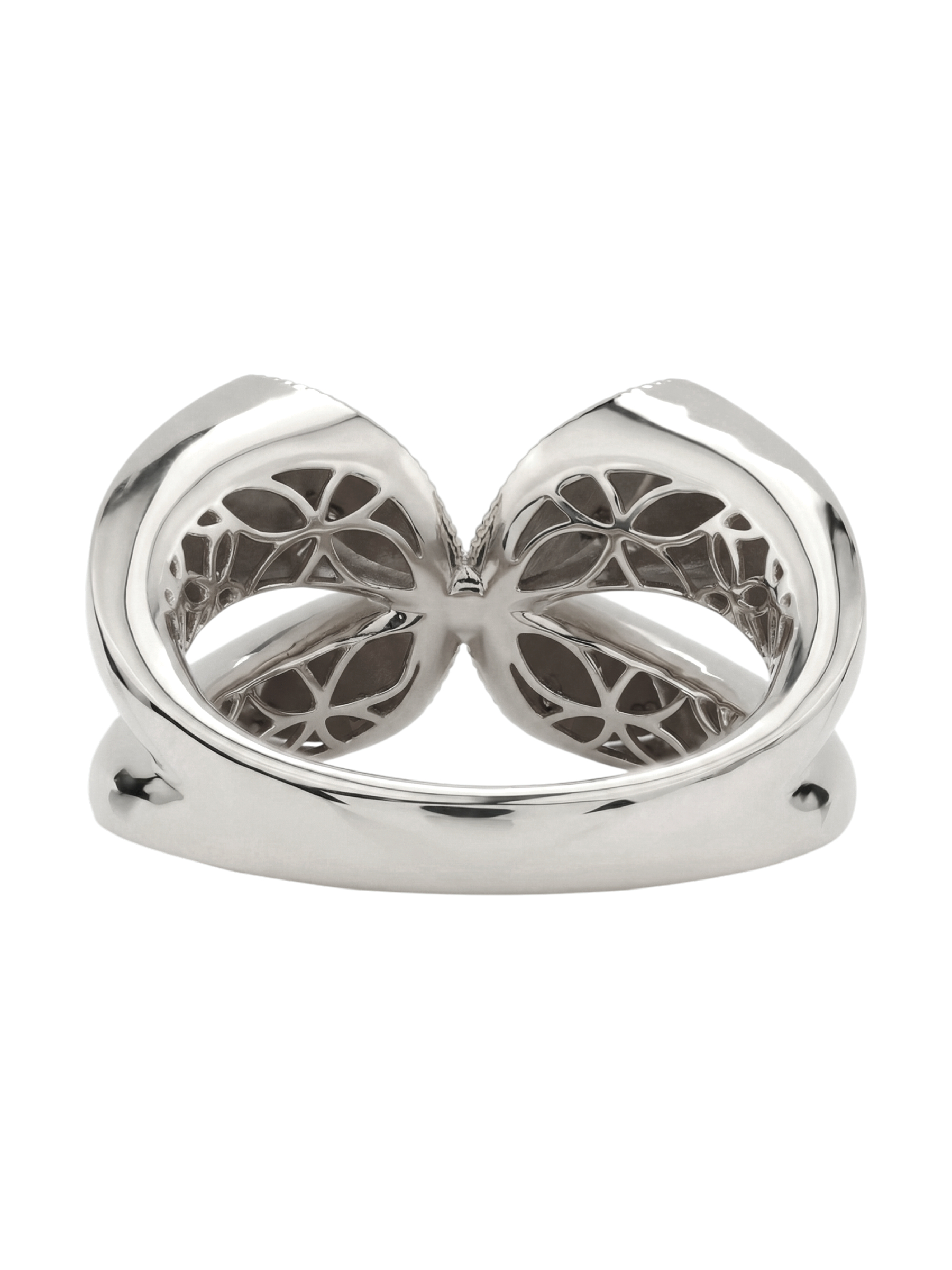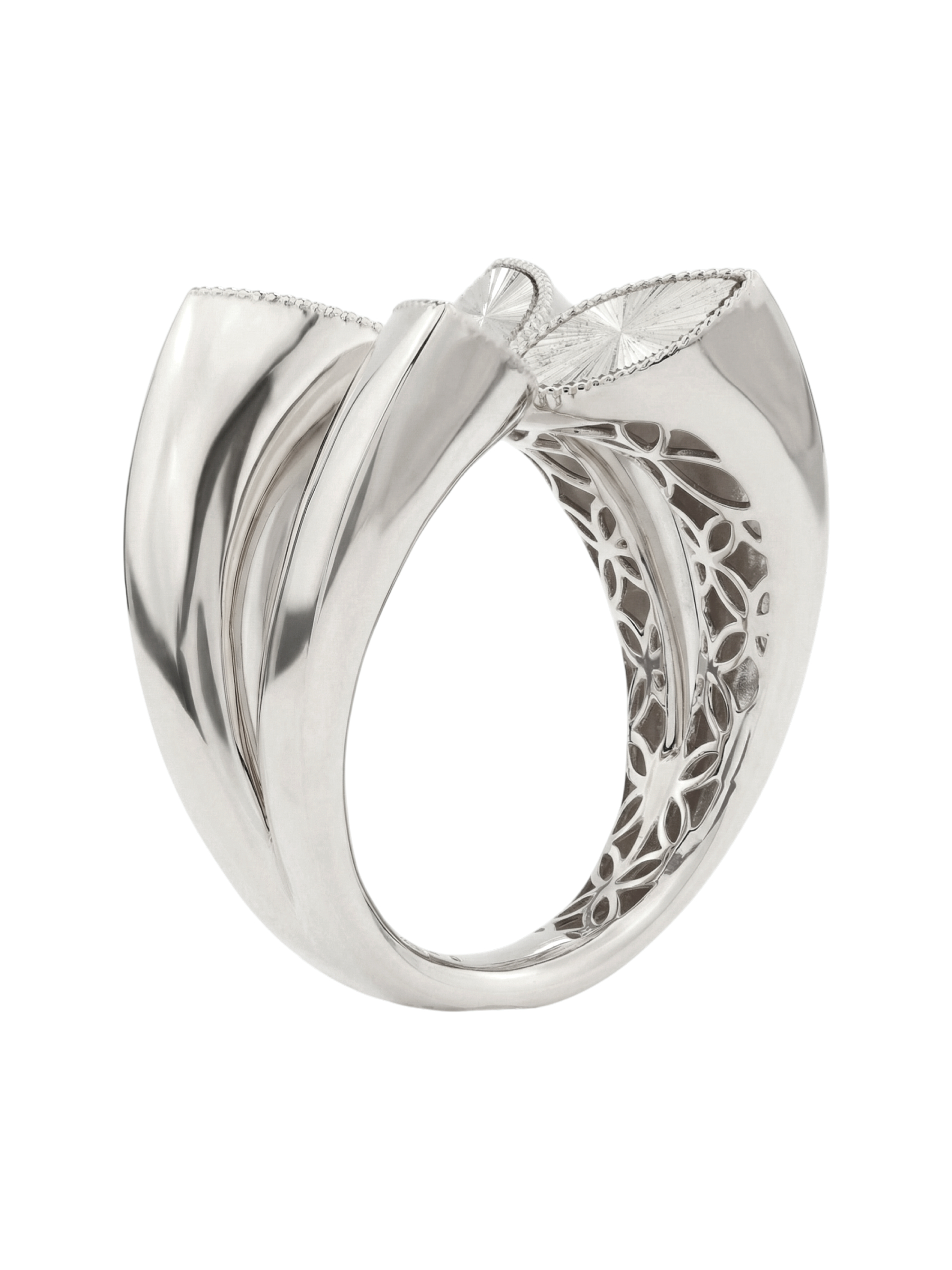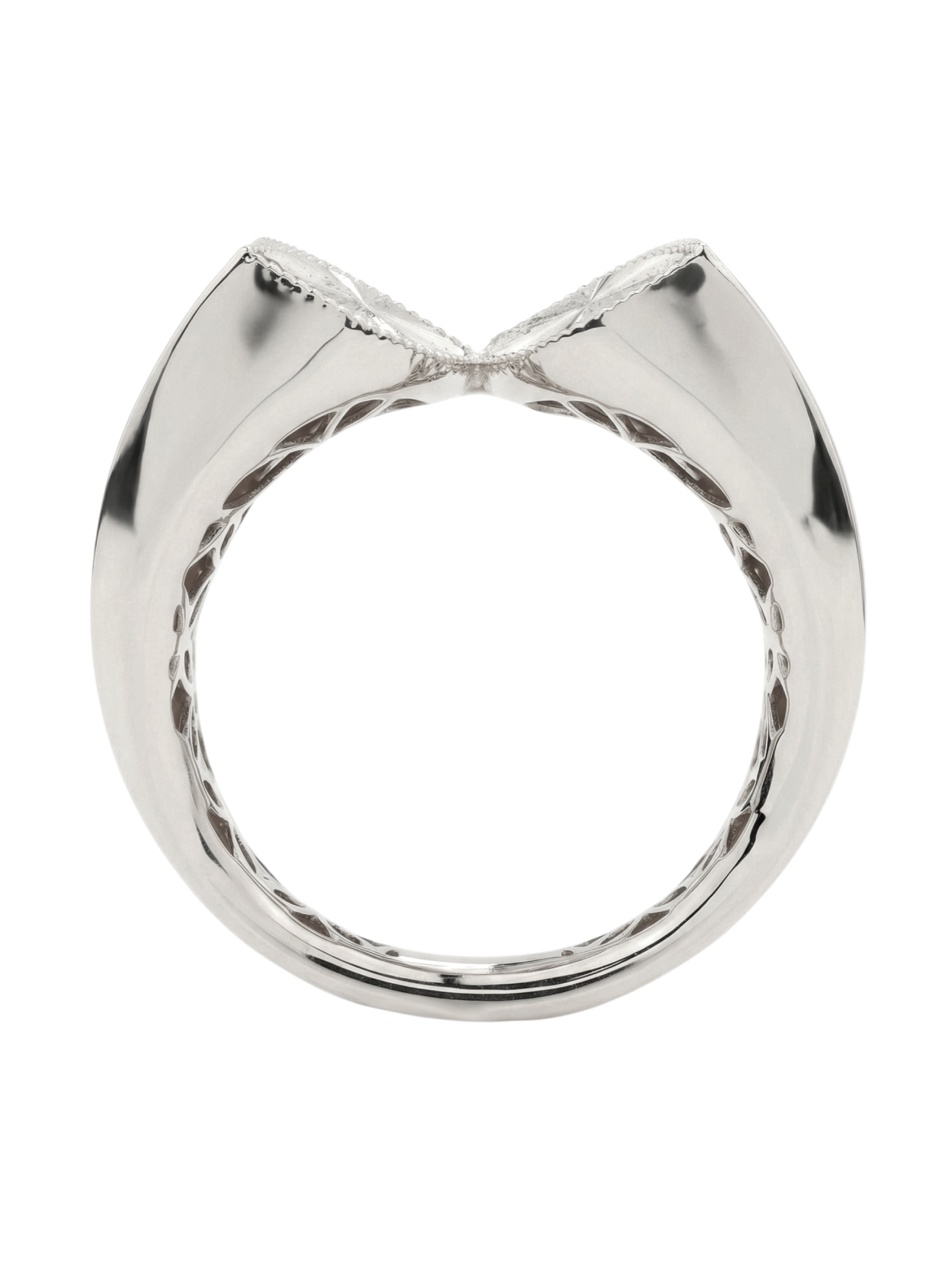 Это украшение универсально — оно органично впишется как в женский, так и в мужской гардероб, становясь стильным акцентом для любого случая. Холодный блеск белого золота придает изделию современный и статусный вид. Благодаря продуманной эргономике кольцо комфортно ощущается на пальце при ежедневном ношении. Внутренняя поверхность шинки также украшена декоративным сквозным узором, что говорит о высоком качестве исполнения изделия с обеих сторон.