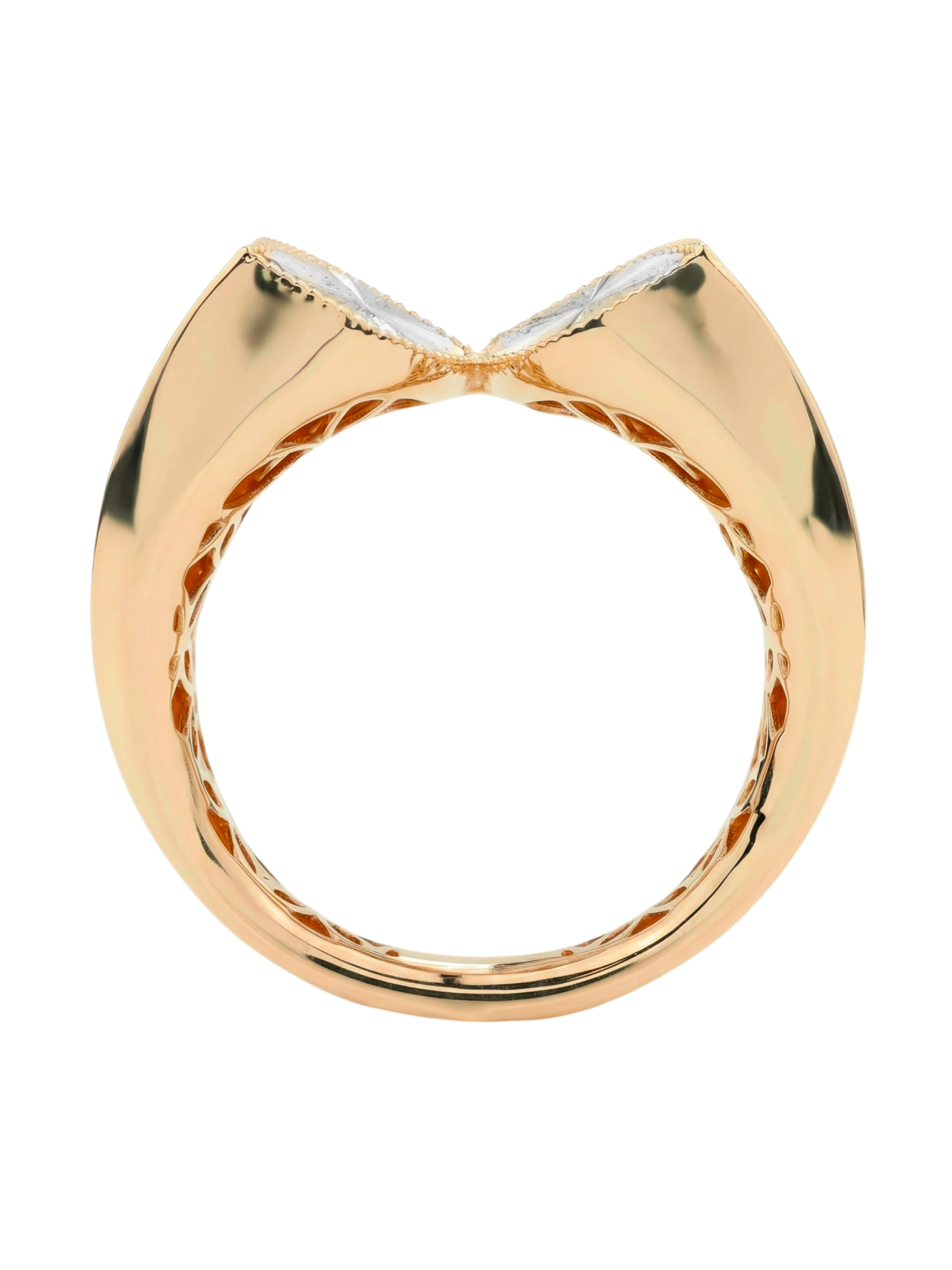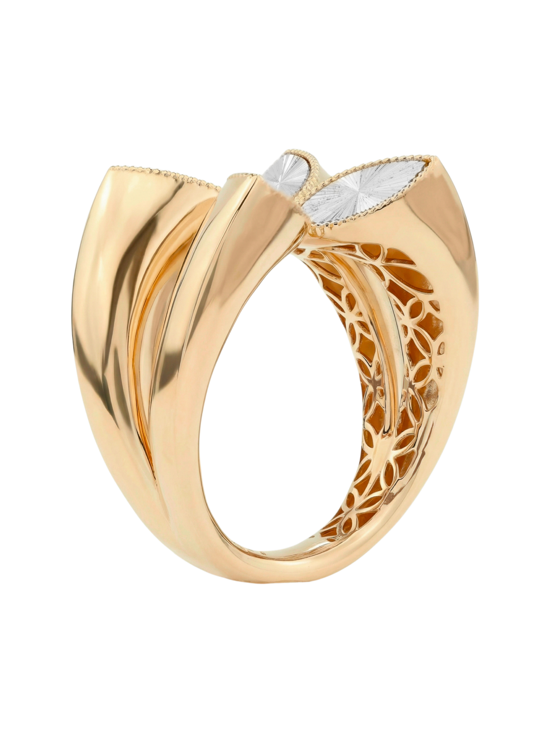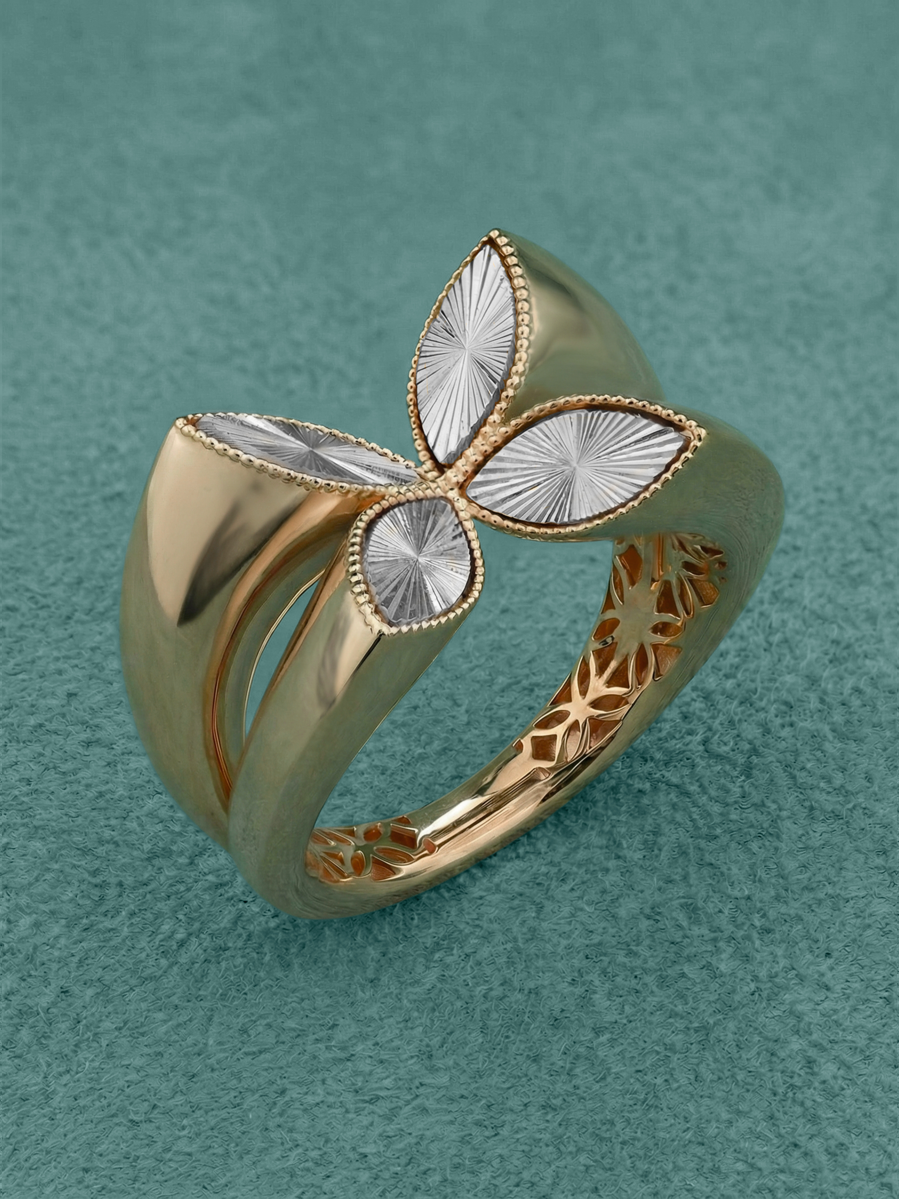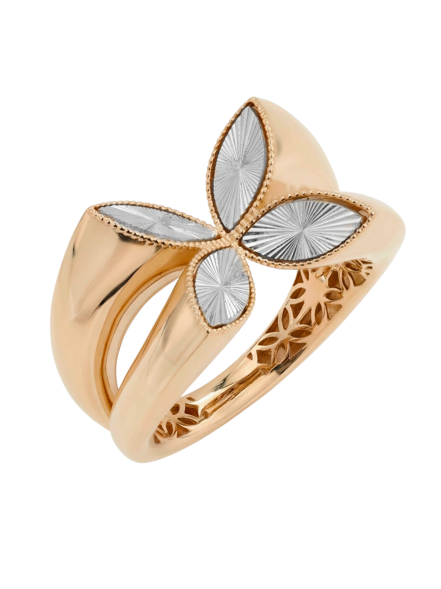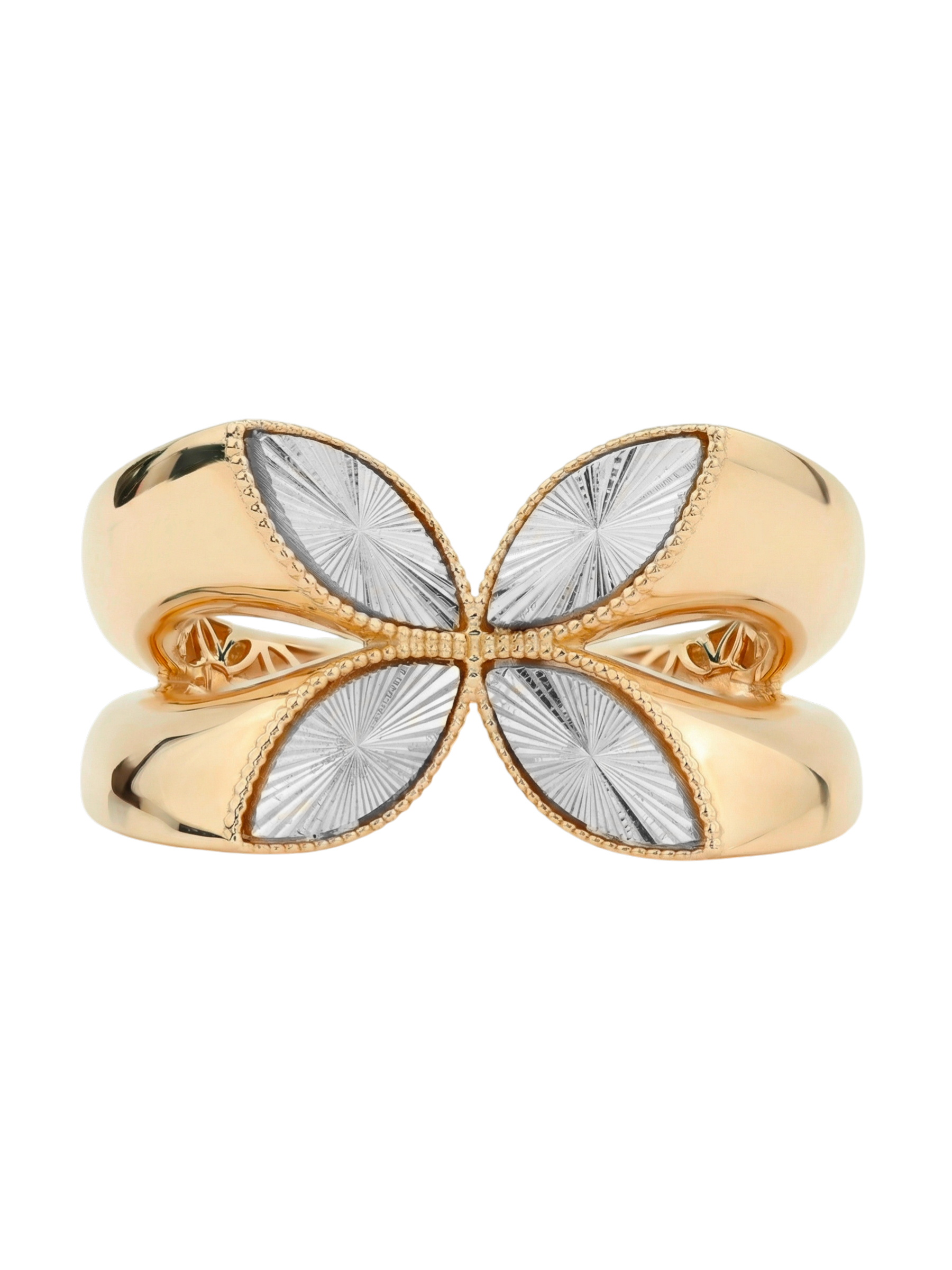 Элегантное кольцо из красного золота 585 пробы — это воплощение утонченного стиля и мастерства ювелиров. Данная модель, представленная в коллекции Vioretty — Farfalla, привлекает внимание своим необычным дизайном, вдохновленным образом клевера. Плавные, объемные линии золотой основы гармонично сочетаются с изящной декоративной вставкой, создавая выразительный акцент, который подчеркнет индивидуальность владельца.