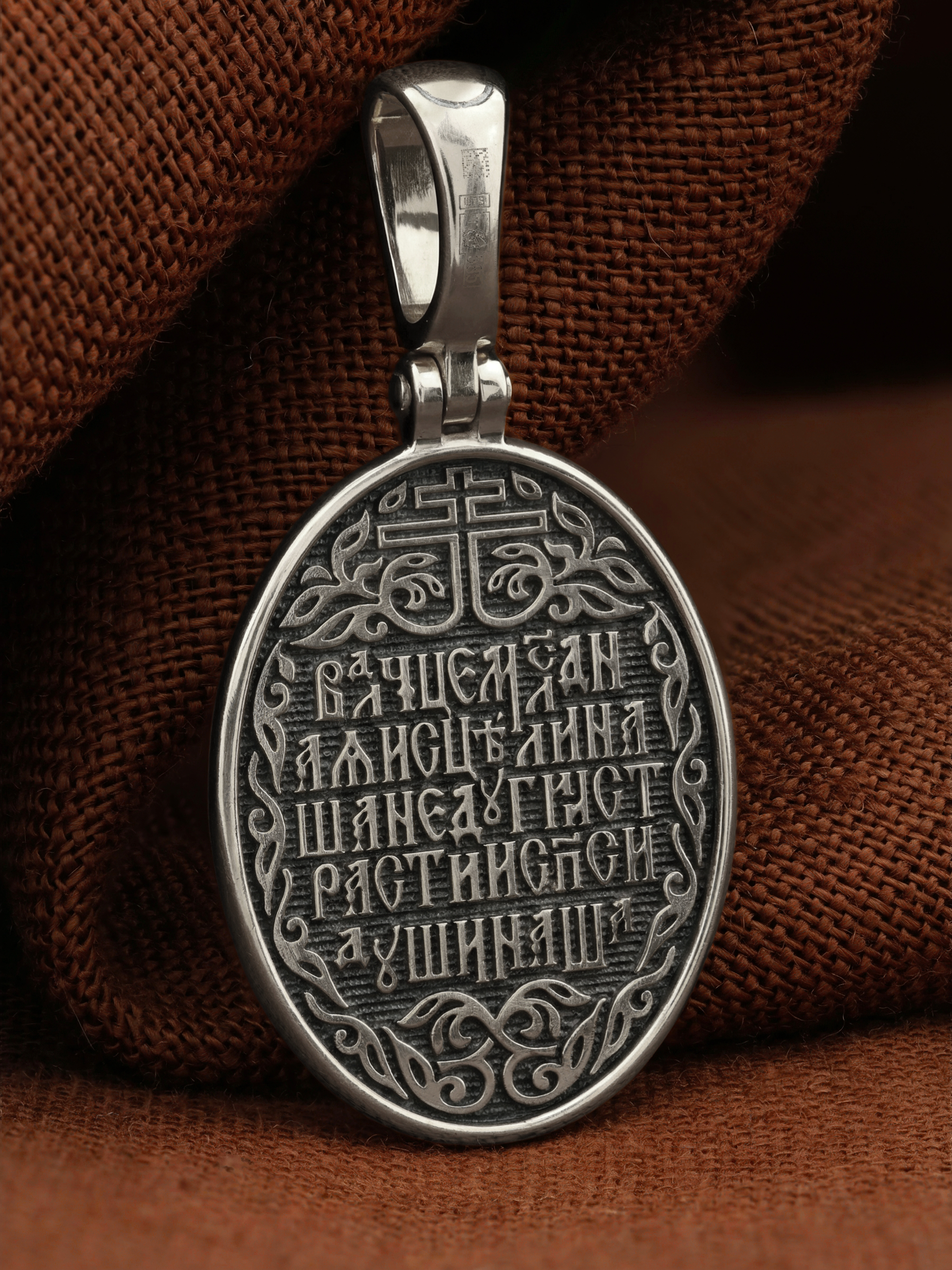 На лицевой части образка изображена икона Божией Матери «Неупиваемая чаша». Икона славится помощью в исцелении зависимостей, помогает людям обрести свободу от греховных страстей.