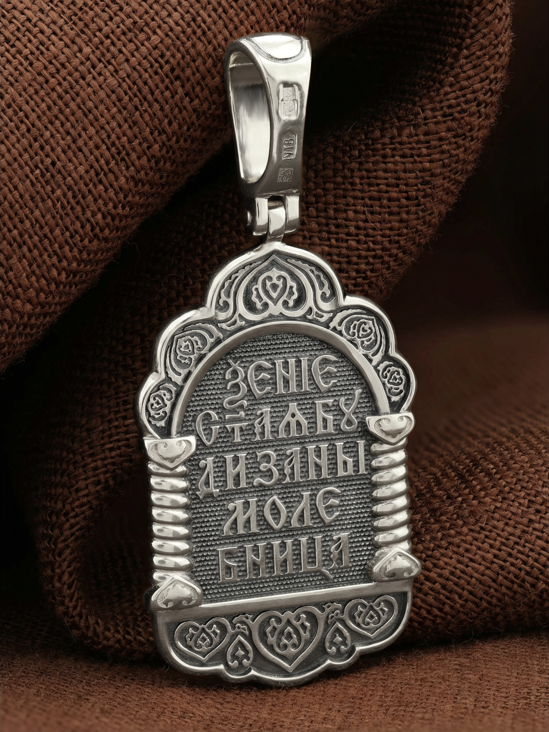 На оборотой стороне образка написана молитва: «Ксения святая, буди за нас молебница».