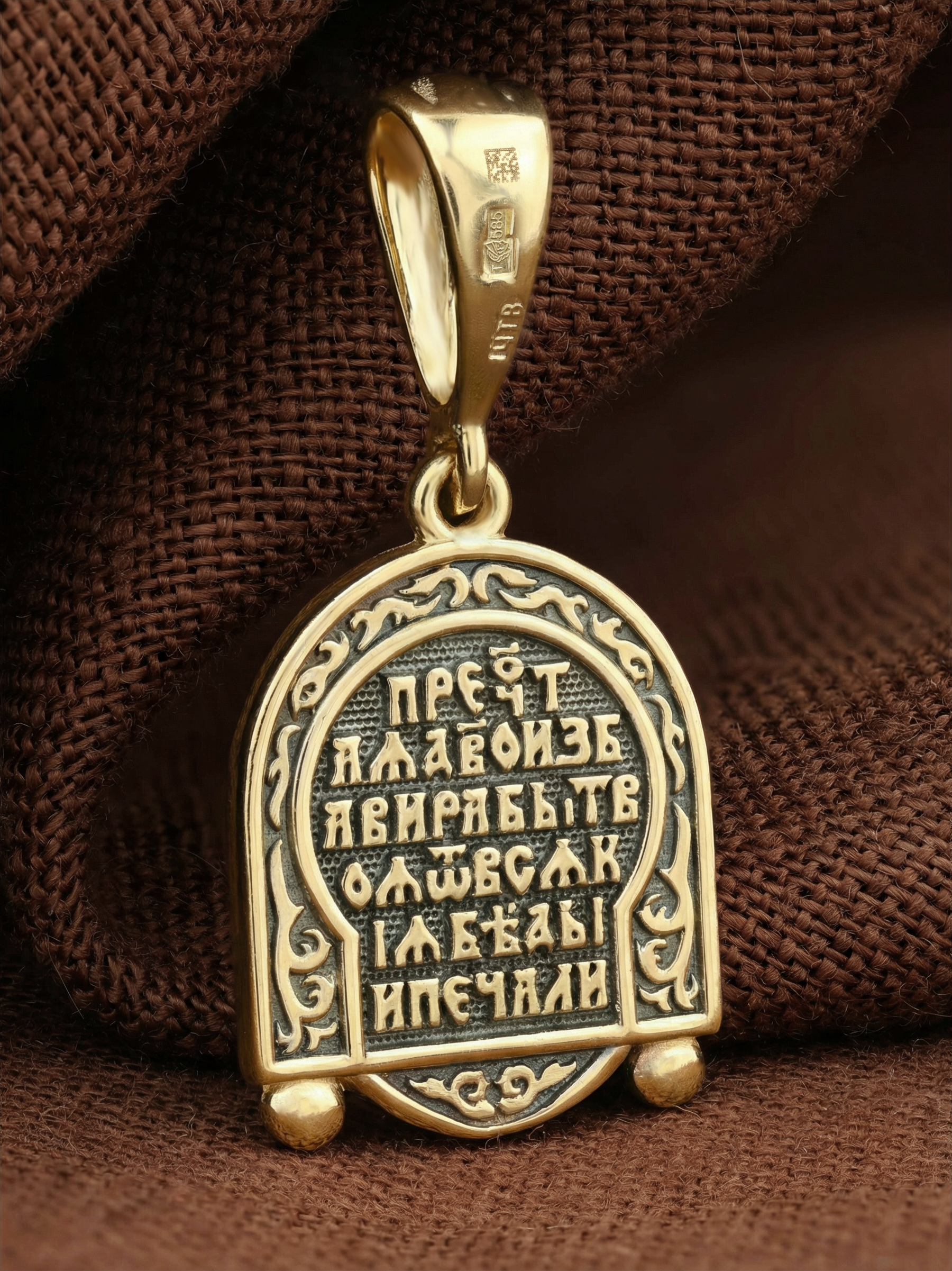 На лицевой стороне образка изображена икона Пресвятой Богородицы «Семистрельная» — одна из самых чудотворных икон на Руси. На протяжении многих веков христиане взывали к Царице Небесной через эту икону, если в стране начинались войны или мятежи.