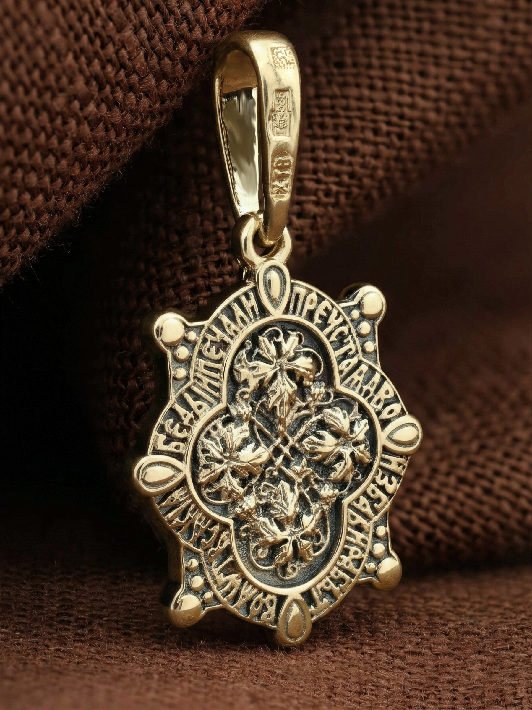 На лицевой стороне образка изображена икона Пресвятой Богородицы «Семистрельная» — одна из самых чудотворных икон на Руси. На протяжении многих веков христиане взывали к Царице Небесной через эту икону, если в стране начинались войны или мятежи.