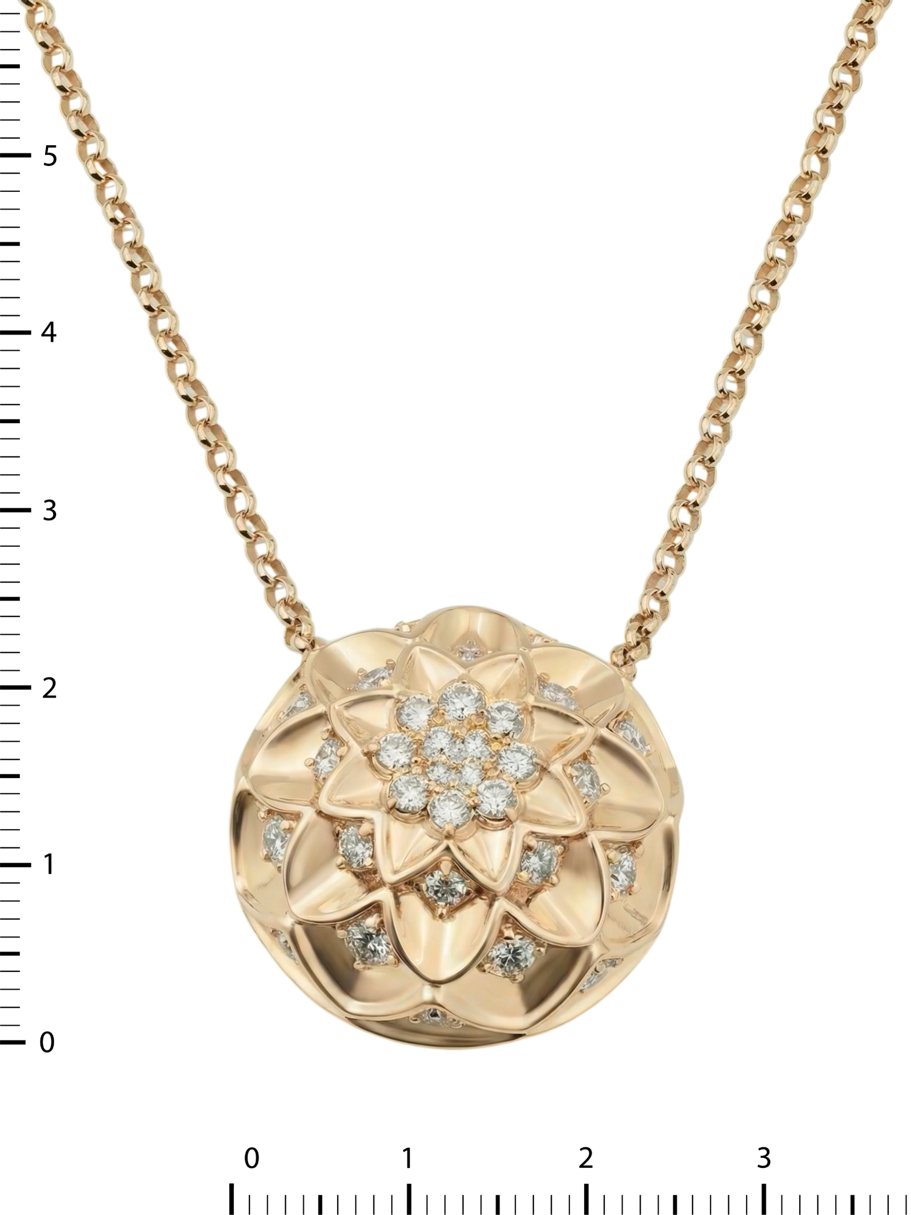 Роскошь изделия подчеркивают 42 бриллианта круглой огранки. Белый цвет вставок эффектно контрастирует с красным золотом, наполняя украшение внутренним сиянием и притягательным блеском при каждом движении. Точность закрепки камней позволяет бриллиантам раскрыть всю свою игру света, делая колье центральным акцентом вашего образа.