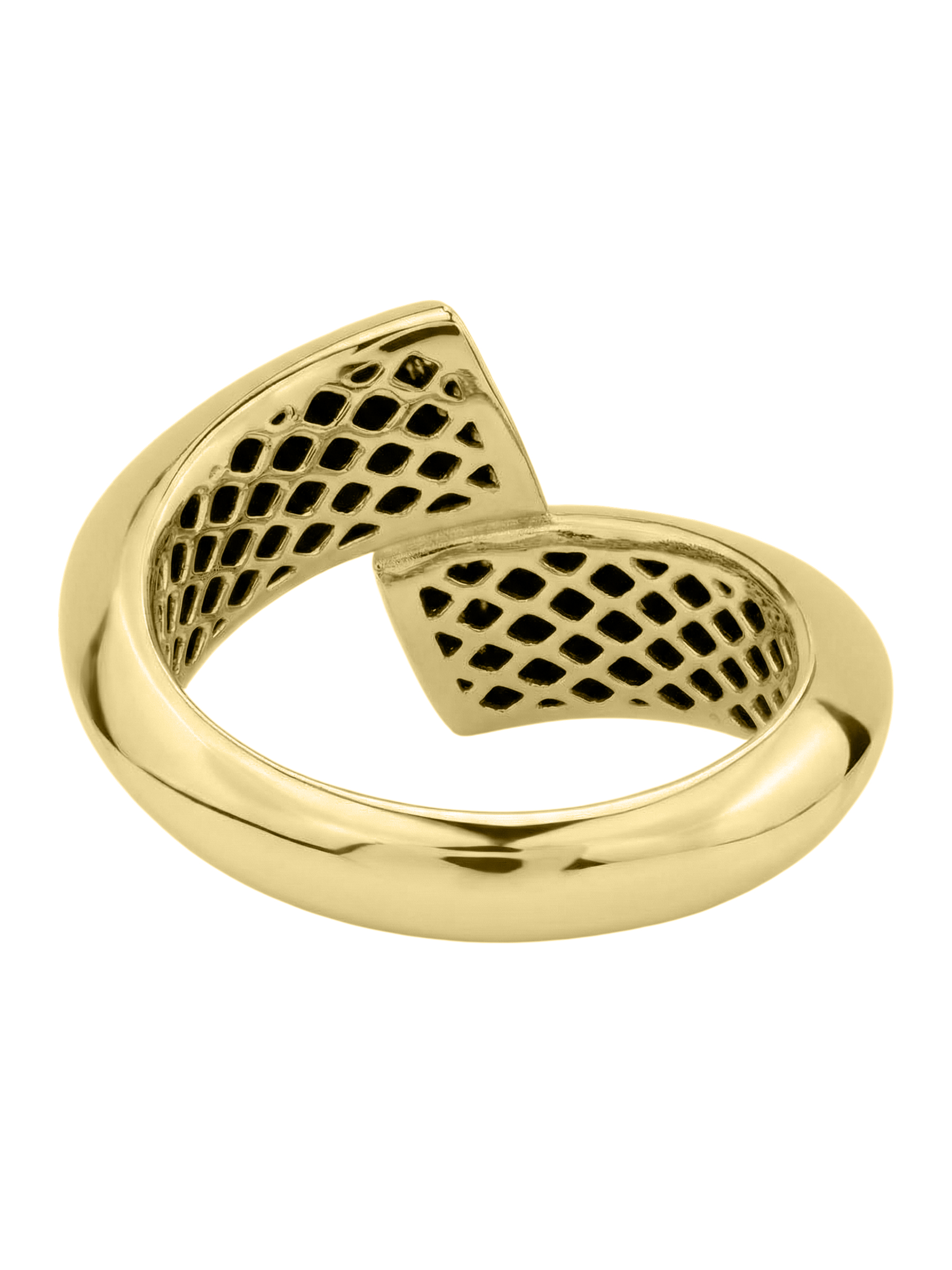 Изысканное кольцо из лимонного золота 585 пробы станет ярким акцентом вашего образа, подчеркивая безупречный вкус. Ювелирное изделие выполнено в утонченном итальянском стиле, где классическая роскошь встречается с современной геометрией. Центральный элемент украшения привлекает внимание своей необычной формой, инкрустированной двадцатью бриллиантами круглой огранки. Белые вставки эффектно контрастируют с насыщенным оттенком лимонного золота, создавая гармоничную композицию.