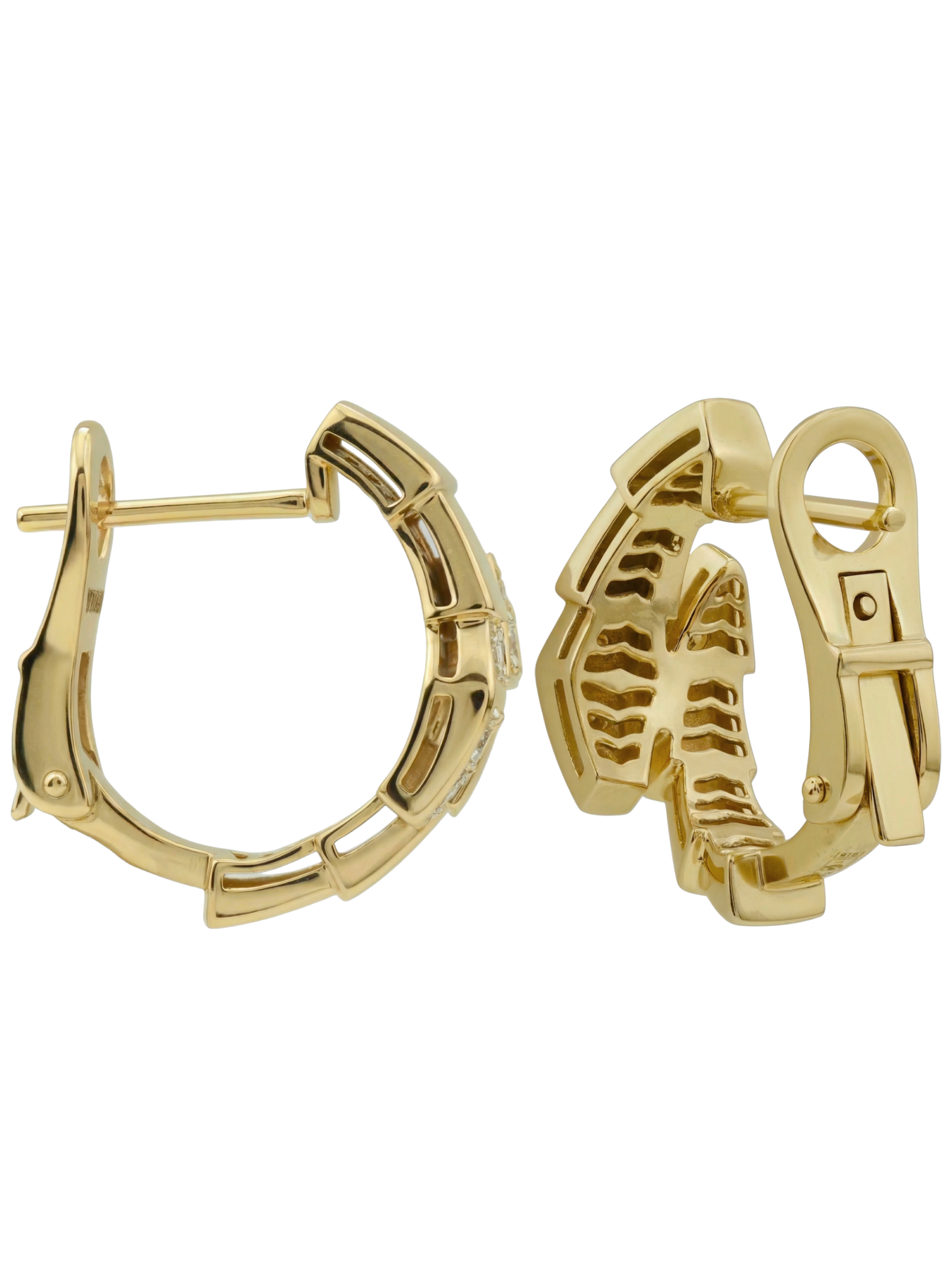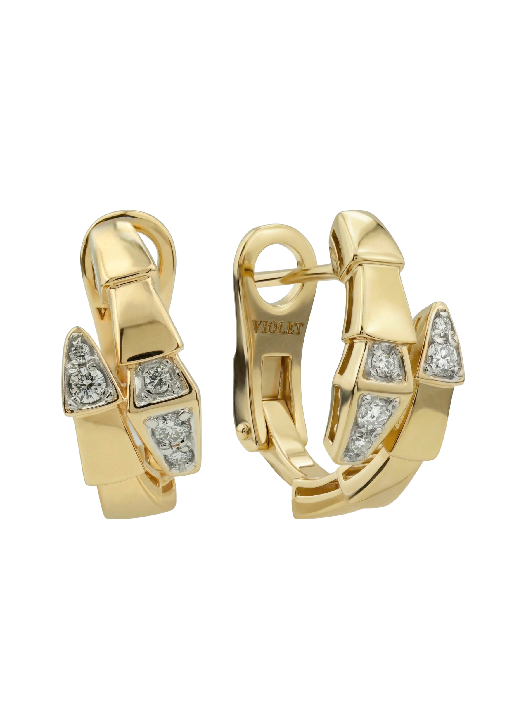 Лицевая часть изделия украшена 10 сияющими бриллиантами, которые гармонично дополняют сложную форму металла. Круглая форма вставок белого цвета создает безупречную игру света, превращая серьги в притягательный аксессуар. Тщательная проработка деталей и динамичные линии делают эти серьги из лимонного золота с бриллиантами универсальным выбором как для женщин, так и для мужчин, предпочитающих подчеркнуто статусные и необычные украшения.