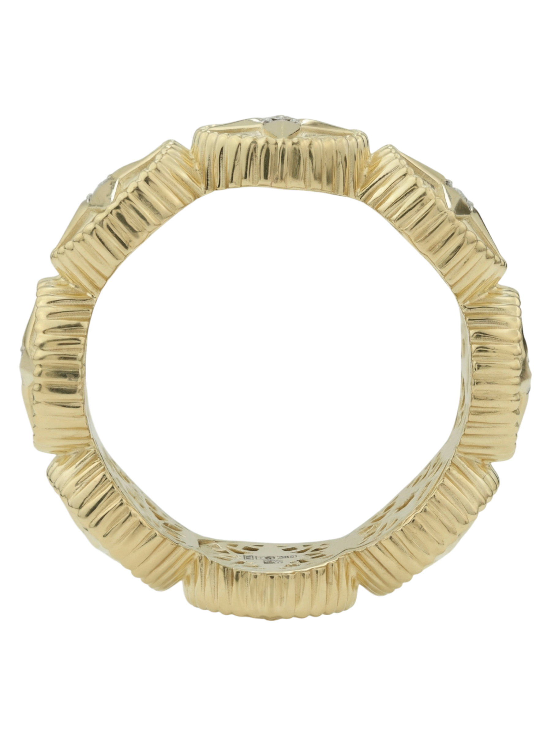 Это кольцо станет безупречным акцентом в вашей коллекции украшений. Благодаря продуманному дизайну и высокому качеству исполнения оно идеально подходит для создания стильных комплектов. Доступно для заказа в широкой размерной сетке, включающей размеры от 16 до 20, что позволяет подобрать оптимальный вариант для комфортной посадки. Позвольте себе роскошь, вдохновленную сиянием звезд, в исполнении из лимонного золота.