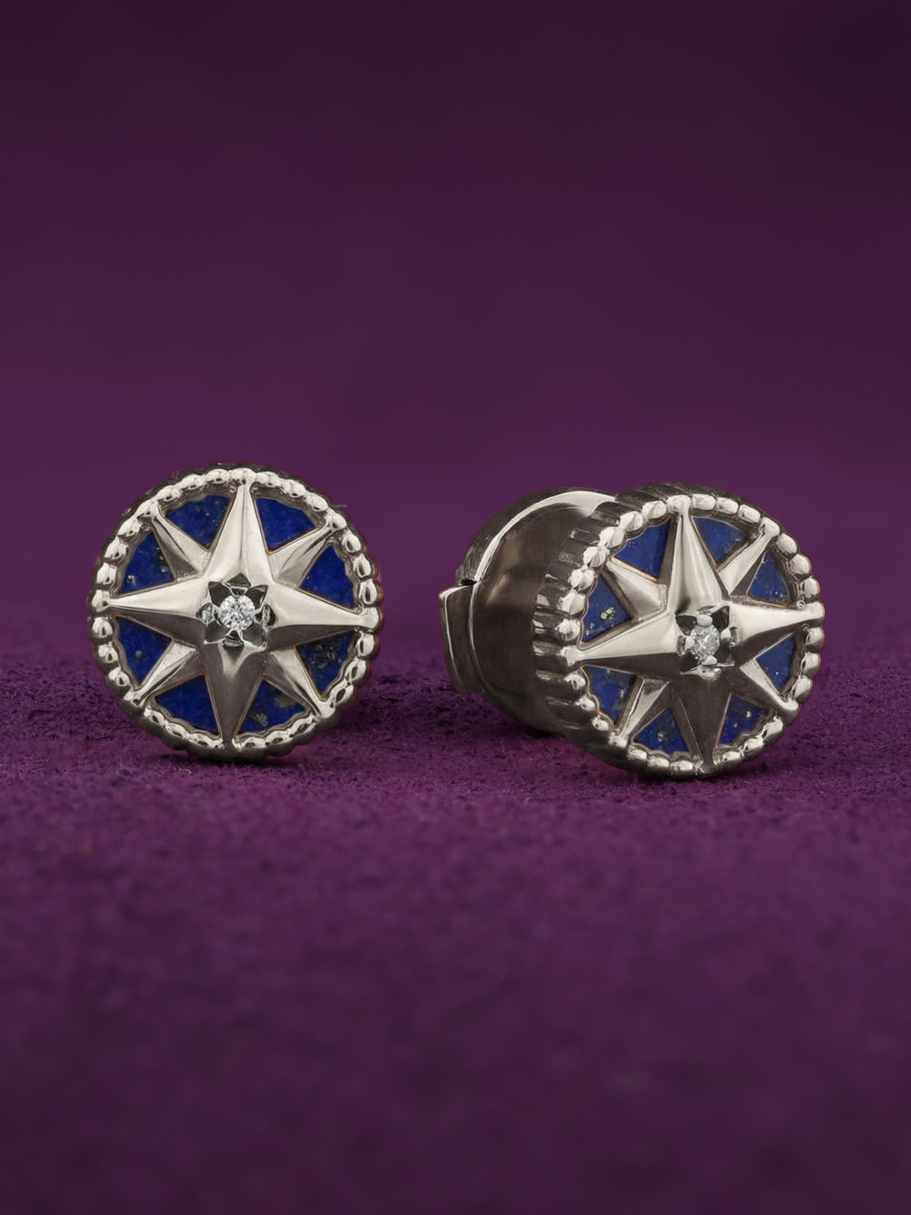 Представляем вашему вниманию изысканные серьги из белого золота 585 пробы, выполненные в оригинальном дизайне звезды. Это украшение из коллекции De Luxe — Звёзды — Бриллианты станет безупречным дополнением как женского, так и мужского образа, подчеркивая статус и тонкий вкус своего обладателя. Глубокий, насыщенный синий цвет лазурита гармонично контрастирует с холодным блеском металла, создавая притягательный визуальный акцент.