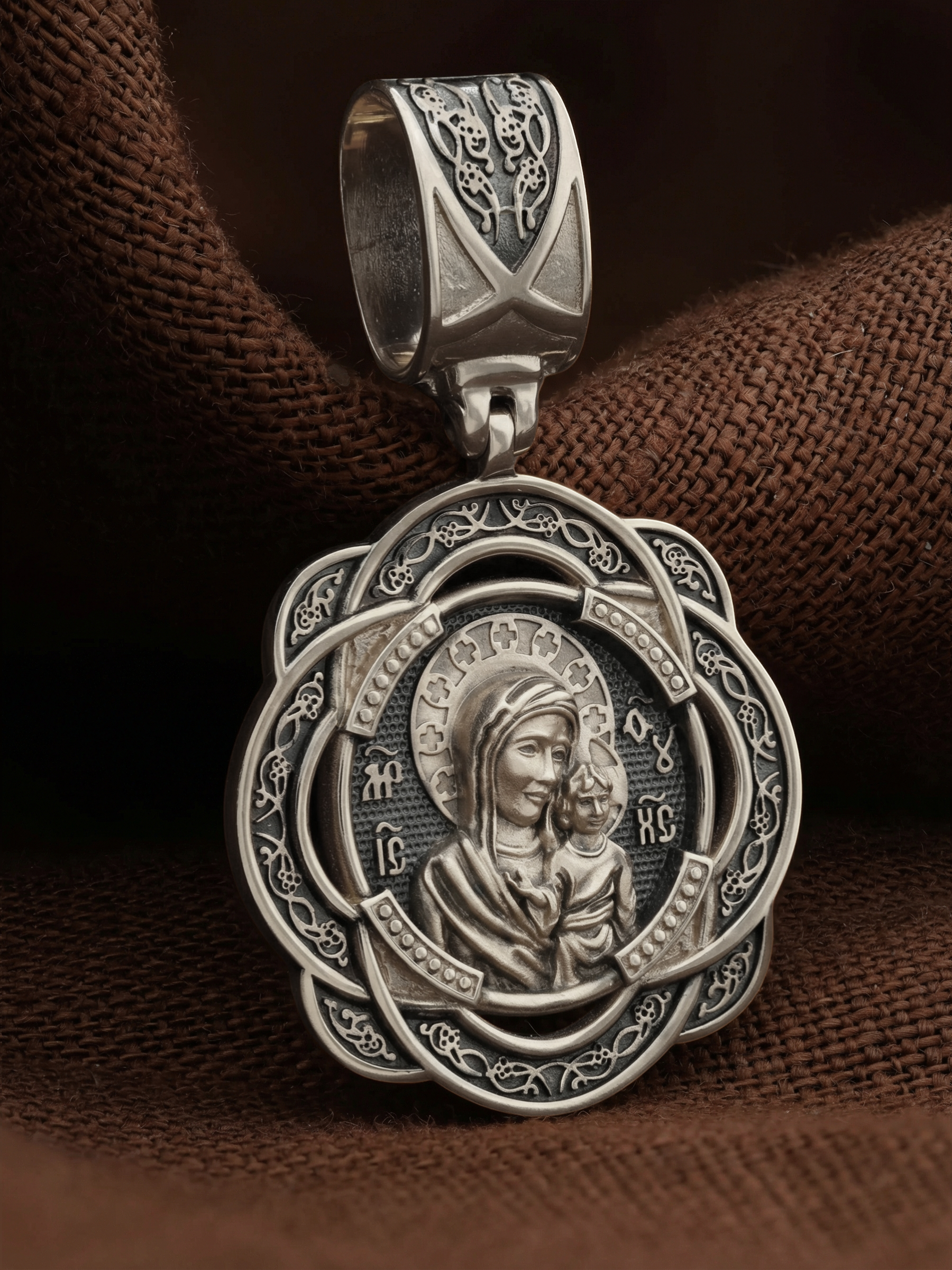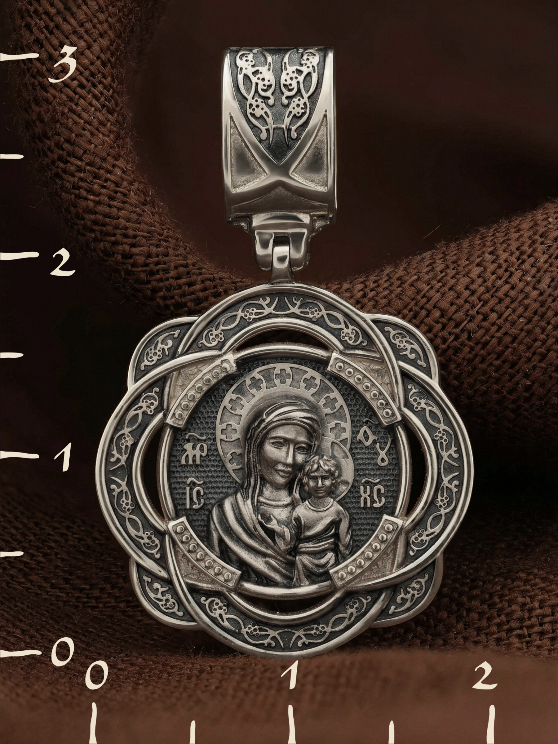 На лицевой части образка изображена Казанская икона Пресвятой Богородицы — одна из самых почитаемых в России чудотворных икон Богородицы. Богословское значение Казанской иконы — указать верующим истинный Путь к спасению, который лежит через Христа. Только Божия Матерь имеет настолько сильное дерзновение к Спасителю, что может ходатайствовать перед Ним за всех верных. Именно этот образ дарится новой повенчанной паре, как хранитель очага и семейная реликвия. Молитва перед Казанской иконой Божьей Матери помогает во всех сложных случаях жизни, в болезнях, во всех печалях, невзгодах, скорбях. Уникальная история появления, чудеса, случившиеся по молитвам православных людей возле образа — все это делает Казанскую Богородицу особенной, среди тысяч других икон.