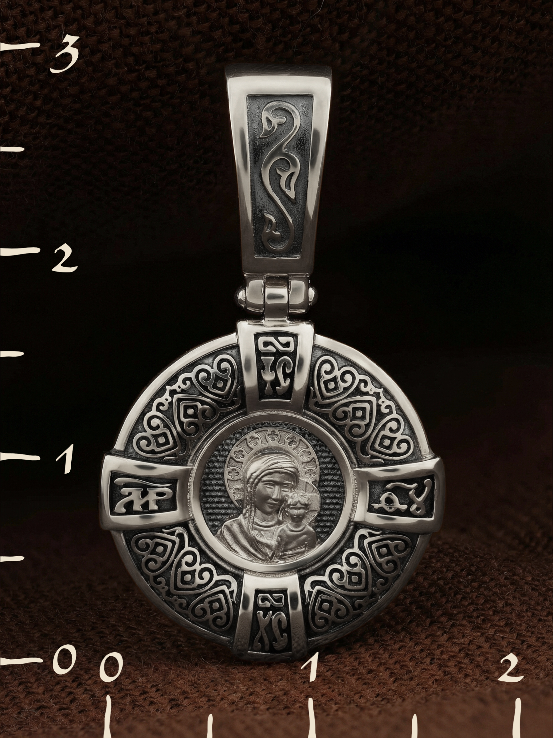 На лицевой части образка изображена Казанская икона Пресвятой Богородицы — одна из самых почитаемых в России чудотворных икон Богородицы. Богословское значение Казанской иконы — указать верующим истинный Путь к спасению, который лежит через Христа. Только Божия Матерь имеет настолько сильное дерзновение к Спасителю, что может ходатайствовать перед Ним за всех верных. Именно этот образ дарится новой повенчанной паре, как хранитель очага и семейная реликвия. Молитва перед Казанской иконой Божьей Матери помогает во всех сложных случаях жизни, в болезнях, во всех печалях, невзгодах, скорбях. Уникальная история появления, чудеса, случившиеся по молитвам православных людей возле образа — все это делает Казанскую Богородицу особенной, среди тысяч других икон.