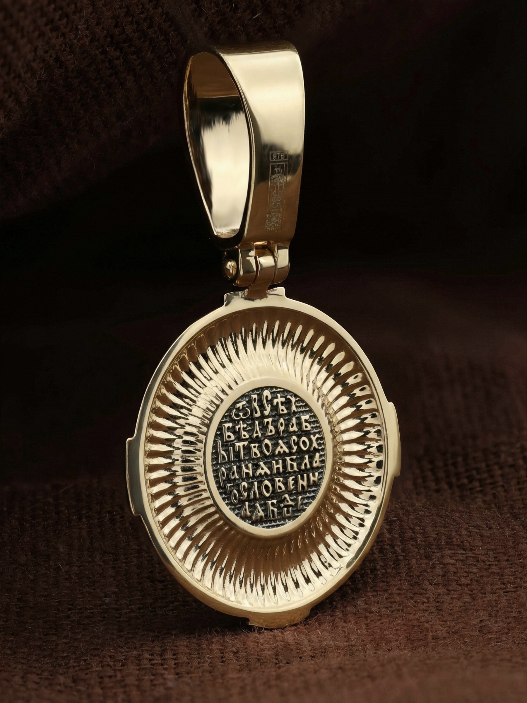 На лицевой части образка изображена Казанская икона Пресвятой Богородицы — одна из самых почитаемых в России чудотворных икон Богородицы. Богословское значение Казанской иконы — указать верующим истинный Путь к спасению, который лежит через Христа. Только Божия Матерь имеет настолько сильное дерзновение к Спасителю, что может ходатайствовать перед Ним за всех верных. Именно этот образ дарится новой повенчанной паре, как хранитель очага и семейная реликвия. Молитва перед Казанской иконой Божьей Матери помогает во всех сложных случаях жизни, в болезнях, во всех печалях, невзгодах, скорбях. Уникальная история появления, чудеса, случившиеся по молитвам православных людей возле образа — все это делает Казанскую Богородицу особенной, среди тысяч других икон.