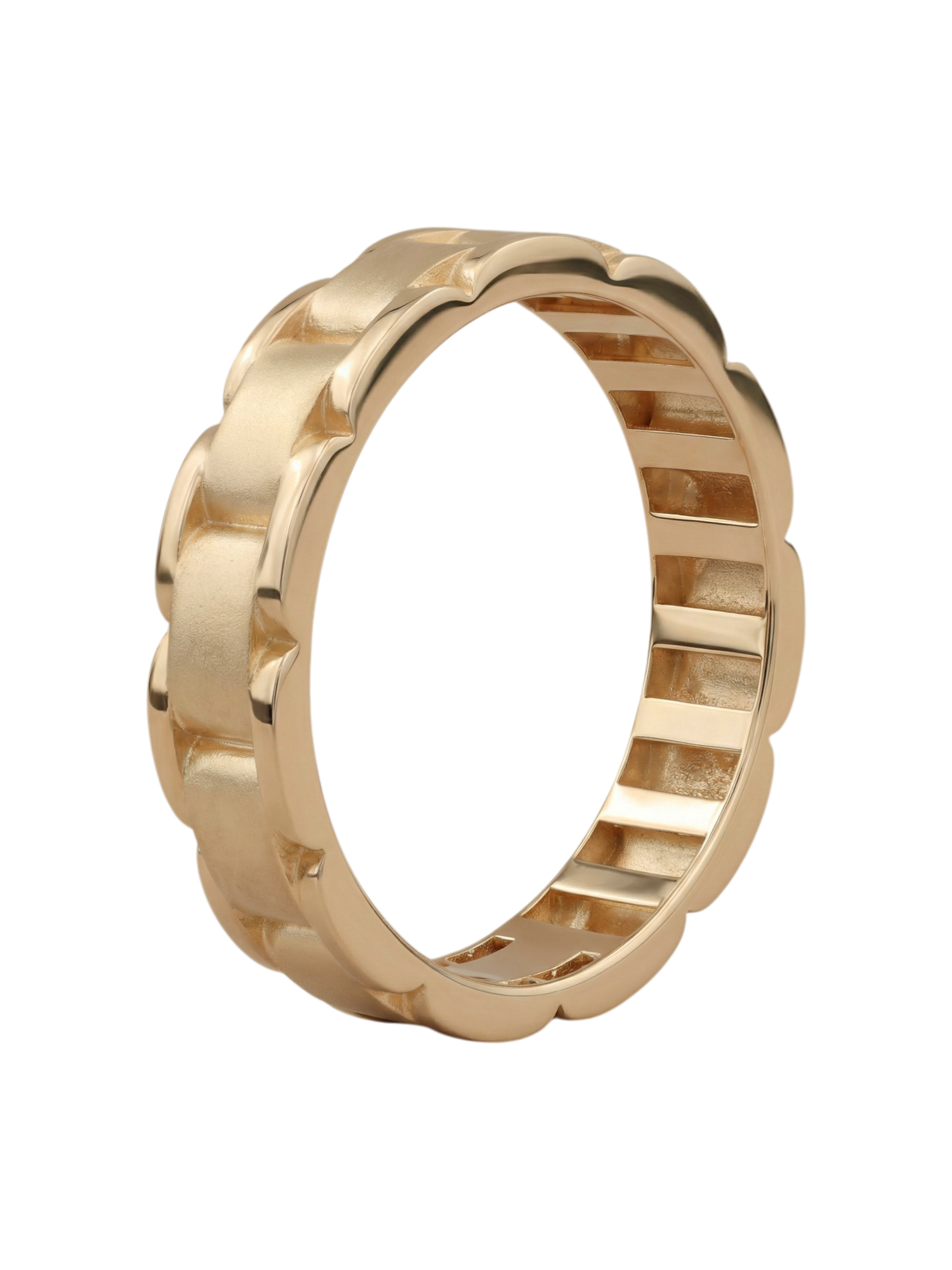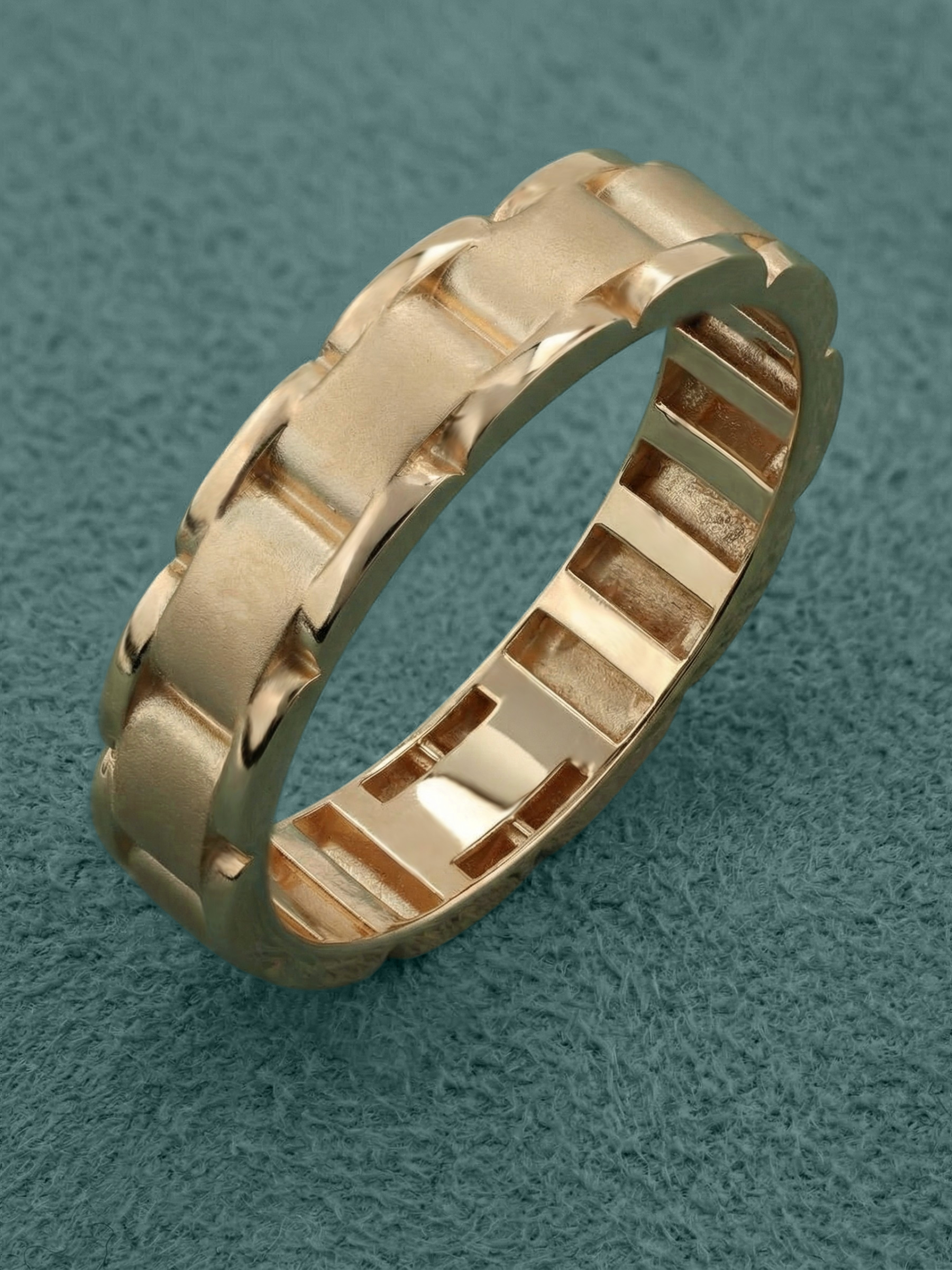 Особая фактура поверхности, сочетающая матовые и глянцевые участки, придает кольцу глубину и характер, а благородный красный оттенок золота делает его универсальным аксессуаром для любого образа. Это кольцо создано для ценителей долговечных украшений, которые сочетают в себе эстетику и комфорт при ежедневном ношении. Изделие предлагается в широком размерном ряду: от 15 до 23 размера, включая промежуточные варианты, что позволяет подобрать идеальную посадку для каждого.