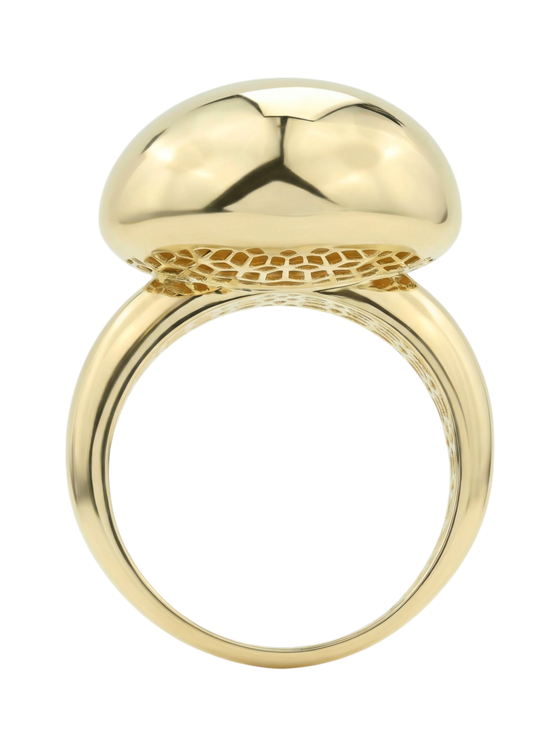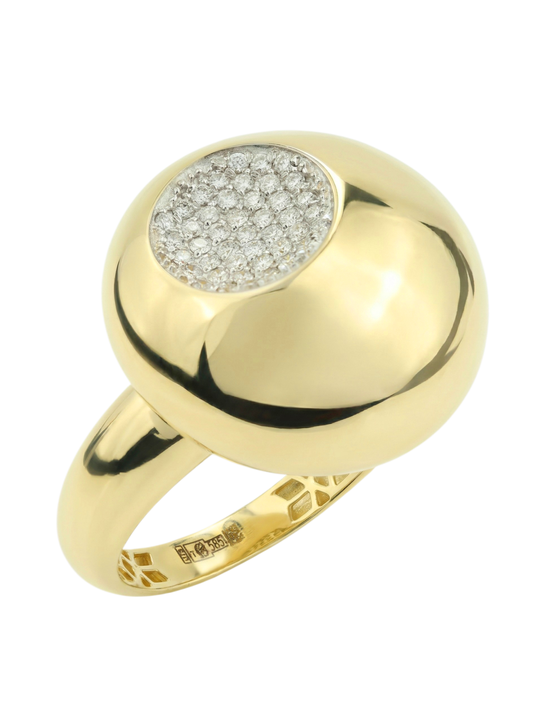 Откройте для себя смелый и современный дизайн с кольцом из лимонного золота 585 пробы из коллекции Vioretty — Palle. Это украшение создано для тех, кто ценит архитектурную лаконичность и благородный блеск драгоценных металлов. Центральным элементом дизайна является массивная, идеально гладкая форма, напоминающая сферу, которая привлекает внимание своей безупречной полировкой.
