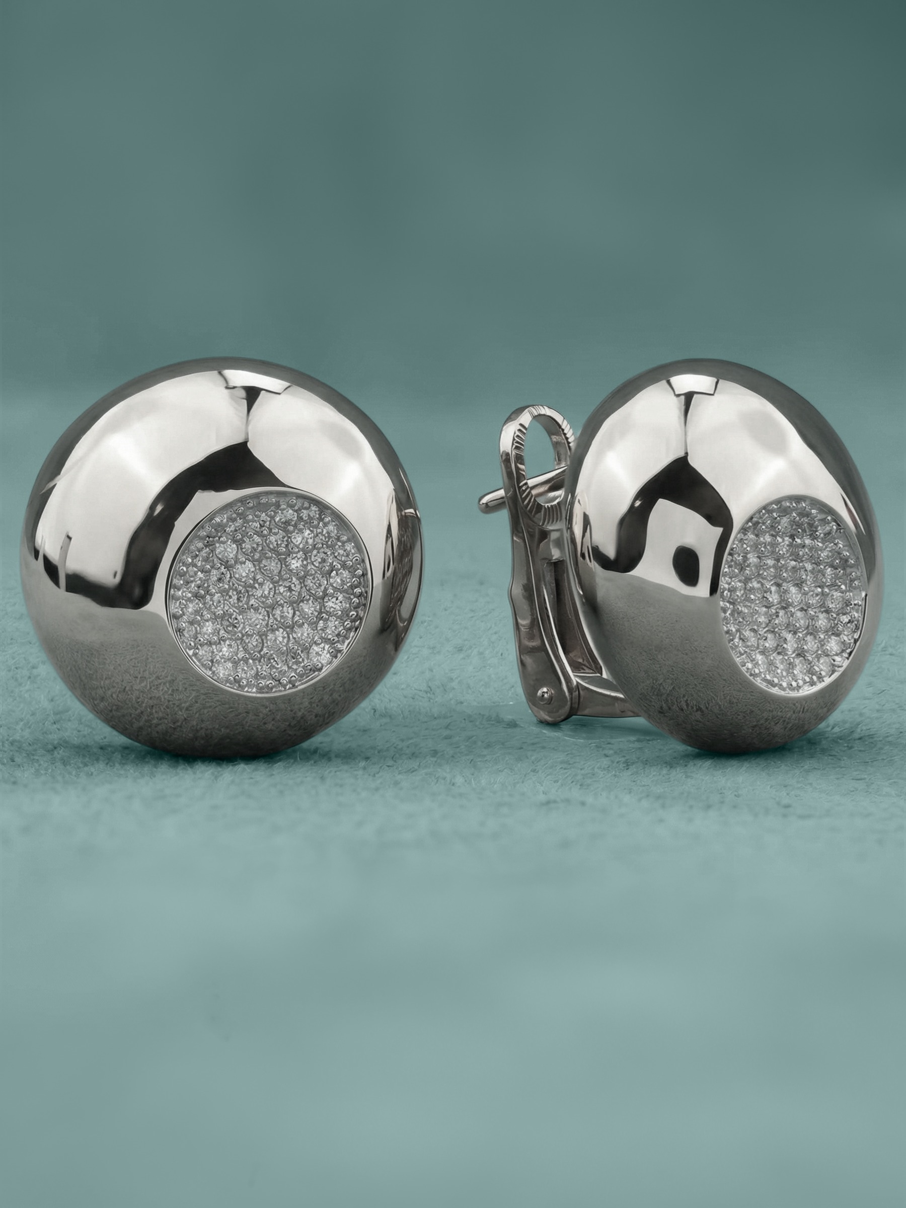 Центральным акцентом украшения выступает изысканная вставка, состоящая из 86 бриллиантов круглой формы. Белоснежные камни создают невероятную игру света, добавляя изделию яркости и выразительности. Белый цвет вставок идеально сочетается с холодным оттенком белого золота, формируя стильный и завершенный дизайн. Эти серьги созданы для тех, кто ценит эстетику минимализма и высокое качество ювелирного искусства.