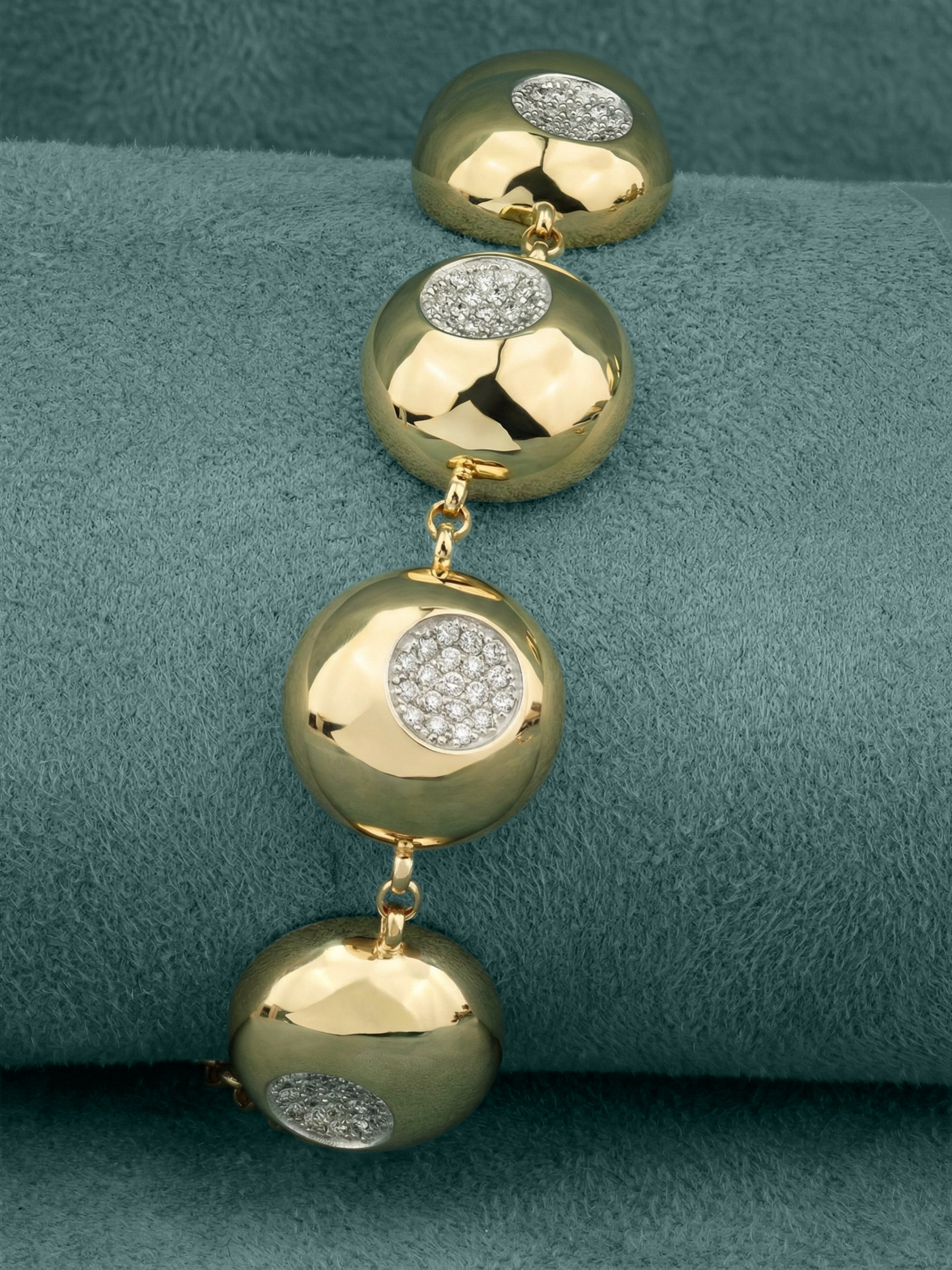 Роскошный браслет из лимонного золота 585 пробы станет центральным элементом вашего образа, подчеркивая статус и безупречный вкус. Ювелирное изделие из коллекции Vioretty — Palle привлекает внимание своим необычным дизайном: крупные объемные звенья сферической формы создают динамичный и современный силуэт. Использование лимонного золота придает украшению теплый, благородный отблеск, который выгодно контрастирует с сиянием драгоценных вставок.