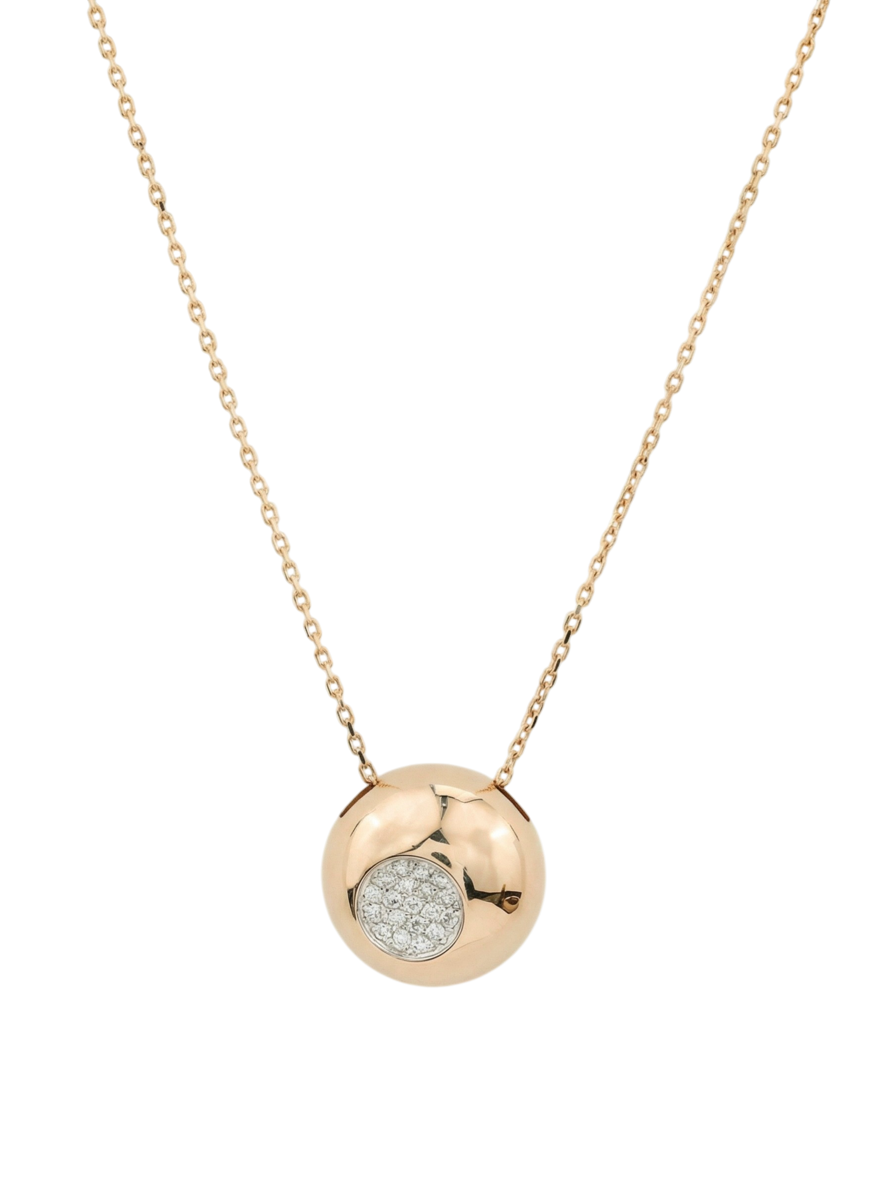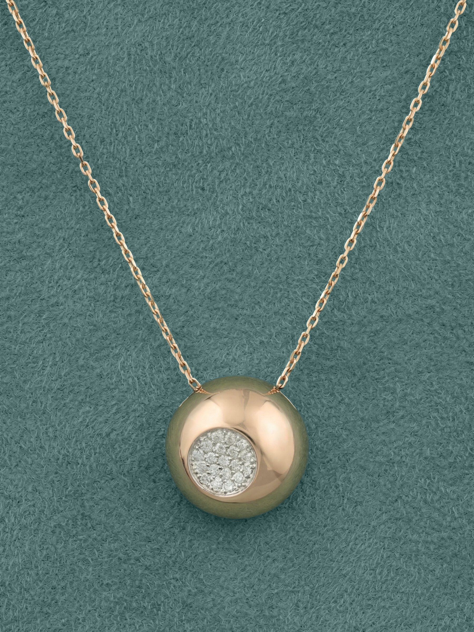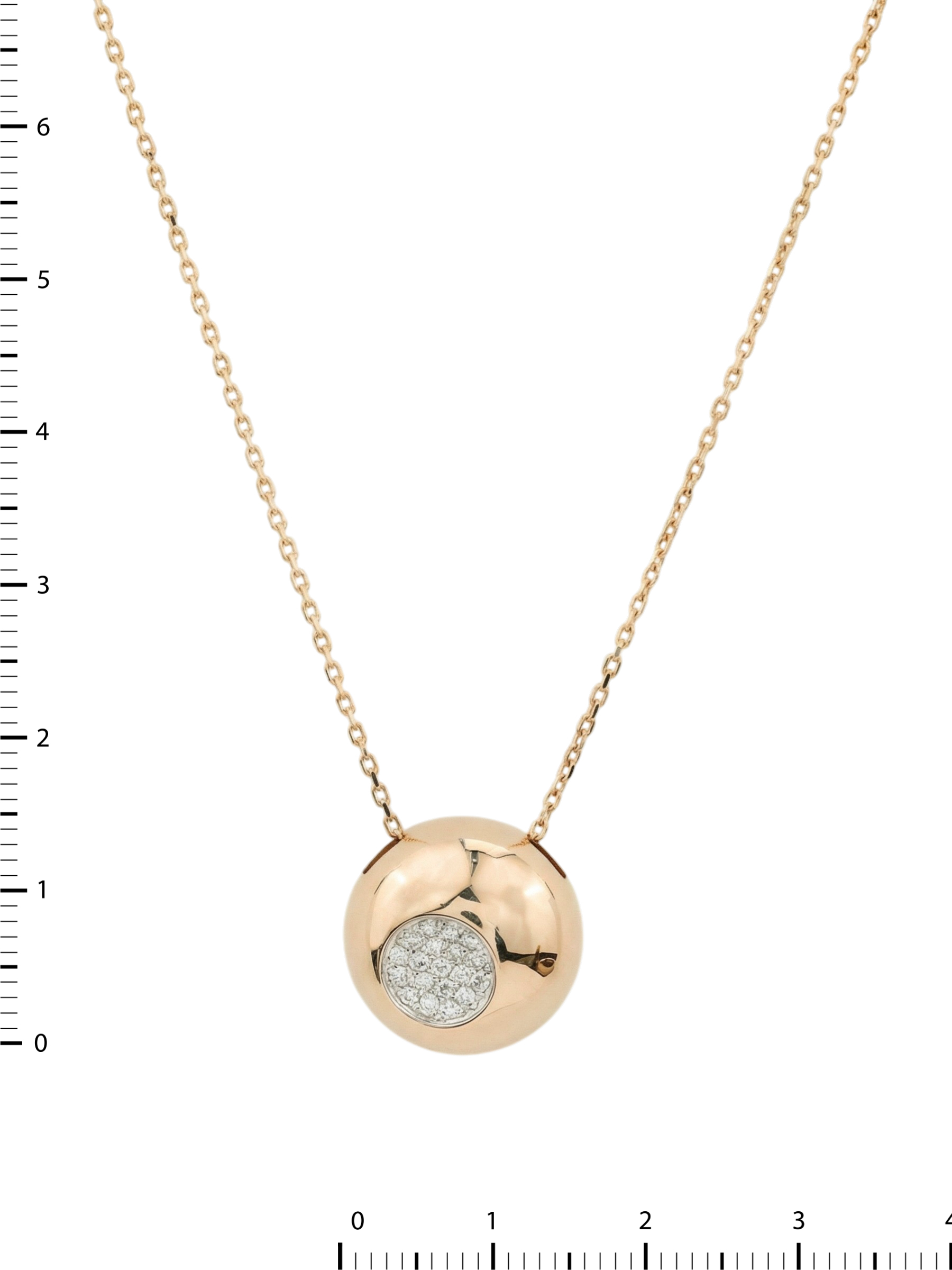 Колье из красного золота 585 пробы из коллекции Vioretty — Palle станет безупречным акцентом вашего образа. Это ювелирное изделие, сочетающее в себе минимализм и роскошь, выполнено в форме изящного шара из теплого красного золота. Гладкая, полированная поверхность металла идеально гармонирует с инкрустацией, привлекая внимание к деталям.