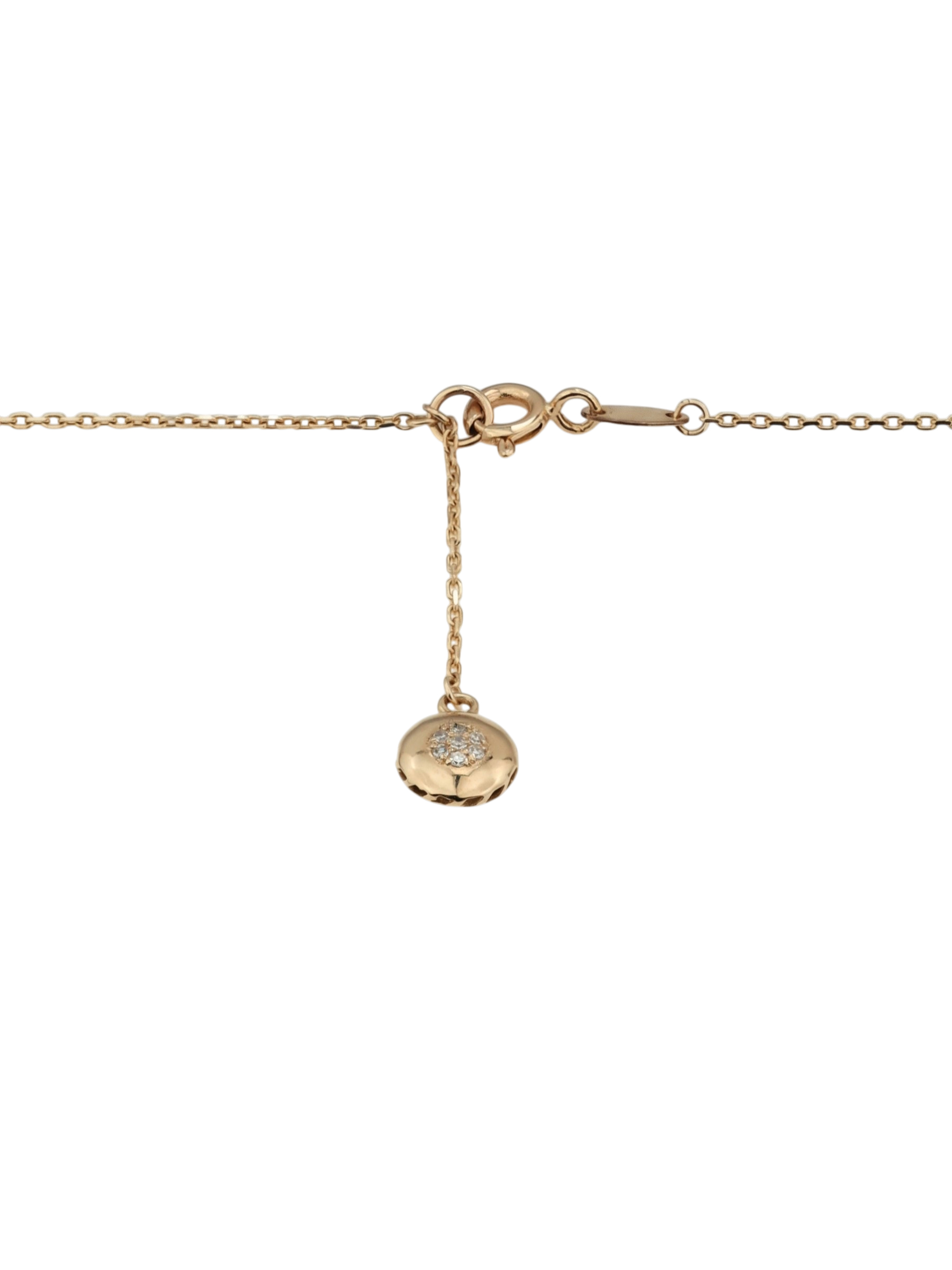 Центральным элементом композиции стали 33 бриллианта круглой огранки. Белый цвет вставок создает эффектный контраст с насыщенным оттенком золота, придавая украшению особое сияние при каждом движении. Точность исполнения и выверенный дизайн делают это колье универсальным дополнением как для женского, так и для мужского гардероба.
