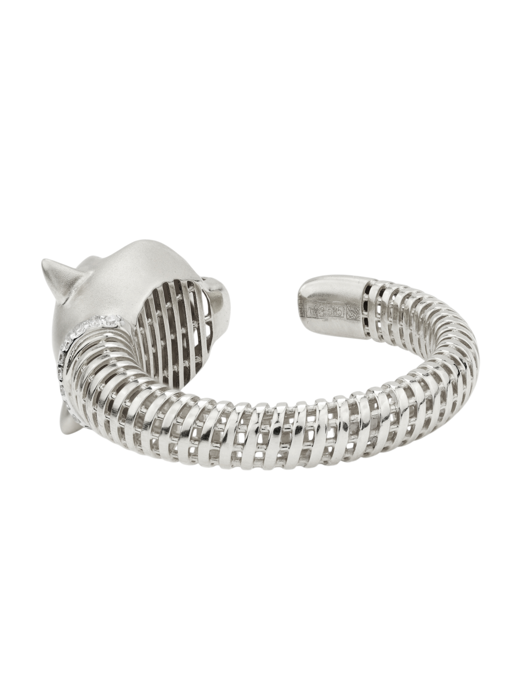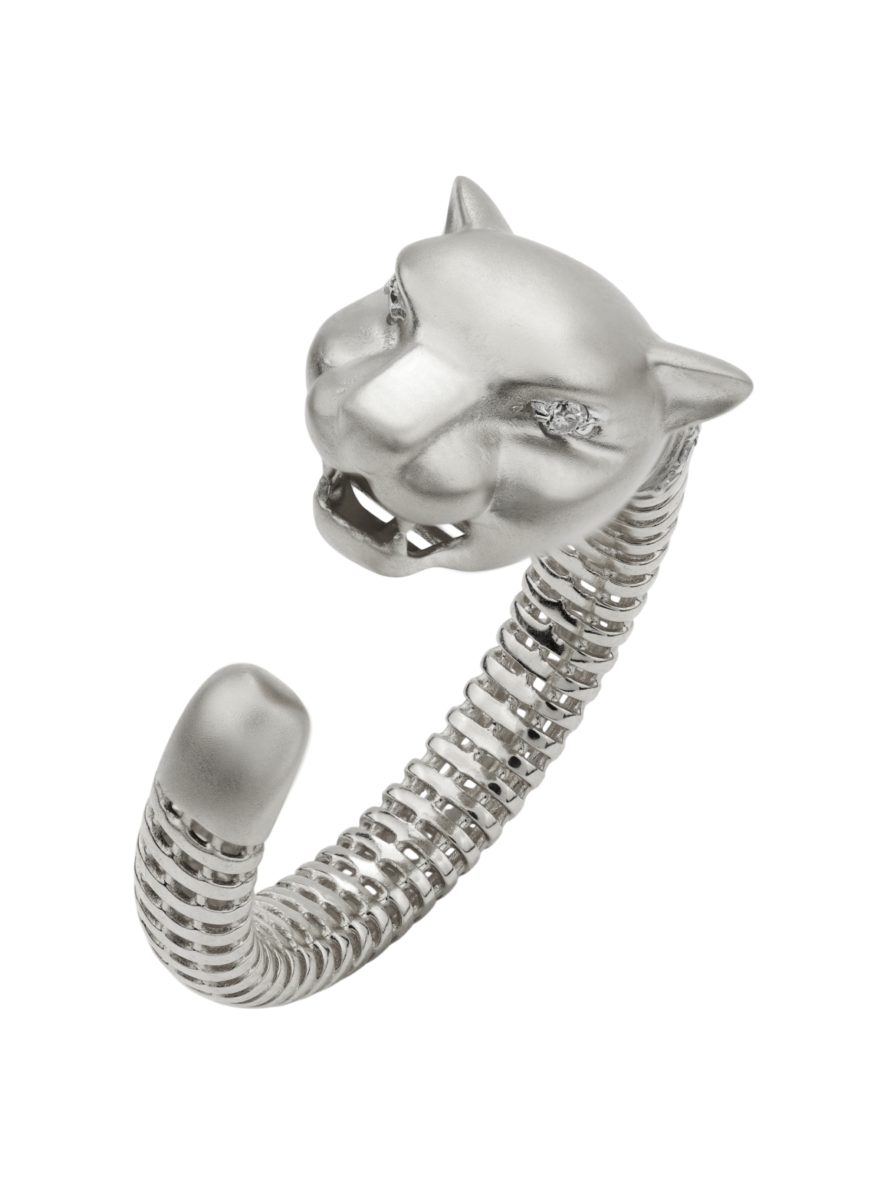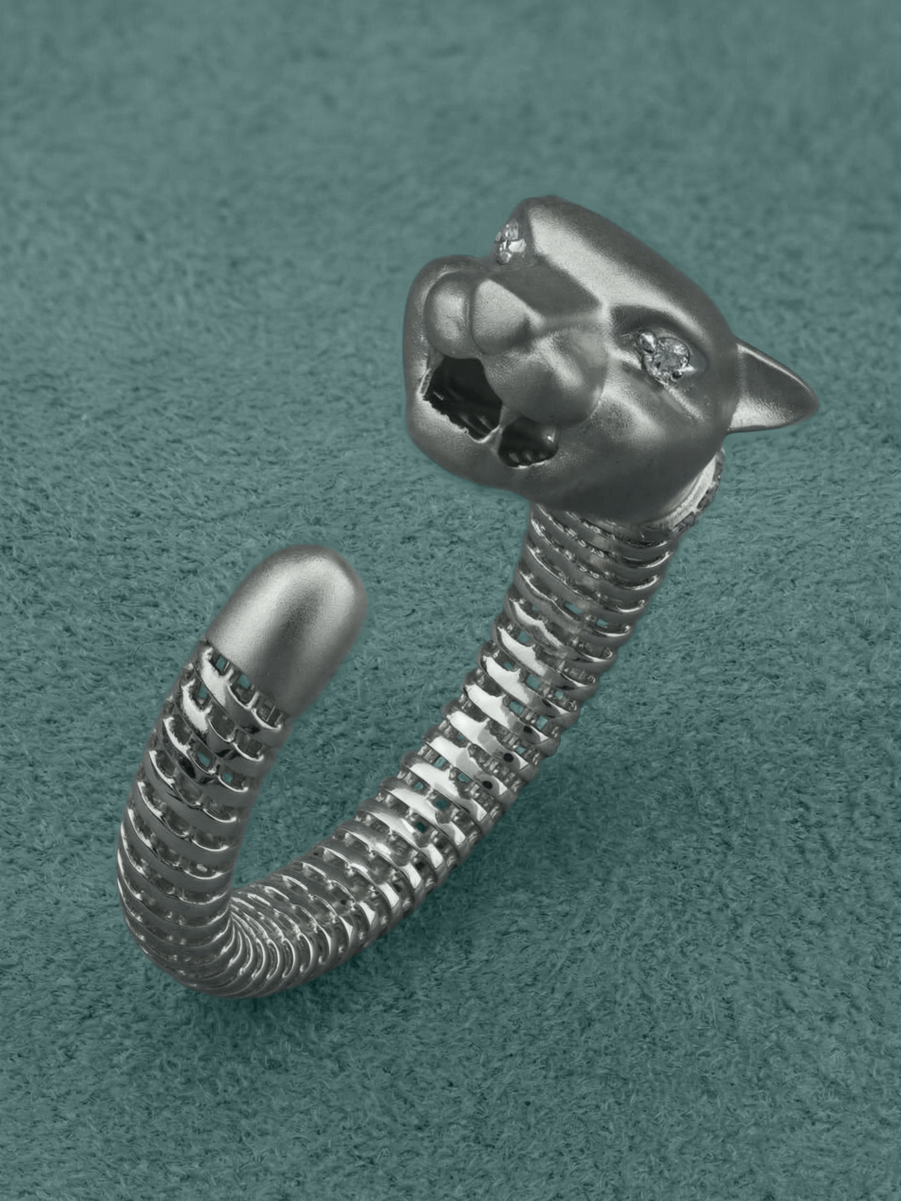 Украшение выполнено из белого золота 585 пробы, что обеспечивает долговечность и благородный блеск. Особую роскошь кольцу придают 14 вставок из бриллиантов круглой формы. Белый цвет камней гармонично сочетается с холодным оттенком металла, создавая цельную и завершенную композицию. Детализация в дизайне в виде леопарда делает изделие по-настоящему узнаваемым.