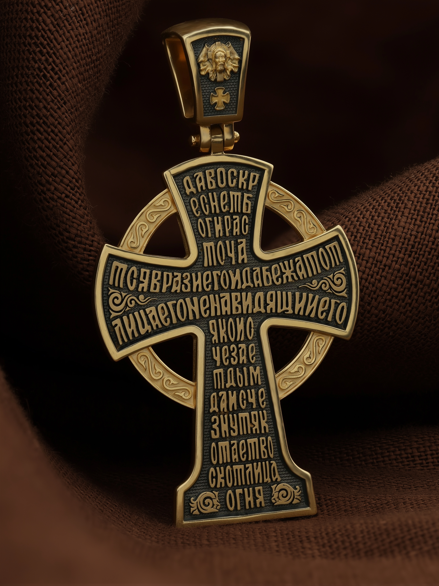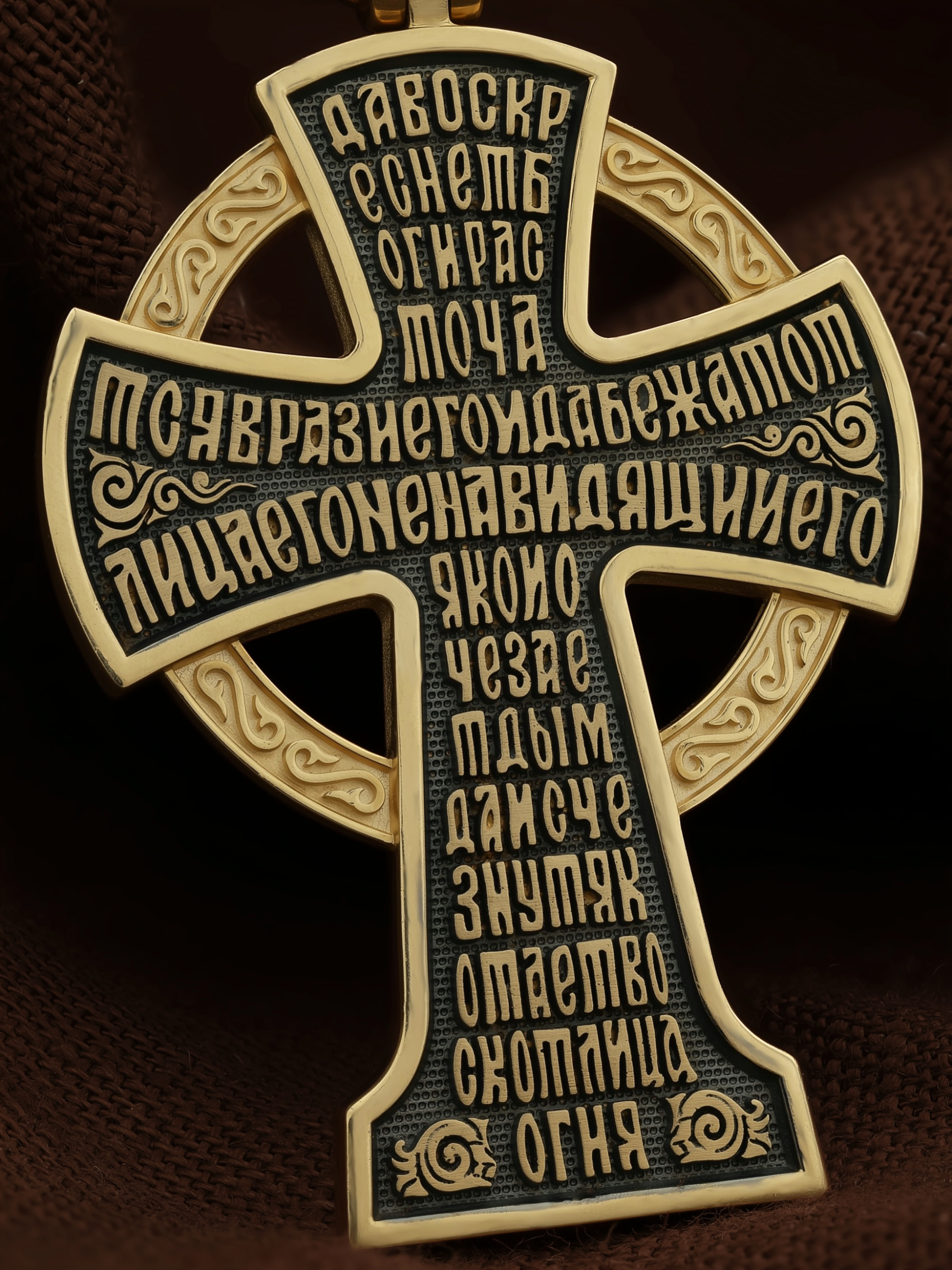 На обороте написан начальный стих оградительной молитвы Честному Кресту Господню: «Да воскреснет Бог, и расточатся врази Его, и да бежат от лица Его ненавидящии Его. Яко исчезает дым, да исчезнут; яко тает воск от лица огня, тако да погибнут беси от лица любящих Бога и знаменующихся крестным знамением, и в веселии глаголющих: радуйся, Пречестный и Животворящий Кресте Господень, прогоняй бесы силою на тебе пропятаго Господа нашего Иисуса Христа, во ад сшедшаго и поправшаго силу диаволю, и даровавшаго нам тебе Крест Свой Честный на прогнание всякаго супостата. О, Пречестный и Животворящий Кресте Господень! Помогай ми со Святою Госпожею Девою Богородицею и со всеми святыми во веки. Аминь».