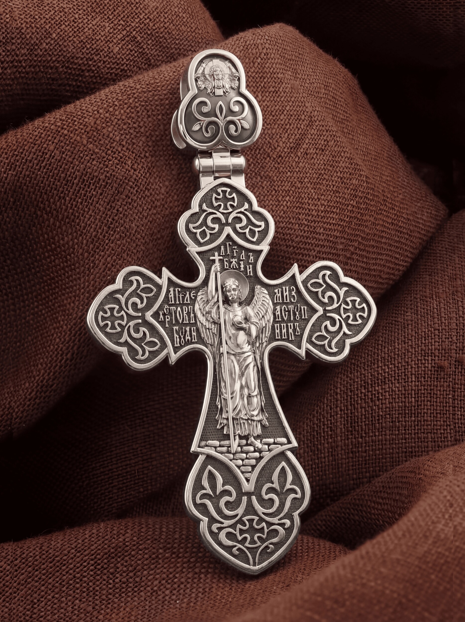 Основой композиции оборотной стороны является ростовое изображение Ангела Хранителя. Ангел, который дается каждому человеку в Крещении для попечения и защиты его души. Ангел Хранитель неотступно находится рядом с человеком, помогая, оберегая и наставляя его, а после смерти сопровождает его душу через мытарства. Рядом с изображением Ангела написана молитва: «Ангеле Христов, буди ми заступник».