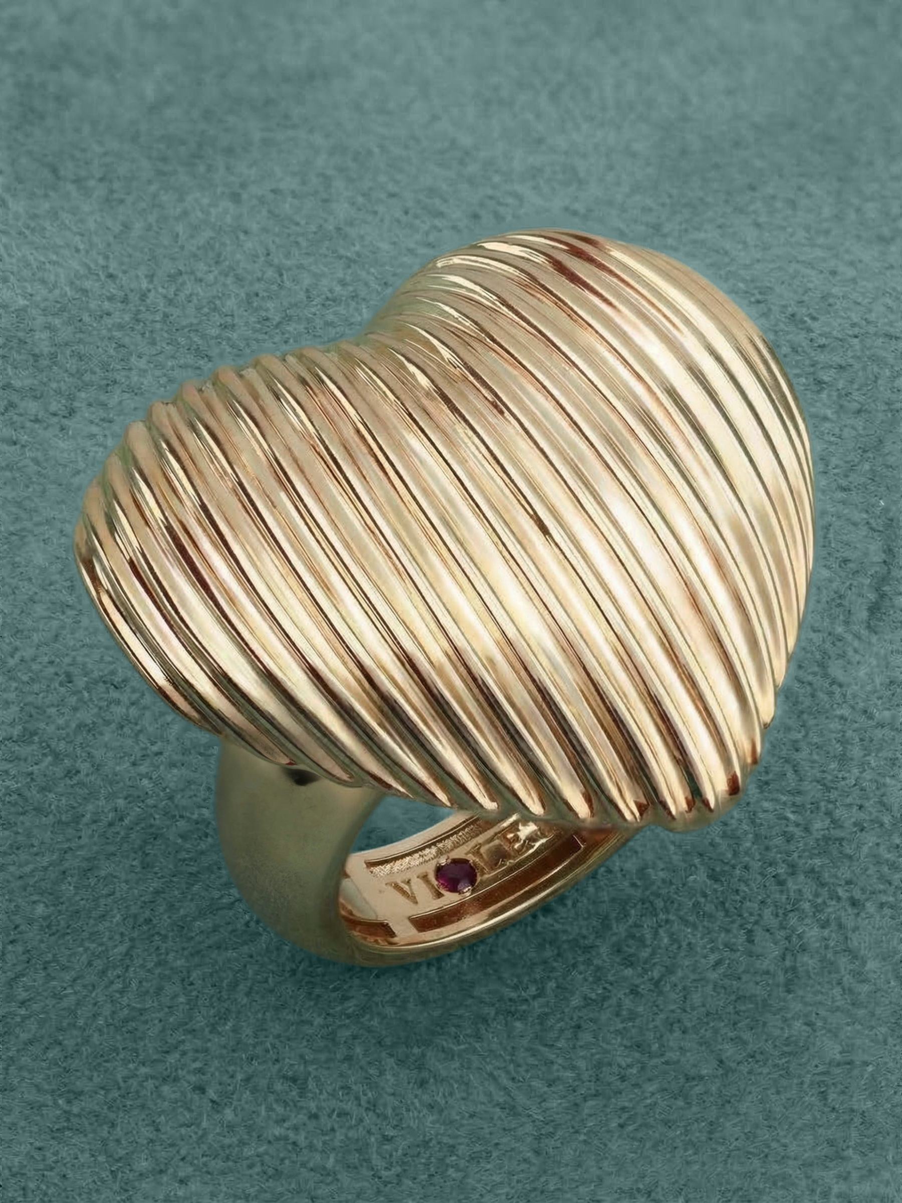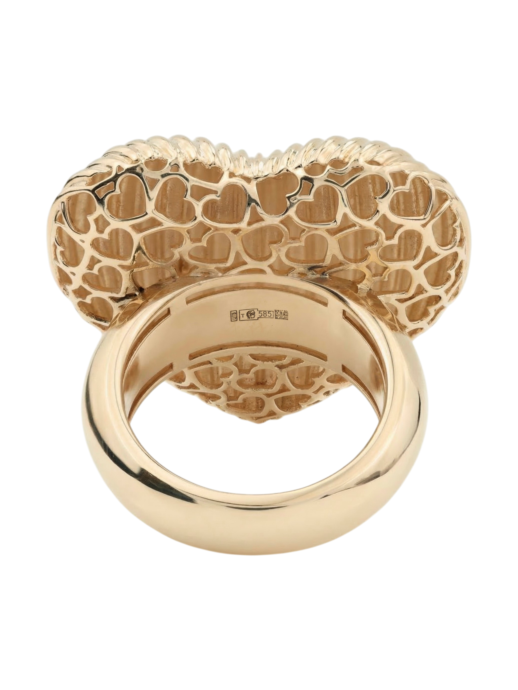 Кольцо из красного золота 585 пробы — это воплощение эстетики и высокого ювелирного искусства. Изделие из коллекции Vioretty — Amore Eterno привлекает внимание своим необычным дизайном в форме сердца, поверхность которого выполнена с изящным фактурным рифлением. Мягкий блеск красного металла подчеркивает благородство украшения и делает его выразительным акцентом любого образа.