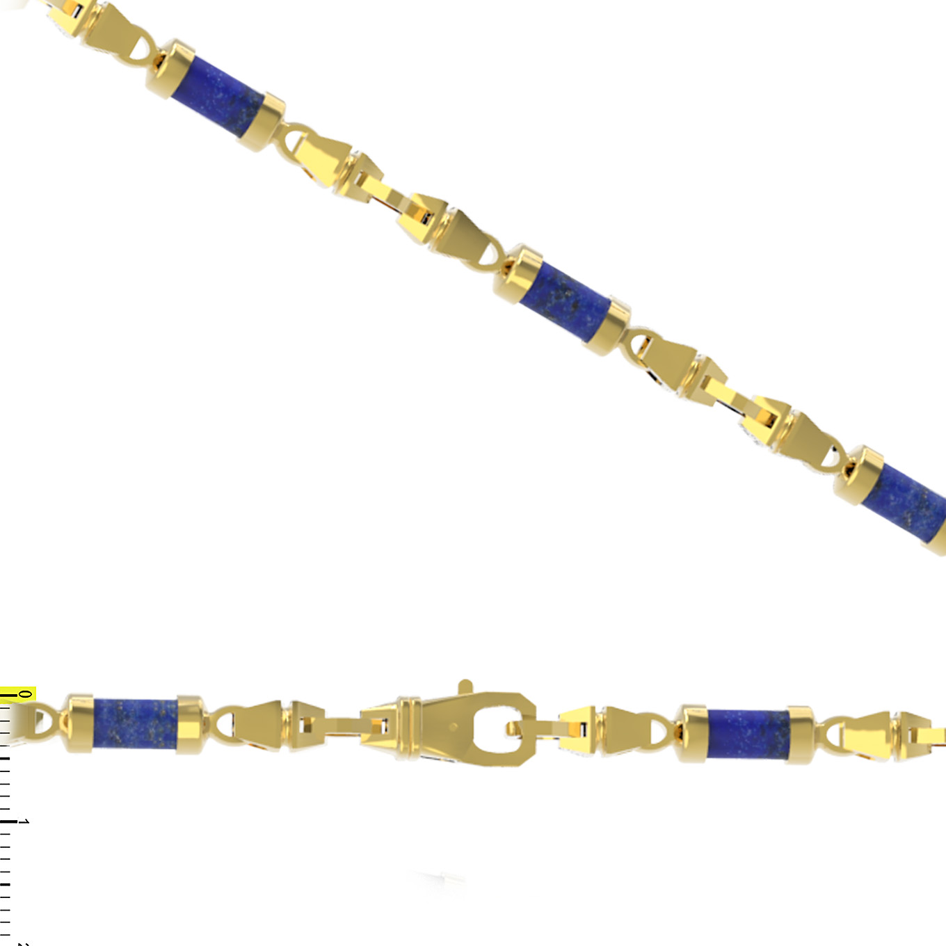 Особую эстетическую привлекательность украшению добавляют вставки из лазурита. Насыщенный синий цвет камней гармонично дополняет блеск металла, создавая эффектный контраст. Форма вставок в виде цилиндра придает изделию динамику и фактурность. Общее количество вставок составляет 68 штук, что делает аксессуар по-настоящему детальным и проработанным.