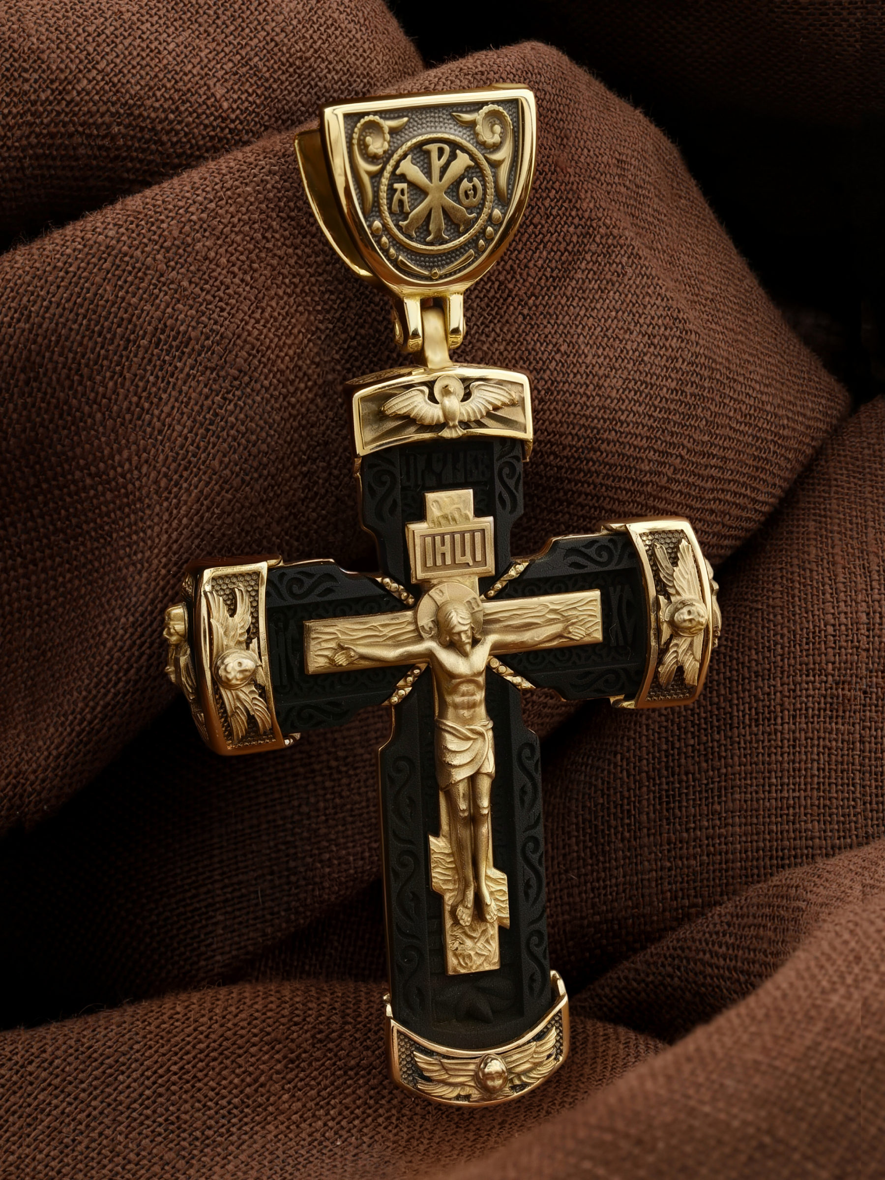Крест из лимонного золота c эбеновым деревом
