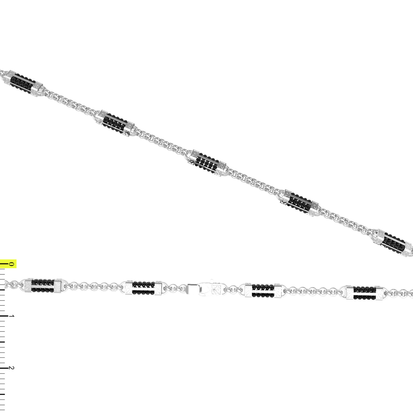 Основным элементом декора выступают вставки из черного оникса, выполненные в форме изящных бусин. Внушительное количество вставок — 720 штук — создает завораживающий визуальный эффект, превращая обычную цепь в настоящий шедевр ювелирного искусства. Контраст черного цвета вставок и светлого оттенка материала делает украшение универсальным дополнением как к строгому деловому костюму, так и к повседневному образу в стиле casual.